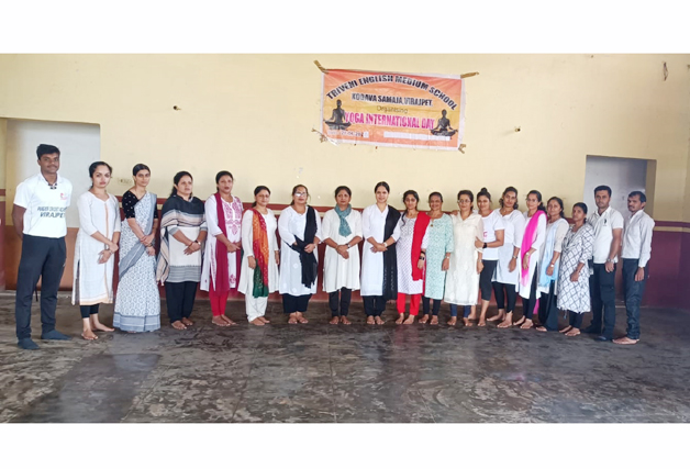 ಮಡಿಕೇರಿ ಜೂ.24 NEWS DESK : ವಿರಾಜಪೇಟೆಯ ತ್ರಿವೇಣಿ ಆಂಗ್ಲ ಮಾಧ್ಯಮ ಶಾಲೆಯಲ್ಲಿ ಅಂತರರಾಷ್ಟ್ರೀಯ 11ನೇ ಯೋಗ ದಿನವನ್ನು ಆಚರಿಸಲಾಯಿತು. ಸಂಸ್ಥೆಯ ಅಧ್ಯಕ್ಷರಾದ ಆಪಾಡಂಡ ಕಾರ್ಯಪ್ಪ ವಿದ್ಯಾರ್ಥಿಗಳಿಗೆ ಯೋಗದ ಮಹತ್ವವನ್ನು ತಿಳಿಸಿದರು. ಸಂಸ್ಥೆಯ ಕಾರ್ಯದರ್ಶಿ ಅರಸು ಅಚ್ಚಮ್ಮ ಮಾತನಾಡಿ, ಪ್ರತಿನಿತ್ಯ ಯೋಗ ಮಾಡುವುದರಿಂದ ಉತ್ತಮ ಆರೋಗ್ಯಕ್ಕೆ ಸಹಕಾರಿಯಾಗಲಿದೆ ಎಂದು ತಿಳಿಸಿದರು. ಫ್ರೌಢ ಶಾಲೆಯ ಮುಖ್ಯ ಶಿಕ್ಷಕರಾದ ಕಾವೇರಮ್ಮ ದಿನದ ಮಹತ್ವ, ಯೋಗ ಅಂತರಾಷ್ಟ್ರೀಯ ಮಹತ್ವ ಪಡೆದುಕೊಂಡ ಬಗ್ಗೆ ವಿವರಿಸಿದರು. ಶಿಕ್ಷಕರಾದ ಸವೆಂಟಿ ಅಗಸ್ಟಿನ್ ಸ್ವಾಗತಿಸಿದರು. ಜ್ಯೋತಿ ನಿರೂಪಿಸಿ, ವಂದಿಸಿದರು. ಯೋಗ ತರಬೇತುದಾರರಾದ ಬಿಂದು ಮಾರ್ಗದರ್ಶನದಲ್ಲಿ ಮುಖ್ಯಶಿಕ್ಷಕರುಗಳು, ಶಿಕ್ಷಕ ವೃಂದ ಹಾಗೂ ವಿದ್ಯಾರ್ಥಿಗಳು ಯೋಗಾಭ್ಯಾಸ ಮಾಡಲಾಯಿತು.