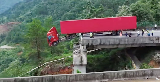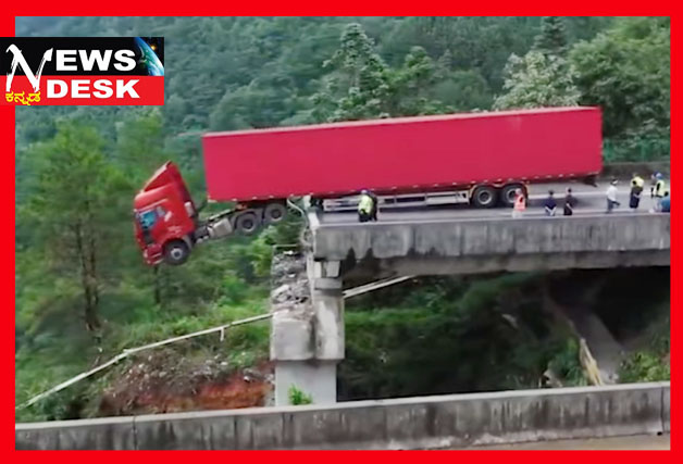 *ಎಡೆಬಿಡದೆ ಸುರಿಯುತ್ತಿರುವ ಮಳೆಯಿಂದ ಚೀನಾದ ನೈಋತ್ಯ ಗುಯಿಝೌ ಪ್ರಾಂತ್ಯದಲ್ಲಿ ಭೂಕುಸಿತ ಉಂಟಾಗಿದೆ. ಭೂಕುಸಿತದ ಪರಿಣಾಮ ಹೆದ್ದಾರಿ ಸೇತುವೆ ಕುಸಿದು ಸಂಪರ್ಕ ಕಡಿತಗೊಂಡಿದೆ. ಮುರಿದ ಸೇತುವೆಯಲ್ಲಿ ಸರಕು ಸಾಗಣೆ ಟ್ರಕ್ ನೇತಾಡುತ್ತಿರುವ ದೃಶ್ಯ ಇದೀಗ ಎಲ್ಲೆಡೆ ವೈರಲ್ ಆಗಿದೆ. ಈ ಘಟನೆ ಜುನಿ ನಗರದ ಕ್ಸಿಯಾಮೆನ್-ಚೆಂಗ್ಡು ಎಕ್ಸ್ಪ್ರೆಸ್ವೇಯ ಭಾಗವಾಗಿರುವ ಸೇತುವೆಯಲ್ಲಿ ನಡೆದಿದೆ.*