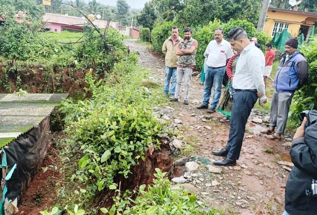 ಮಡಿಕೇರಿ ಜು.4 NEWS DESK : ಸೋಮವಾರಪೇಟೆ ತಾಲ್ಲೂಕು ಪಂಚಾಯಿತಿಯ ಕಾರ್ಯನಿರ್ವಹಣಾಧಿಕಾರಿ ಮಳೆಹಾನಿ ಪ್ರದೇಶಕ್ಕೆ ಭೇಟಿ ನೀಡಿ ಪರಿಶೀಲಿಸಿರು. ಹಾನಗಲ್ಲು ಗ್ರಾಮದ ಲೋಹಿತ್ ಮನೆ ಹಾನಿಗೊಂಡಿದ್ದು, ಜೋಸೆಫ್ ಮತ್ತು ರೂಪಾ ಅವರ ಮನೆ ಮುಂಭಾಗ ಬರೆ ಕುಸಿದಿರುವ ಸ್ಥಳಕ್ಕೆ ಪಂಚಾಯಿತಿ ಅಭಿವೃದ್ಧಿ ಅಧಿಕಾರಿಯೊಂದಿಗೆ ಭೇಟಿ ನೀಡಿ ಪರಿಶೀಲನೆ ನಡೆಸಿದರು. ನಂತರ ಶಿಥಿಲಗೊಂಡಿದ್ದ ಮನೆಗಳಿಗೆ ಟಾರ್ಪಲ್ ವಿತರಿಸಿ, ನೋಟಿಸ್ ನೀಡಿದರು. ಈ ಸಂದರ್ಭ ಹಾನಗಲ್ಲು ಗ್ರಾಮ ಪಂಚಾಯಿತಿಯ ಅಧ್ಯಕ್ಷ ಯಶಾಂತ್ ಕುಮಾರ್, ಉಪಾಧ್ಯಕ್ಷರಾದ ರೇಣುಕ, ಸದಸ್ಯ ಸುದೀಪ್, ಪಂಚಾಯಿತಿ ಅಭಿವೃದ್ಧಿ ಅಧಿಕಾರಿ ಮೇದಪ್ಪ ಸೇರಿದಂತೆ ಮತ್ತಿತರರು ಹಾಜರಿದ್ದರು.