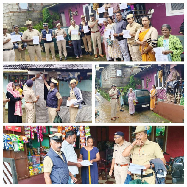 ಮಡಿಕೇರಿ ಜು.15 NEWS DESK : ನಾಪೋಕ್ಲು ಪೊಲೀಸ್ ಠಾಣೆಯ ವ್ಯಾಪ್ತಿಯಲ್ಲಿ ಮನೆ ಮನೆಗೆ ಪೊಲೀಸ್ ಕಾರ್ಯಕ್ರಮ ನಡೆಯಿತು. ನಾಪೋಕ್ಲು ಗ್ರಾಮ ಪಂಚಾಯಿತಿ ಅಧ್ಯಕ್ಷರಾದ ವನಜಾಕ್ಷಿ ಮತ್ತು ನಾಪೋಕ್ಲು ಠಾಣೆಯ ಪಿಎಸ್ಐ ರಾಘವೇಂದ್ರ ಮನೆ ಮನೆಗೆ ಭೇಟಿ ನೀಡಿ ಕಾರ್ಯಕ್ರಮದ ಉದ್ದೇಶ ಮತ್ತು ಸೈಬರ್ ಅಪರಾಧ, ಮಾದಕ ವಸ್ತು, ಬಾಲಾಪರಾಧ, ಪೋಕ್ಸೋ ಕಾಯಿದೆ, ಮನೆ ಕಳ್ಳತನ, ಸರ ಕಳ್ಳತನ, ರಸ್ತೆ ಸಂಚಾರ ನಿಯಮ ಮುಂತಾದ ವಿಷಯಗಳ ಬಗ್ಗೆ ಅರಿವು ಮೂಡಿಸಿದರು. ಈ ಸಂದರ್ಭ ಠಾಣೆಯ ಅಧಿಕಾರಿ, ಸಿಬ್ಬಂದಿಗಳು ಭಾಗವಹಿಸಿದ್ದರು.