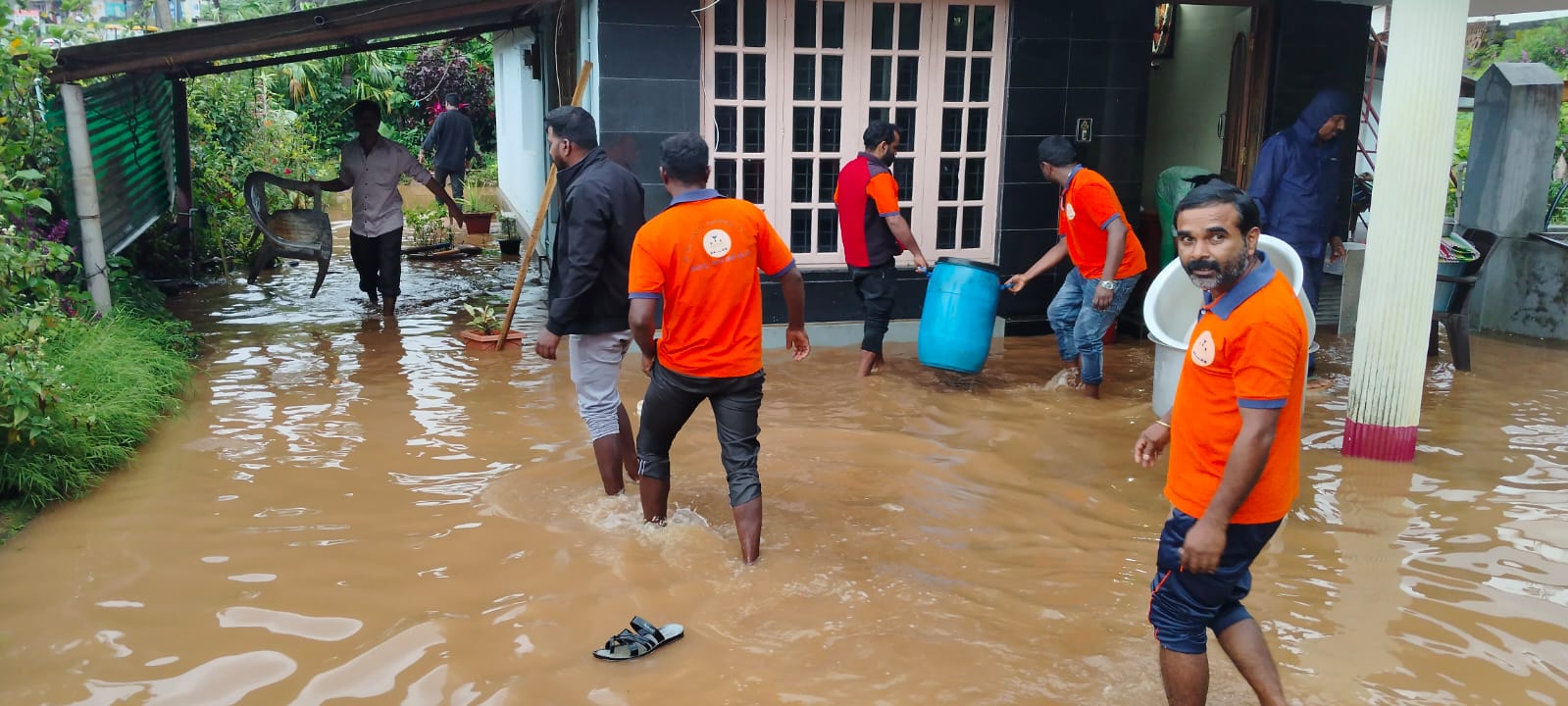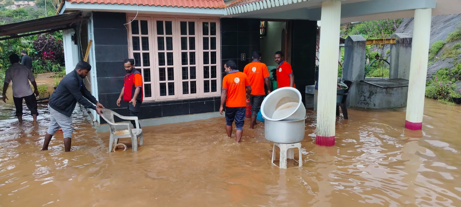 ಸೋಮವಾರಪೇಟೆ NEWS DESK ಆ.5 : ಇಂದು ಸಂಜೆ ಸುರಿದ ದಿಢೀರ್ ಮಳೆಗೆ ಸೋಮವಾರಪೇಟೆಯ ಅಲೆಕಟ್ಟೆ ರಸ್ತೆ ವ್ಯಾಪ್ತಿಯ ಮನೆಗಳು ಜಲಾವೃತಗೊಂಡು ನಷ್ಟ ಸಂಭವಿಸಿದೆ. ಧರ್ಮಸ್ಥಳ ಗ್ರಾಮಾಭಿವೃದ್ಧಿ ಯೋಜನೆಯ ಶೌರ್ಯ ತಂಡ ಮನೆಯವರ ನೆರವಿಗೆ ಧಾವಿಸಿ ನೀರು ತೆರವುಗೊಳಿಸಿತು. ಪಟ್ಟಣದ ಅಲೆಕಟ್ಟೆ ರಸ್ತೆಯ ಕೊಲ್ಲಿ ಮೂಲಕ ನೀರು ನುಗ್ಗಿ ನಿಂಗರಾಜು ಎಂಬುವವರ ಮನೆ ಜಲಾವೃತಗೊಂಡು ಹಲವು ವಸ್ತುಗಳು ಹಾನಿಗೊಂಡವು. ವಿಷಯ ಅರಿತ ಧರ್ಮಸ್ಥಳ ಗ್ರಾಮಾಭಿವೃದ್ಧಿ ಯೋಜನೆಯ ಶೌರ್ಯ ತಂಡದ 10ಕ್ಕೂ ಹೆಚ್ಚು ಮಂದಿಯ ತಂಡ ಸ್ಥಳಕ್ಕಾಗಮಿಸಿ ನೀರು ಹೊರ ಹಾಕಿ ಮನೆ ಶುಚಿಗೊಳಿಸಲು ಶ್ರಮಿಸಿತು. ಕಂದಾಯ ಇಲಾಖೆ ಅಧಿಕಾರಿಗಳು ಸ್ಥಳಕ್ಕೆ ಭೇಟಿ ನೀಡಿ ಪರಿಶೀಲಿಸಿದರು.