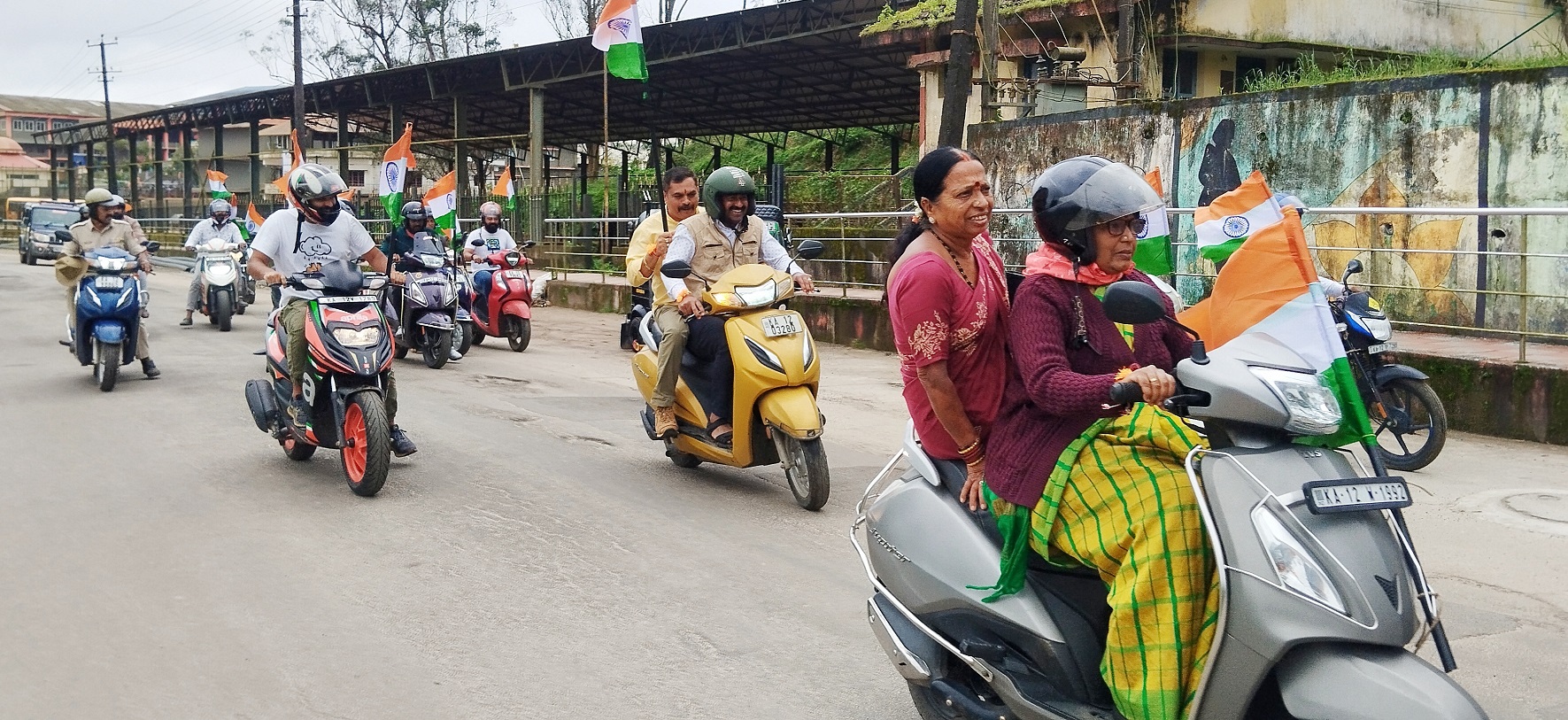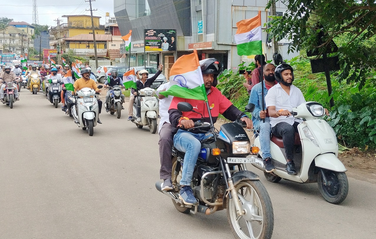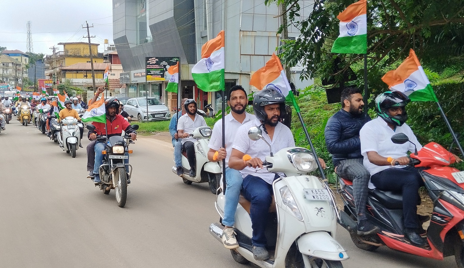 ಮಡಿಕೇರಿ NEWS DESK ಆ.11 : ಸ್ವಾತಂತ್ರ್ಯೋತ್ಸವದ ಪ್ರಯುಕ್ತ ದೇಶಭಕ್ತಿ ಮತ್ತು ದೇಶಾಭಿಮಾನದ ಕುರಿತು ಯುವಸಮೂಹ ಹಾಗೂ ಸಾರ್ವಜನಿಕರಲ್ಲಿ ಜಾಗೃತಿಯನ್ನು ಮೂಡಿಸಲು ಭಾರತೀಯ ಜನತಾ ಪಾರ್ಟಿಯ ಯುವ ಮೋರ್ಚಾ ಮಡಿಕೇರಿಯಲ್ಲಿ ಬೈಕ್ ಜಾಥಾ ನಡೆಸಿತು. ತ್ರಿವರ್ಣಧ್ವಜ ಹಿಡಿದ ಪಕ್ಷದ ಪ್ರಮುಖರು ಹಾಗೂ ಕಾರ್ಯಕರ್ತರು ನಗರದ ಮುಖ್ಯ ರಸ್ತೆಗಳಲ್ಲಿ ಸಾಗಿ ಗಮನ ಸೆಳೆದರು.