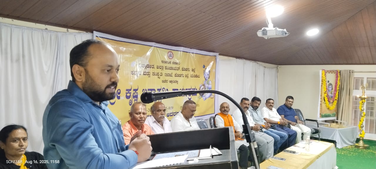 ಮಡಿಕೇರಿ ಆ.16 NEWS DESK : ಪ್ರತಿಯೊಬ್ಬರೂ ಭಗವದ್ಗೀತೆಯನ್ನು ಅಧ್ಯಯನ ಮಾಡಿದ್ದಲ್ಲಿ ಶ್ರೀಕೃಷ್ಣನ ಮಹತ್ವ ಬಗ್ಗೆ ಅರಿವಾಗುತ್ತದೆ. ಆ ದಿಸೆಯಲ್ಲಿ ಶ್ರೀಕೃಷ್ಣನ ಸಂದೇಶಗಳು ಇಂದಿಗೂ ಪ್ರಸ್ತುತವಾಗಿವೆ ಎಂದು ಚಿಂತಕರಾದ ಚಿ.ನಾ.ಸೋಮೇಶ್ ಅವರು ಹೇಳಿದ್ದಾರೆ. ಜಿಲ್ಲಾಡಳಿತ, ಜಿಲ್ಲಾ ಪಂಚಾಯತ್, ಕನ್ನಡ ಮತ್ತು ಸಂಸ್ಕೃತಿ ಇಲಾಖೆ ವತಿಯಿಂದ ನಗರದ ಗಾಂಧಿ ಭವನದಲ್ಲಿ ಶನಿವಾರ ನಡೆದ ‘ಶ್ರೀಕೃಷ್ಣ ಜನ್ಮಾಷ್ಠಮಿ’ ಕಾರ್ಯಕ್ರಮದಲ್ಲಿ ಶ್ರೀಕೃಷ್ಣ ಭಾವಚಿತ್ರಕ್ಕೆ ಪುಷ್ಪಾರ್ಚನೆ ನೆರವೇರಿಸಿ ಅವರು ಮಾತನಾಡಿದರು. ಶ್ರೀಕೃಷ್ಣ ಒಂದು ರೀತಿ ವಿಶಿಷ್ಟ ಚೇತನರಾಗಿದ್ದು, ವಿಶ್ವದ ಬೆಳಕು ಎಂದರೆ ಅತಿಶಯೋಕ್ತಿಯಲ್ಲ. ಶ್ರೀಕೃಷ್ಣನ ಬಗ್ಗೆ ಪ್ರತಿಯೊಬ್ಬರಲ್ಲಿಯೂ ಹೆಚ್ಚಿನ ಗೌರವ ಮತ್ತು ಭಕ್ತಿ ಇದೆ. ಶ್ರೀಕೃಷ್ಷನ ವೇಷದಲ್ಲಿ ಮಕ್ಕಳನ್ನು ಕಾಣುತ್ತೇವೆ. ಜೊತೆಗೆ ಶ್ರೀಕೃಷ್ಣನನ್ನು ಮಹಾಭಾರತದಲ್ಲಿ ಸಾರಥಿಯಾಗಿ ನೋಡುತ್ತೇವೆ ಎಂದರು. ಮಹಾಭಾರತದಲ್ಲಿ ಶ್ರೀಕೃಷ್ಣನ ಬಗ್ಗೆ ಒಳ್ಳೆಯ ಸಂದೇಶ ತಿಳಿಯುತ್ತೇವೆ. ಯಾವುದೇ ಫಲಾಪೇಕ್ಷೆ ಇಲ್ಲದೆ ನೀಡಿದ ಕೆಲಸವನ್ನು ಶ್ರದ್ಧೆಯಿಂದ ನಿರ್ವಹಿಸಿ ಬದುಕನ್ನು ಉತ್ತಮ ಪಡಿಸಿಕೊಳ್ಳಬೇಕು ಎಂಬ ಸಂದೇಶವನ್ನು ಶ್ರೀಕೃಷ್ಣ ಸಾರಿದ್ದಾರೆ ಎಂದು ಸೋಮೇಶ್ ಅವರು ನುಡಿದರು. ಜೀವನವು ನಿಂತ ನೀರಾಗದೆ ಹರಿವ ನೀರಿನಂತೆ ಬದುಕನ್ನು ಮುನ್ನಡೆಸಬೇಕು. ಉತ್ತಮ ಬದುಕು ರೂಪಿಸಿಕೊಳ್ಳಲು ಮುಂದಾಗಬೇಕು. ಆ ನಿಟ್ಟಿನಲ್ಲಿ ಮಹಾಭಾರತದಲ್ಲಿ ಶ್ರೀಕೃಷ್ಣನ ಸಂದೇಶಗಳು ಒಳ್ಳೆಯ ಚಿಂತನೆ ಒಳಗೊಂಡಿದೆ ಎಂದು ಚಿ.ನಾ.ಸೋಮೇಶ್ ಅವರು ಪ್ರತಿಪಾದಿಸಿದರು. ಭರತ ಖಂಡದಲ್ಲಿ ಇಡೀ ವೇದಾಂತವನ್ನು ಸುಲಲಿತವಾಗಿ ತಲುಪಿಸಿದವರು ಶ್ರೀಕೃಷ್ಣ ಎಂದರೆ ತಪ್ಪಾಗಲಾರದು. ತತ್ವಶಾಸ್ತ್ರ ಸೇರಿದಂತೆ ಹಲವು ಜ್ಞಾನವನ್ನು ಹೊಂದಿದ್ದ ಶ್ರೀಕೃಷ್ಣರು ಇಡೀ ಭರತ ಖಂಡದಲ್ಲಿ ತಮ್ಮದೇ ಆದ ಇತಿಹಾಸ ಹೊಂದಿದ್ದಾರೆ ಎಂದು ವಿವರಿಸಿದರು. ಗೋಕುಲದಲ್ಲಿ ಆಟವಾಡಿಕೊಂಡು ಬೆಳೆದ ಶ್ರೀಕೃಷ್ಣ ಅವರ ಸಂದೇಶಗಳನ್ನು ತಿಳಿದುಕೊಳ್ಳಬೇಕು. ಶ್ರೀಕೃಷ್ಣನಿಂದ ತಾಳ್ಮೆ ಕಲಿಯುವಂತಾಗಬೇಕು ಎಂದರು. ತಹಶೀಲ್ದಾರರಾದ ಶ್ರೀಧರ ಅವರು ಮಾತನಾಡಿ ಶ್ರೀಕೃಷ್ಣನ ಆದರ್ಶ ಗುಣಗಳು ಸಾರ್ವಕಾಲೀಕವಾಗಿದ್ದು, ಶ್ರೀಕೃಷ್ಣರ ಮನಸ್ಸು ಮತ್ತು ಚಿಂತನೆಗಳು ಪ್ರೇರಣೆಯಾಗಿದೆ ಎಂದರು. ಮನಸ್ಸು ನೆಮ್ಮದಿಯಾಗಿದ್ದಾಗ ನಕಾರಾತ್ಮಕ ಯೋಚನೆಗೆ ಜಾಗ ಇರುವುದಿಲ್ಲ, ಆ ನಿಟ್ಟಿನಲ್ಲಿ ಶ್ರೀಕೃಷ್ಣರ ಬದುಕು ಒಂದು ರೀತಿ ಮಾದರಿ ಎಂದು ಅವರು ನುಡಿದರು. ಕಂಚಿಕಾಮಾಕ್ಷಿ ದೇವಾಲಯ ಸಮಿತಿಯ ಗೌರವ ಅಧ್ಯಕ್ಷರಾದ ಜಿ.ವಿ.ರವಿಕುಮಾರ್ ಅವರು ಮಾತನಾಡಿ ಶ್ರೀಕೃಷ್ಣನ ವಿಚಾರಧಾರೆಗಳು ಇಂದಿಗೂ ಪ್ರಸ್ತುತವಾಗಿವೆ. ಶ್ರೀಕೃಷ್ಣರು ಭಕ್ತಿಯ ಶಕ್ತಿಯಾಗಿ ಬರುತ್ತಾರೆ ಎಂದು ತಿಳಿಸಿದರು. ಜೀವನದಲ್ಲಿ ಮಾನವೀಯ ಮೌಲ್ಯ ಮತ್ತು ಆಧ್ಯಾತ್ಮಿಕತೆಯನ್ನು ಅಳವಡಿಸಿಕೊಳ್ಳಬೇಕು. ಸಮಾಜದಲ್ಲಿ ದ್ವೇಷ, ಅಸೂಯೆ, ಅಸಹನೆ, ಅಸಹಿಷ್ಣುತೆ ಇರಬಾರದು. ಒಳ್ಳೆಯದನ್ನು ರೂಡಿಸಿಕೊಳ್ಳಬೇಕು ಎಂದರು. ಪ್ರಿಯಾ ರವಿಕುಮಾರ್ ಅವರು ಮಾತನಾಡಿ ರಾಷ್ಟ್ರಾದ್ಯಂತ ಶ್ರೀಕೃಷ್ಣ ಜನ್ಮಾಷ್ಠಮಿಯನ್ನು ವಿಶಿಷ್ಟ ಹಾಗೂ ವಿಶೇಷವಾಗಿ ಭಕ್ತಿಯಿಂದ ಆಚರಿಸಲಾಗುತ್ತಿದೆ ಎಂದು ತಿಳಿಸಿದರು. ಕಂಚಿ ಕಾಮಾಕ್ಷಮ್ಮ ದೇವಾಲಯ ಸಮಿತಿಯ ಉಪಾಧ್ಯಕ್ಷರಾದ ಜಗದೀಶ್ ಅವರು ಮಾನಾಡಿ ದೇಶ ವಿದೇಶಗಳಲ್ಲಿ ಶ್ರೀಕೃಷ್ಣನ ಅಧ್ಯಯನ ಮಾ