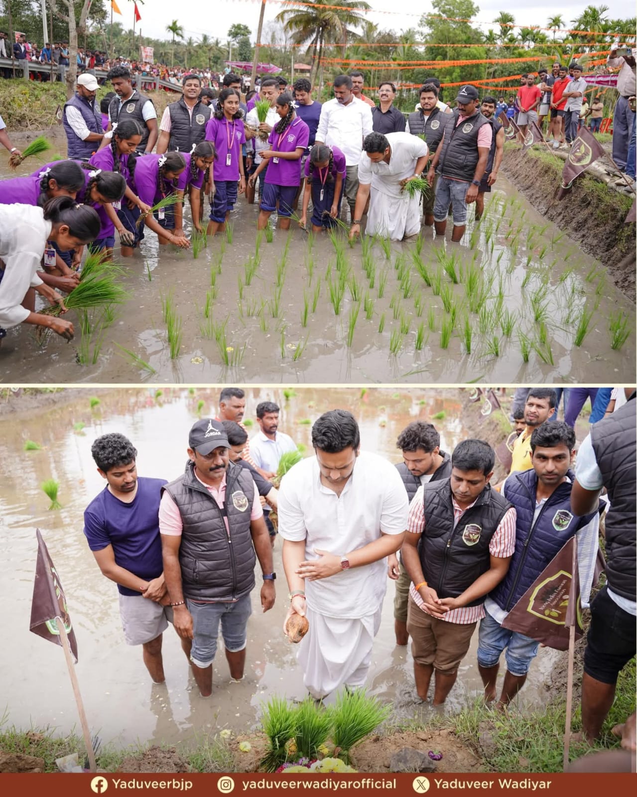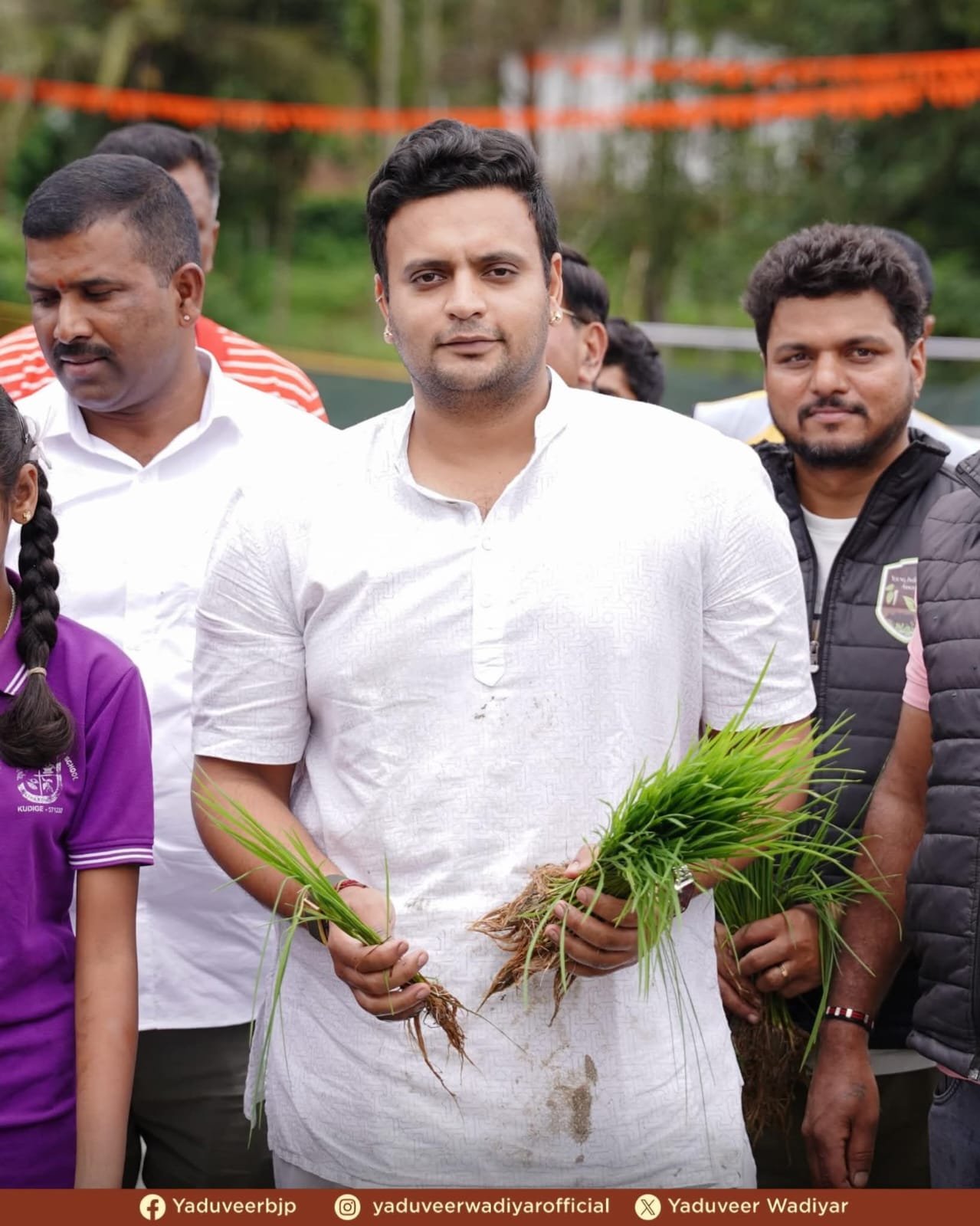 ಮಡಿಕೇರಿ NEWS DESK ಆ.23 : ಸೋಮವಾರಪೇಟೆ ತಾಲ್ಲೂಕಿನ ಹುದಗೂರು ಗ್ರಾಮದಲ್ಲಿ ನಡೆದ ನಾಟಿ ಹಬ್ಬ ಕಾರ್ಯಕ್ರಮದಲ್ಲಿ ಪಾಲ್ಗೊಂಡ ಮೈಸೂರು- ಕೊಡಗು ಕ್ಷೇತ್ರದ ಸಂಸದ ಯದುವೀರ್ ಅವರು ನಾಟಿ ಕಾರ್ಯ ಮಾಡಿ ಗಮನ ಸೆಳೆದರು. ಐಮುಡಿಮಂಡ ಗಣೇಶ್ ಅವರ ಗದ್ದೆಯಲ್ಲಿ ಯಂಗ್ ಇಂಡಿಯನ್ ಫಾರ್ಮರ್ಸ್ ಅಸೋಸಿಯೆಷನ್ ಸೋಮವಾರಪೇಟೆ ಇವರ ವತಿಯಿಂದ ಆಯೋಜಿಸಿದ್ದ 7ನೇ ವರ್ಷದ ನಾಟಿ ಹಬ್ಬ ಮತ್ತು ಜಿಲ್ಲಾ ಮಟ್ಟದ ಕೆಸರು ಗದ್ದೆ ಕ್ರೀಡಾಕೂಟ ಕಾರ್ಯಕ್ರಮದಲ್ಲಿ ಮುಖ್ಯ ಅತಿಥಿಗಳಾಗಿ ಅವರು ಪಾಲ್ಗೊಂಡಿದ್ದರು.