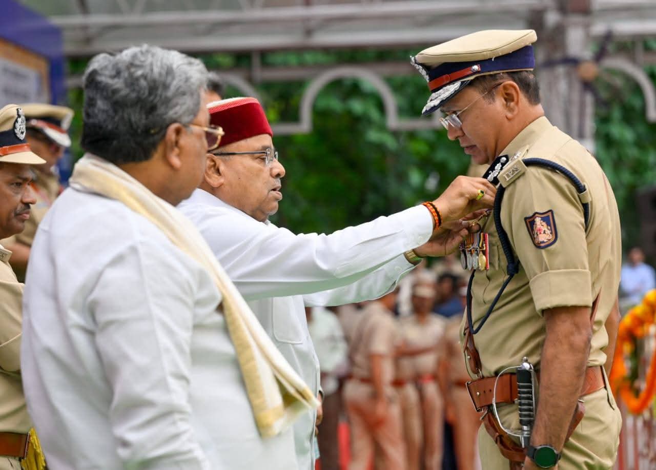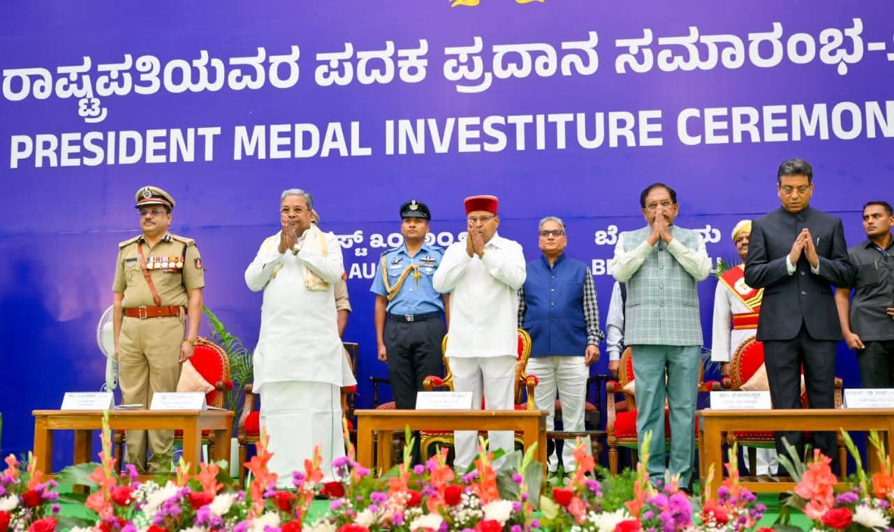 ಬೆಂಗಳೂರು ಆ.30 NEWS DESK :ರಾಜ್ಯ ಗೃಹ ಇಲಾಖೆಯಲ್ಲಿ ವಿಶಿಷ್ಟ ಹಾಗೂ ಅಗ್ರಗಣ್ಯ ಸೇವೆ ಸಲ್ಲಿಸಿದ ಪೊಲೀಸ್ ಅಧಿಕಾರಿಗಳಿಗೆ ರಾಜ್ಯಪಾಲರಾದ ಥಾವರ್ ಚಂದ್ ಗೆಹ್ಲೋಟ್ ಹಾಗೂ ಮುಖ್ಯಮಂತ್ರಿ ಸಿದ್ದರಾಮಯ್ಯ ಅವರು “ರಾಷ್ಟ್ರಪತಿಗಳ ಪೊಲೀಸ್ ಪದಕ ಪ್ರದಾನ ಮಾಡಿ ಅಭಿನಂದಿಸಿದರು. ರಾಜಭವನದಲ್ಲಿ ನಡೆದ ಕಾರ್ಯಕ್ರಮದಲ್ಲಿ ಗೃಹ ಸಚಿವರಾದ ಡಾ.ಜಿ.ಪರಮೇಶ್ವರ ಅವರು ಉಪಸ್ಥಿತರಿದ್ದರು.
