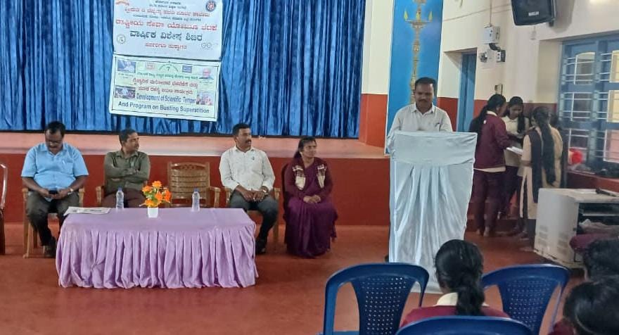 ಸೋಮವಾರಪೇಟೆ, ಸೆ.25 NEWS DESK : ಸಮಾಜದಲ್ಲಿ ಮೌಢ್ಯಾಚರಣೆ ಹೆಸರಿನಲ್ಲಿ ಕೆಲವು ದೇವಮಾನವ ರೆಂಬ ಸೋಗಿನಲ್ಲಿ ಜನರಿಗೆ ಮೋಸ, ವಂಚನೆ ಮಾಡುತ್ತಿರುವುದು ಕಂಡುಬರುತ್ತಿದೆ. ಕೆಲವು ಮುಗ್ಧರು ಇದನ್ನು ನಂಬಿ ಶೋಷಣೆಗೆ ಒಳಗಾಗು ತ್ತಿದ್ದಾರೆ. ಇಂತಹ ಶೋಷಣೆಯನ್ನು ತಡೆಗಟ್ಟುವ ದಿಸೆಯಲ್ಲಿ ಜನರಲ್ಲಿ ಜಾಗೃತಿ ಮೂಡಿಸಲು ಶಿಕ್ಷಣ ಸಂಸ್ಥೆಗಳು ಮತ್ತು ಪ್ರಗತಿಪರ ಸಂಘಟನೆಗಳು ಮುಂದಾಗಬೇಕಿದೆ ಎಂದು ಕರ್ನಾಟಕ ರಾಜ್ಯ ವಿಜ್ಞಾನ ಪರಿಷತ್ತಿನ ಜಿಲ್ಲಾ ಸಮಿತಿ ಸದಸ್ಯ ಹಾಗೂ ಹೆಬ್ಬಾಲೆ ಸಂಯುಕ್ತ ಪದವಿ ಪೂರ್ವ ಕಾಲೇಜಿನ ಕನ್ನಡ ಭಾಷಾ ಅಧ್ಯಾಪಕ ಎಂ.ಎನ್.ವೆಂಕಟನಾಯಕ್ ಹೇಳಿದರು. ಪದವಿ ಪೂರ್ವ ಶಿಕ್ಷಣ ಇಲಾಖೆಯ ಸಹಯೋಗದೊಂದಿಗೆ ಮಾದಾಪುರ ಶ್ರೀಮತಿ ಡಿ.ಚನ್ನಮ್ಮ ಪದವಿ ಪೂರ್ವ ಕಾಲೇಜಿನ ರಾಷ್ಟ್ರೀಯ ಸೇವಾ ಯೋಜನಾ ( ಎನ್ಎಸ್ಎಸ್ ) ಘಟಕದ ವತಿಯಿಂದ “ನಶಮುಕ್ತ ಭಾರತ ಅಭಿಯಾನ:2025” ಎಂಬ ಕೇಂದ್ರ ವಿಷಯದಡಿ ಗರಗಂದೂರು ಗ್ರಾಮದಲ್ಲಿ ಎನ್ಎಸ್ಎಸ್ ವಾರ್ಷಿಕ ವಿಶೇಷ ಶಿಬಿರದಲ್ಲಿ ಕರ್ನಾಟಕ ರಾಜ್ಯ ವಿಜ್ಞಾನ ಪರಿಷತ್ತು ಕೊಡಗು ಜಿಲ್ಲಾ ಸಮಿತಿಯ ಆಶ್ರಯದಲ್ಲಿ ಏರ್ಪಡಿಸಿದ್ದ