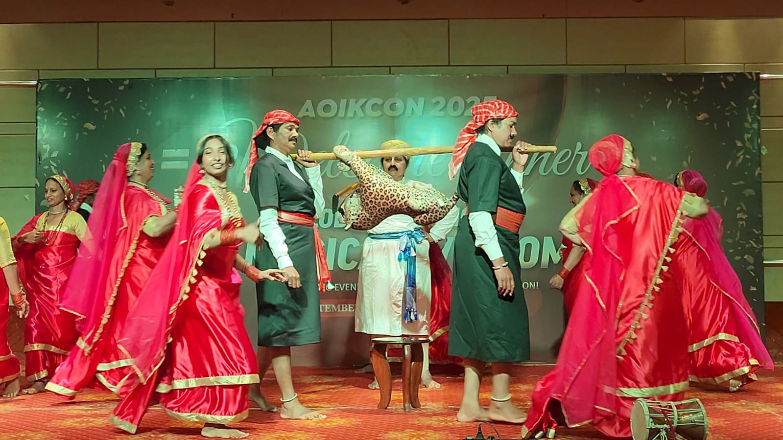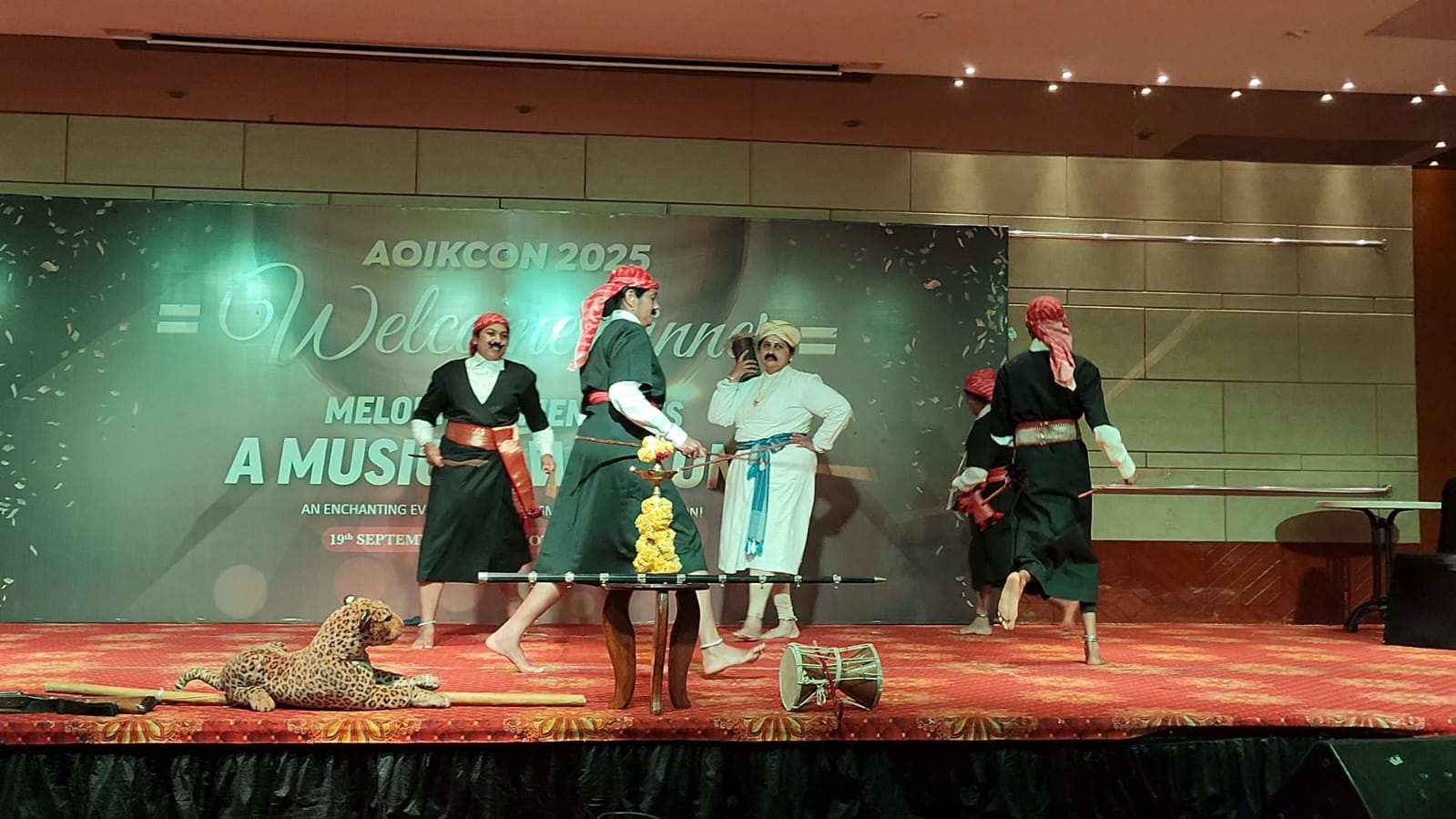 ಮಡಿಕೇರಿ NEWS DESK ಸೆ.25 : ಮಂಡ್ಯದಲ್ಲಿ 3 ದಿನಗಳ ಕಾಲ ನಡೆದ 42ನೇ ಓಟೋರಿನೋಲಾರಿಂಗೋಲಜಿಸ್ಟ್ ಆಫ್ ಇಂಡಿಯಾ ರಾಜ್ಯ ಸಮ್ಮೇಳನದಲ್ಲಿ ಕೊಡಗಿನ ಸಂಸ್ಕೃತಿ ಸಿರಿ ಟ್ರಸ್ಟ್ ನಿಂದ ನಡೆದ ಕೊಡವ ಸಂಸ್ಕೃತಿಯ ನೃತ್ಯ ಆಕರ್ಷಿಸಿತು. ಮಂಡ್ಯದ ಅಮರಾವತಿ ಹೋಟೆಲ್ ಸಭಾಂಗಣದಲ್ಲಿ ನಡೆದ ಸಾಂಸ್ಕೃತಿಕ ಕಾರ್ಯಕ್ರಮದಲ್ಲಿ ನರಿ ಮಂಗಲ, ಉಮ್ಮತ್ತಾಟ್, ಗೆಜ್ಜೆ ತಂಡ್, ಪುತ್ತರಿ, ಉರ್ ಟಿ ಕೊಟ್ಟ್ ಆಟ್ ಹಾಗೂ ಕೊಡವ ವಾಲಗ ಕಾರ್ಯಕ್ರಮ ಅಗತ್ಯ ಮಾಹಿತಿಯೊಂದಿಗೆ ನಡೆಯಿತು. ಕೊಡವ ಸಾಂಪ್ರದಾಯಿಕ ಸೀರೆ, ಬಿಳಿ ಮತ್ತು ಕಪ್ಪು ಕುಪ್ಯಾಧಾರಿಗಳು ಉತ್ತಮ ನೃತ್ಯ ಪ್ರದರ್ಶನ ನೀಡಿ ರಾಜ್ಯದ ವಿವಿಧೆಡೆಯಿಂದ ಆಗಮಿಸಿದ್ದ ವೈದ್ಯರುಗಳ ಪ್ರಸಂಸೆಗೆ ಪಾತ್ರರಾದರು. ಕೊಡಗಿನ ನಟಿ, ನಿರ್ಮಾಪಕಿ, ಕವಿಯತ್ರಿ ಹಾಗೂ ಸಂಸ್ಕೃತಿ ಸಿರಿ ಟ್ರಸ್ಟ್ ನ ಅಧ್ಯಕ್ಷರಾದ ಈರಮಂಡ ಹರಿಣಿ ವಿಜಯ್ ಅವರು ನೃತ್ಯರೂಪಕದ ನೇತೃತ್ವ ವಹಿಸಿ ಕೊಡವ ಸಂಸ್ಕೃತಿ ಮತ್ತು ನೃತ್ಯಬಗೆಯ ವಿವರ ನೀಡಿದರು. ನಡೆದ ಕಾರ್ಯಕ್ರಮದಲ್ಲಿ ಟ್ರಸ್ಟ್ ನ ಉಪಾಧ್ಯಕ್ಷೆ ಕೋಲೆಯಂಡ ನಿಶಾ ಮೋಹನ್, ಗೌರವ ಕಾರ್ಯದರ್ಶಿ ಕೇಚಂಡ ಸುನೀತಾ ಗಣೇಶ್, ಖಜಾಂಚಿ ಕೂಡಂಡ ದೀಪ ಕಾವೇರಪ್ಪ ಸೇರಿದಂತೆ 17 ಮಂದಿಯ ತಂಡ ಕೊಡವ ಸಂಸ್ಕೃತಿಯನ್ನು ಪ್ರತಿಬಿಂಬಿಸಿತು. ಕೊಡಗಿನ ವೈದ್ಯಕೀಯ ನೃತ್ಯ ತಂಡದಿಂದ ನಡೆದ ಭರತನಾಟ್ಯ, ಕಥಕ್ ನೃತ್ಯ ಮತ್ತು ಗಾಯನ ಕಾರ್ಯಕ್ರಮ ಕೂಡ ಗಮನ ಸೆಳೆಯಿತು. ಕೊಡಗಿನ ಸಂಸ್ಕೃತಿಯನ್ನು ರಾಜ್ಯ ಸಮ್ಮೇಳನದಲ್ಲಿ ಪ್ರದರ್ಶಿಸಿ ಯಶಸ್ವಿಯಾದ ಬಗ್ಗೆ ಹಿರಿಯ ವೈದ್ಯ ಡಾ.ಕೋಲೆಯಂಡ ಮೋಹನ್ ಅಪ್ಪಾಜಿ, ಹರಿಣಿ ವಿಜಯ್, ಈರಮಂಡ ವಿಜಯ್ ಉತ್ತಯ್ಯ ಹಾಗೂ ಡಾ.ವಿಕ್ರಂ ಶೆಟ್ಟಿ ಅವರುಗಳು ಹರ್ಷ ವ್ಯಕ್ತಪಡಿಸಿದರು. ಮುಂದಿನ ದಿನಗಳಲ್ಲಿ ನಡೆಯುವ ವೈದ್ಯರ ಅಂತರಾಷ್ಟ್ರೀಯ ಮಟ್ಟದ ಸಮ್ಮೇಳನಕ್ಕೆ ಸಂಸ್ಕೃತಿ ಸಿರಿ ಟ್ರಸ್ಟ್ ನ ನೃತ್ಯ ತಂಡ ಆಯ್ಕೆಯಾಗಿರುವ ಕುರಿತು ಹೇಳಿದರು. ಮೂರು ದಿನಗಳ ಕಾಲ ನಡೆದ ಸಮ್ಮೇಳನದಲ್ಲಿ ವೈದ್ಯರುಗಳಾದ ಡಾ.ಹನುಮಾನ್ ಪ್ರಸಾದ್, ಡಾ.ರವಿ. ಡಿ, ಡಾ.ನರಸಿಂಹಯ್ಯ ಸ್ವಾಮಿ, ಡಾ.ರಾಮಲಿಂಗ ಗೌಡ ಎನ್.. ಡಾ.ಶ್ರೀಕಾಂತ್ ಸೇರಿದಂತೆ ಸಾವಿರಕ್ಕೂ ಅಧಿಕ ವೈದ್ಯರು ಪಾಲ್ಗೊಂಡಿದ್ದರು.