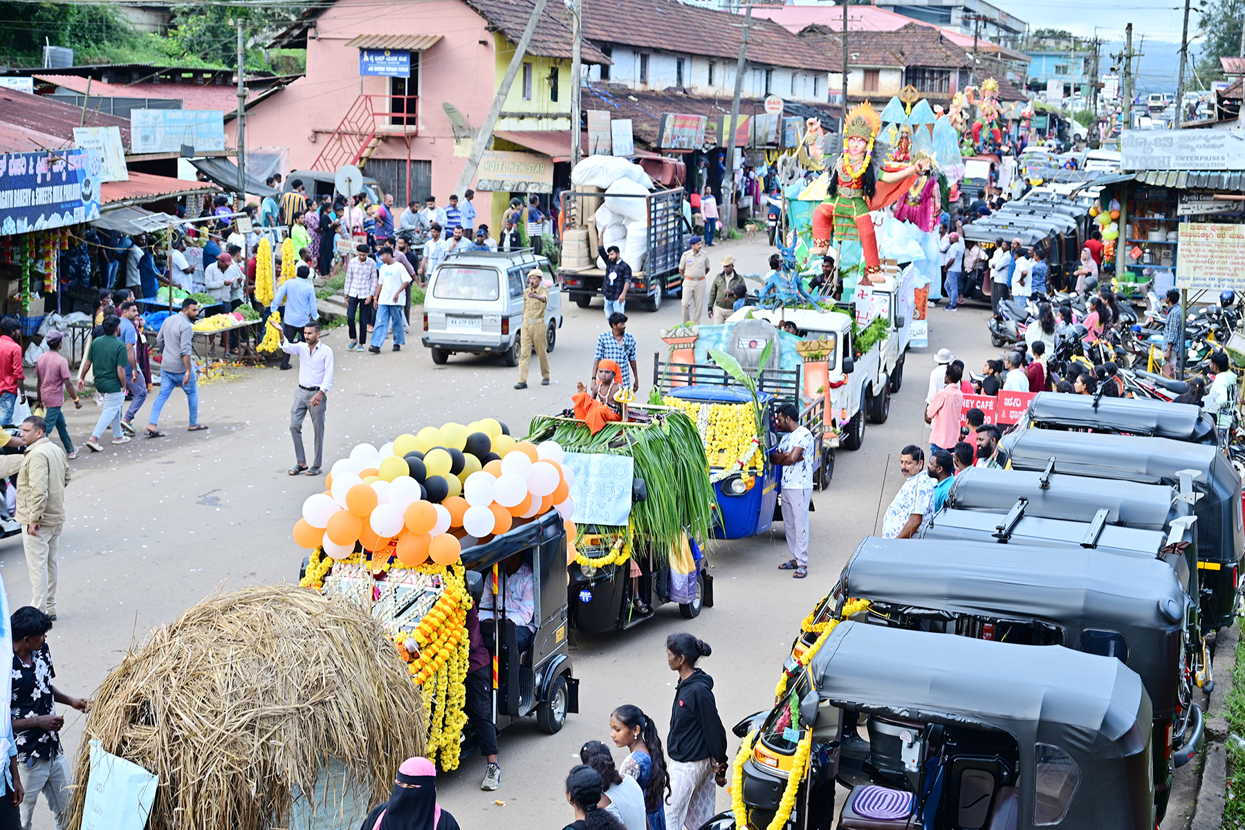 ಮೂರ್ನಾಡು ಅ.6 NEWS DESK : ಮೂರ್ನಾಡುವಿನಲ್ಲಿ ತ್ರಿನೇತ್ರ ವಾಹನ ಮಾಲೀಕರ ಹಾಗೂ ಚಾಲಕರ ಸಂಘದ ವತಿಯಿಂದ ಆಯುಧ ಪೂಜಾ ಕಾರ್ಯಕ್ರಮವು ಅತಿ ವಿಜೃಂಭಣೆಯಿಂದ ಜರುಗಿತು. ಮೂರ್ನಾಡು ಸರ್ಕಾರಿ ಪ್ರೌಢಶಾಲಾ ಮೈದಾನದಲ್ಲಿ ನಿರ್ಮಿಸಲಾದ ಭವ್ಯ ಅಲಂಕೃತ ವೇದಿಕೆಯಲ್ಲಿ 32ನೇ ವರ್ಷದ ಆಯುಧ ಪೂಜೆಯ ಕಾರ್ಯಕ್ರಮಗಳಲ್ಲಿ ಅಲಂಕೃತ ವಾಹನಗಳಿಗೆ ಸಾಮೂಹಿಕ ಪೂಜೆಯನ್ನು ನೆರವೇರಿತು. ನಂತರ ಮುಖ್ಯ ರಸ್ತೆಯಲ್ಲಿ ಸಾಗಿದ ಮೆರವಣಿಗೆಯಲ್ಲಿ ವಿಶೇಷವಾಗಿ ಅಲಂಕೃತಗೊಂಡ ವಾಹನಗಳಲ್ಲಿ ಏಳುಮಲೆ ಮುದ್ದು ಮಾದಪ್ಪ, ಬಡವರ ಗುಡಿಸಲು ಮನೆ, ಕೊಡಗಿನ ಕಾವೇರಿ ಮಾತೆ, ಪರಿಶುದ್ದ ಗಾಳಿಗೆ ಅಗ್ರಸ್ಥಾನ ಪಡೆದ ಮಡಿಕೇರಿ, ಶಬರಿಮಲೆ ಅಯ್ಯಪ್ಪ, ಈಸಲ ಕಪ್ ನಮ್ದೆ ಚಿನ್ನಸ್ವಾಮಿ ಕ್ರೀಡಾಂಗಣ, ವಿಷ್ಣುವಿನ ವರಾಹರೂಪಂ, ಜಸ್ಟೀಸ್ ಫಾರ್ ಸೌಜನ್ಯ, ದೇವಿ ಮಹಾತ್ಮೆ, ಪಿಲಿ ನಲಿಕೆ, ಭೂಲೋಕಕ್ಕೆ ಭೂದೇವಿಯ ಆಗಮನ, ಹೆಂಡತಿಯಿಂದ ವಿಚ್ಛೇದನ ಪಡೆದ ಖುಷಿಗೆ 40 ಲೀಟರ್ ಹಾಲಿನಿಂದ ಸ್ನಾನ ಮಾಡಿದ ಭೂಪ ಹೀಗೆ ಇನ್ನು ಹಲವಾರು ಸ್ತಬ್ದ ಚಿತ್ರಗಳು, ಕಲಾಕೃತಿಗಳು ಮತ್ತು ಕ್ಯಾಲಿಕಟ್‍ನ ಶ್ರೀಹರಿ ಕಲಾ ಸಮಿತಿಯ ಗೊಂಬೆ ಕುಣಿತ ಮತ್ತು ಸುಳ್ಯದ ವಾದ್ಯಗೋಷ್ಠಿಗಳು ವೀಕ್ಷಕರ ಗಮನ ಸೆಳೆದವು. ಸಮಾರಂಭಕ್ಕೆ ಮುಖ್ಯ ಅತಿಥಿಗಳಾಗಿ ಆಗಮಿಸಿದ್ದ ಮೂರ್ನಾಡು ಪ್ರೌಢಶಾಲೆಯ ಮುಖ್ಯ ಶಿಕ್ಷಕಿ ಎಸ್.ಎಂ.ದೇಚಮ್ಮ ಮಾತನಾಡಿ, ಭಾರತ ಸನಾತನ ಸಂಸ್ಕøತಿಯ ಅದ್ಧೂರಿಯ ಹಬ್ಬವೆಂದರೆ ದಸರಾ ಹಬ್ಬವಾಗಿದೆ. ಹಿಂದು ಸಂಸ್ಕೃತಿ ಯಲ್ಲಿ ಎರಡು ನವರಾತ್ರಿಗಳು ಬರುತ್ತದೆ. ಒಂದು ಶರವನ್ನಾವರಾತ್ರಿ ಮತ್ತು ವಸಂತ ನವರಾತ್ರಿ. ಆದರೆ ಶರವನ್ನಾವರಾತ್ರಿ ಹೆಚ್ಚು ಪ್ರಸಿದ್ಧಿ ಪಡೆದುಕೊಂಡಿದೆ. ವಿಜಯದಶಮಿಯ 9ನೇ ದಿನದ ಆಯುಧಪೂಜೆಯ ಮಹತ್ವ ವರ್ಷದಿಂದ ವರ್ಷಕ್ಕೆ ಹೆಚ್ಚಾಗುತ್ತಿದೆ. ಸಮಾಜದಲ್ಲಿ ತಮ್ಮ ಜೀವನಕ್ಕೆ ಆಧಾರವಾದ ಪರಿಕರಗಳನ್ನು ಪೂಜಿಸಿ ಅದಕ್ಕೆ ಗೌರವವನ್ನು ನೀಡುವ ಮೂಲಕ ಎಲ್ಲರೂ ಆಯೂಧ ಪೂಜೆಯನ್ನು ನೆರವೇರಿಸುವುದು ಗಮನಾರ್ಹವಾಗಿದೆ ಎಂದು ಆಯುಧ ಪೂಜೆಯ ಪೌರಾಣಿಕ ಹಿನ್ನಲೆಯನ್ನು ಹೇಳಿದರು. ಸಂಘದ ಸದಸ್ಯರು ಸಮಾಜಮುಖಿ ಕಾರ್ಯಕ್ರಮಗಳಿಗೆ ಹೆಚ್ಚು ಒತ್ತು ಕೊಡುತ್ತಿರುವುದರ ಬಗ್ಗೆ ಮೆಚ್ಚುಗೆ ವ್ಯಕ್ತಪಡಿಸಿದರು. ಕಾಂತೂರು-ಮೂರ್ನಾಡು ಗ್ರಾಮ ಪಂಚಾಯಿತಿ ಅಧ್ಯಕ್ಷ ಬಿ.ಎಸ್.ಕುಶನ್‍ರೈ, ವಿರಾಜಪೇಟೆಯ ಲಯನ್ಸ್ ಕ್ಲಬ್‍ನ ಅಧ್ಯಕ್ಷ ಮತ್ತು ವಕೀಲರಾದ ಬಿ.ಎ.ಕೃಷ್ಣಮೂರ್ತಿ, ಮೂರ್ನಾಡು ಮಾರುತಿ ವಿದ್ಯಾ ಸಂಸ್ಥೆಯ ಅಧ್ಯಕ್ಷ ಮುಂಡಂಡ ಅಪ್ಪಚ್ಚು, ಮಡಿಕೇರಿ ಗ್ರಾಮಾಂತರ ಪೊಲೀಸ್ ವೃತ್ತ ನಿರೀಕ್ಷಕ ಹೆಚ್.ವಿ.ಚಂದ್ರಶೇಖರ್, ಮೂರ್ನಾಡು ಕಂದಾಯ ಇಲಾಖೆಯ ಗ್ರಾಮಾಡಳಿತಾಧಿಕಾರಿ ಅಕ್ಷತ ಬಿ.ಶೆಟ್ಟಿ, ಬೆಂಗಳೂರಿನ ಸಿಗ್ಮಾ ನೆಟ್‍ವರ್ಕ್‍ನ ಮಾಲೀಕ ಅವರೆಮಾದಂಡ ಶರಣ್ ಪೂಣಚ್ಚ ಮತ್ತು ಮೂರ್ನಾಡು ಪೊಲೀಸ್‍ಉಪಠಾಣಾಧಿಕಾರಿ ಪಟ್ರಪಂಡ ಮೊಣ್ಣಪ್ಪ ಅವರುಗಳು ಮಾತನಾಡಿದರು. ತ್ರಿನೇತ್ರ ವಾಹನ ಮಾಲೀಕರ ಹಾಗೂ ಚಾಲಕರ ಸಂಘದ ಅಧ್ಯಕ್ಷ ಕರವಂಡ ಕೆ. ಸಜನ್ ಗಣಪತಿ ಅಧ್ಯಕ್ಷತೆಯಲ್ಲಿ ನಡೆದ ಕಾರ್ಯಕ್ರಮದಲ್ಲಿ ಗ್ರಾ.ಪಂ ಉಪಾಧ್ಯಕ್ಷೆ ಬಿ.ಎಸ್.ರೇಖಾ ಬಾಲು, ಸಂಘದ ಗೌರವಾಧ್ಯಕ್ಷ ಎನ್.ಕೆ.ಕುಂಞರಾಮ, ಹಿಂದೂ ಮಲಯಾಳಿ ಸಂಘದ ಅಧ್ಯಕ್ಷ ಕೆ. ಬಾಬು, ಮೂರ್ನಾಡು ಜ್ಞಾನಜ್ಯೋತಿ ವಿದ್ಯಾಸಂಸ್ಥೆಯ ಅಧ್ಯಕ್ಷ ಮುಕ್ಕಾಟಿರ ರವಿ ಚೀಯಣ್ಣ, ಮೂರ್ನಾಡು ಪಿಎಂಶ್ರೀ ಸರ್ಕಾರಿ ಮಾದರಿ ಪ್ರಾಥಮಿಕ ಶಾಲಾ ಮುಖ್ಯ ಶಿಕ್ಷಕಿ ಬಿ.ಎಸ್. ಪು