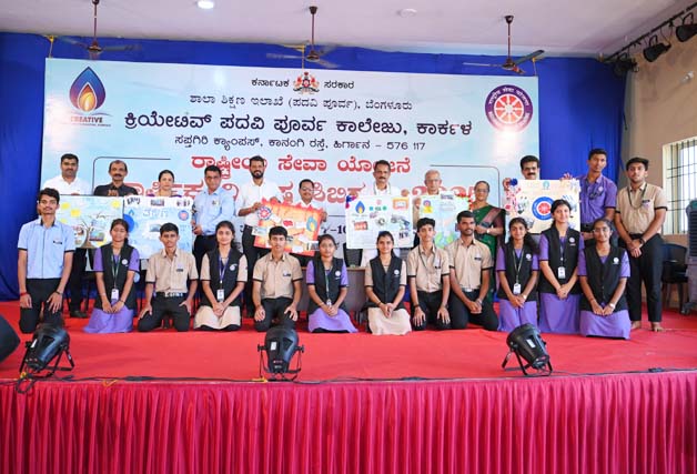 ಮಡಿಕೇರಿ ಅ.9 NEWS DESK : ಕರ್ನಾಟಕ ಸರಕಾರ ಶಾಲಾ ಶಿಕ್ಷಣ ಇಲಾಖೆ (ಪದವಿ ಪೂರ್ವ) ರಾಷ್ಟ್ರೀಯ ಸೇವಾ ಯೋಜನೆ ಪ್ರಯುಕ್ತ ಕಾರ್ಕಳದ ಕ್ರಿಯೇಟಿವ್ ಪದವಿಪೂರ್ವ ಕಾಲೇಜಿನ ವತಿಯಿಂದ ನಡೆದ ‘ನಶಾ ಮುಕ್ತ ಭಾರತ ಅಭಿಯಾನ’ ವಾರ್ಷಿಕ ವಿಶೇಷ ಶಿಬಿರದ ಸಮಾರೋಪ ಸಮಾರಂಭವು ಕಾರ್ಕಳದ ಸರಕಾರಿ ಪದವಿಪೂರ್ವ ಕಾಲೇಜಿನಲ್ಲಿ ಜರುಗಿತು. ಕಾರ್ಯಕ್ರಮದ ಅಧ್ಯಕ್ಷತೆ ವಹಿಸಿ ಮಾತನಾಡಿದ ಉಡುಪಿಶಾಲಾ ಶಿಕ್ಷಣ ಇಲಾಖೆ (ಪದವಿ ಪೂರ್ವ) ಜಿಲ್ಲಾ ಉಪನಿರ್ದೇಶಕರಾದ ಮಾರುತಿ, ವಿದ್ಯಾರ್ಥಿ ಜೀವನದಲ್ಲಿ ಇಂತಹ ಶಿಬಿರಗಳು ನೈಜ ಜೀವನದ ಪಾಠ ಕಲಿಸುವ ಪಾಠ ಶಾಲೆಯಂತಿವೆ. ಸಮಾಜ ಸೇವೆ ಎಂದರೆ ಕೇವಲ ಒಂದು ದಿನದ ಕಾರ್ಯಕ್ರಮವಲ್ಲ. ಅದು ಜೀವನಪೂರ್ತಿ ಅಳವಡಿಸಿಕೊಳ್ಳಬೇಕಾದ ಮನೋಭಾವ’ ಎಂದು ಕರೆ ನೀಡಿದರು. ಸಂಸ್ಥೆಯ ಸಹ ಸಂಸ್ಥಾಪಕರಾದ ಎಸ್.ಎಲ್.ಅಶ್ವತ್ ಪ್ರಾಸ್ತಾವಿಕ ಮಾತನಾಡಿ ‘ಸಮಾಜಕ್ಕೆ ಕೊಡುಗೆ ನೀಡುವ ಮನೋಭಾವ ಬೆಳೆಸಿದರೆ, ಶಿಕ್ಷಣದ ಗುರಿ ಸಾರ್ಥಕವಾಗುತ್ತದೆ’ ಎಂದು ಹೇಳಿದರು. ಮುಖ್ಯ ಅತಿಥಿ ಮುನಿಯಾಲು ಉದಯ ಕೃಷ್ಣಯ್ಯ ಶೆಟ್ಟಿ ಚಾರಿಟೇಬಲ್ ಟ್ರಸ್ಟ್ ಹಾಗೂ ಬಂಟ್ಸ್ ಕೋ ಆಪರೇಟಿವ್ ಸೊಸೈಟಿಯ ಅಧ್ಯಕ್ಷ ಉದಯ್ ಕುಮಾರ್ ಶೆಟ್ಟಿ ಇಂದಿನ ಯುವಕರು ಸಾಮಾಜಿಕ ಹೊಣೆಗಾರಿಕೆಯನ್ನು ಅರಿತುಕೊಳ್ಳುವಲ್ಲಿ ಮುಂಚೂಣಿಯಲ್ಲಿರಬೇಕು. ಶಿಬಿರಗಳಲ್ಲಿ ಬೆಳೆದ ಅನುಭವವು ಭವಿಷ್ಯದ ನಾಯಕರಾಗಿ ರೂಪಗೊಳ್ಳಲು ಸಹಾಯಕವಾಗುತ್ತದೆ’ ಎಂದರು. ಉದ್ಯಮಿ ವಿಜಯ್ ಶೆಟ್ಟಿ ಮಾತನಾಡಿ, ವಿದ್ಯಾರ್ಥಿಗಳು ಕೇವಲ ಅಕಾಡೆಮಿಕ್ ಯಶಸ್ಸಿನಲ್ಲೇ ಅಲ್ಲ, ಸಮಾಜಮುಖಿ ಕಾರ್ಯಗಳಲ್ಲೂ ತೊಡಗಿಸಿಕೊಂಡಾಗ ಮಾತ್ರ ನಿಜವಾದ ಶಿಕ್ಷಣದ ಅರ್ಥ ಸಾರ್ಥಕವಾಗುತ್ತದೆ’ ಎಂದು ಹೇಳಿದರು. ಕಾಲೇಜು ಅಭಿವೃದ್ಧಿ ಸಮಿತಿಯ ಉಪಾಧ್ಯಕ್ಷರು ಮತ್ತು ಇಸ್ರೋದ ನಿವೃತ್ತ ವಿಜ್ಞಾನಿ ಜನಾರ್ಧನ ಇಡ್ಯಾ ರವರು ‘ಜೀವನದಲ್ಲಿ ದೊಡ್ಡ ಸ್ಥಾನ ಪಡೆಯುವುದಕ್ಕಿಂತ, ಒಳ್ಳೆಯ ಮಾನವಿಯ ಮೌಲ್ಯಗಳನ್ನು ಅಳವಡಿಸಿಕೊಂಡು ನಾಗರಿಕನಾಗುವುದು ಮುಖ್ಯ. ಈ ಶಿಬಿರದ ಅನುಭವಗಳು ನಿಮ್ಮ ವ್ಯಕ್ತಿತ್ವ ರೂಪಿಸುವಲ್ಲಿ ಮಹತ್ವದ ಪಾತ್ರ ವಹಿಸುತ್ತವೆ’ ಎಂದರು. ನಂದಿನಿ ಶೆಟ್ಟಿ, ನ್ಯಾಯವಾದಿ ಮತ್ತು ನೋಟರಿ, ಕಾರ್ಕಳ ಇವರು ‘ಎನ್.ಎಸ್.ಎಸ್ ಶಿಬಿರವು ವಿದ್ಯಾರ್ಥಿಗಳಲ್ಲಿ ಸೇವಾ ಮನೋಭಾವ, ನಾಯಕತ್ವ ಹಾಗೂ ಮಾನವೀಯ ಮೌಲ್ಯಗಳನ್ನು ಬೆಳೆಸುವ ವೇದಿಕೆ ಆಗಿದೆ’ ಎಂದು ಅಭಿಪ್ರಾಯಪಟ್ಟರು. ವರ್ಮ ಅಜ್ರಿ, ವಿಶ್ರಾಂತ ಪ್ರಾಂಶುಪಾಲರು, ಎಂ.ಪಿ.ಎಂ ಕಾಲೇಜು, ಕಾರ್ಕಳ ಇವರು’ಯುವಕರು ರಾಷ್ಟ್ರದ ಶಕ್ತಿ. ಅವರಿಂದ ಪ್ರಾರಂಭವಾಗುವ ಪ್ರತಿಯೊಂದು ಸಣ್ಣ ಸೇವಾ ಚಟುವಟಿಕೆ ದೇಶದ ಅಭಿವೃದ್ಧಿಗೆ ದಾರಿ ತೋರಿಸಬಹುದು’ ಎಂದು ಹೇಳಿದರು. ಅನ್ನಪೂರ್ಣ ಕಾಮತ್, ಪ್ರಾಂಶುಪಾಲರು, ಸರಕಾರಿ ಪದವಿಪೂರ್ವ ಕಾಲೇಜು, ಕಾರ್ಕಳ ಇವರು ಎನ್.ಎಸ್.ಎಸ್ ಘಟಕದ ವತಿಯಿಂದ ನಡೆದ ಕಾರ್ಯವೈಖರಿಗಳನ್ನು ಶ್ಲಾಘಿಸಿ, ವಂದಿಸುತ್ತಾ ‘ವಿದ್ಯಾರ್ಥಿಗಳು ಶ್ರಮ, ಶಿಸ್ತು ಮತ್ತು ಸೇವಾ ಮನೋಭಾವದಿಂದ ಕಾರ್ಯನಿರ್ವಹಿಸಿದ್ದು ಪ್ರಶಂಸನೀಯ. ಎನ್.ಎಸ್.ಎಸ್ ಕೇವಲ ಕಾರ್ಯಕ್ರಮವಲ್ಲ, ಅದು ವ್ಯಕ್ತಿತ್ವ ನಿರ್ಮಾಣದ ಪಾಠವಾಗಿದೆ’ ಎಂದರು. :: ಪೌರ ಕಾರ್ಮಿಕರಿಗೆ ಸನ್ಮಾನ :: ಸಮಾರೋಪ ಕಾರ್ಯಕ್ರಮದಲ್ಲಿ 25 ವರ್ಷಗಳಿಗಿಂತಲೂ ಸುದೀರ್ಘ ಅವಧಿಯಿಂದ ಪೌರಕಾರ್ಮಿಕರಾಗಿ ದುಡಿದು ಸಮಾಜಕ್ಕೆ ಸೇವೆ ಸಲ್ಲಿಸುತ್ತಿರುವ ಸುಧೀರ್, ಪೂವಪ್ಪ, ರವಿ, ನಾಗೇಶ್, ಸಂಜೀವ ಇವರನ್ನು ಎನ್.ಎಸ್.ಎಸ್ ಘಟಕದ 