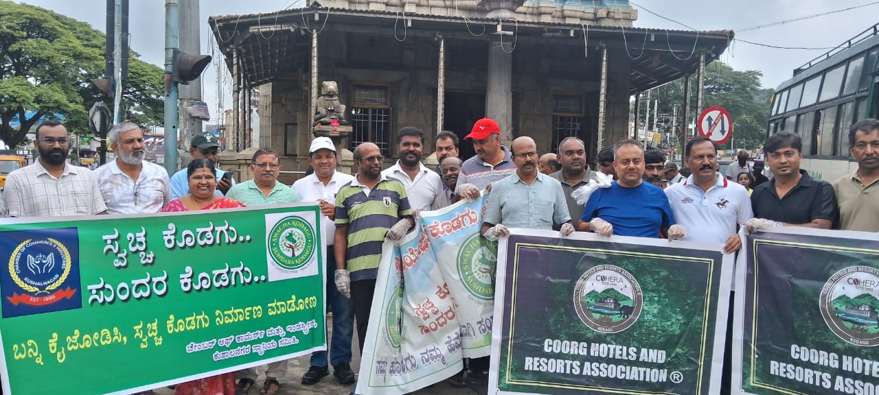- ಕುಶಾಲನಗರ ಅ.15 NEWS DESK : ಕೊಡಗು ಜಿಲ್ಲೆಯಲ್ಲಿ ಜಿಲ್ಲಾ ಹೋಟೆಲ್ ಮತ್ತು ರೆಸಾರ್ಟ್ ಅಸೋಸಿಯೇಷನ್ ಮತ್ತು ಜಿಲ್ಲಾ ಛೇಂಬರ್ ಆಫ್ ಕಾಮರ್ಸ್ ಸಂಘಟನೆ ಹಾಗೂ ಮತ್ತಿತರ ಸಂಘಟನೆಗಳ ಸಹಯೋಗದೊಂದಿಗೆ ಬುಧವಾರ ಜಿಲ್ಲೆಯಲ್ಲಿ ಹಮ್ಮಿಕೊಂಡಿದ್ದ ಸ್ವಚ್ಛ ಕೊಡಗು- ಸುಂದರ ಕೊಡಗು: ಸ್ವಚ್ಛತಾ ಅಭಿಯಾನವನ್ನು ಜಿಲ್ಲೆಯ ವಾಣಿಜ್ಯ ನಗರಿಯಾದ ಕುಶಾಲನಗರ ಪಟ್ಟಣದಲ್ಲಿ ವಿವಿಧ ಸಂಘ- ಸಂಸ್ಥೆಗಳು ಹಾಗೂ ನಾಗರಿಕರ ಸಮ್ಮುಖದಲ್ಲಿ ಯಶಸ್ವಿಯಾಗಿ ನಡೆಸಲಾಯಿತು. ಕುಶಾಲನಗರ ಪಟ್ಟಣದಲ್ಲಿಗಣಪತಿ ದೇವಸ್ಥಾನದ ಮುಂಭಾಗದಲ್ಲಿನ ಫೀಲ್ಡ್ ಮಾರ್ಷಲ್ ಕೆ.ಎಂ.ಕಾರ್ಯಪ್ಪ ವೃತ್ತದಲ್ಲಿ ಸ್ವಚ್ಛತಾ ಆಂದೋಲನಕ್ಕೆ ಚಾಲನೆ ನೀಡಲಾಯಿತು. ಸ್ವಚ್ಛತೆ ಕುರಿತ ಘೋಷಣೆಗಳು ಹಾಗೂ ಸ್ವಚ್ಚತಾ ಪ್ರತಿಜ್ಞಾ ವಿಧಿ ಸ್ವೀಕರಿಸುವ ಮೂಲಕ ದಾರಿಯಲ್ಲಿ ಬಿದ್ದಿದ್ದ ಕಸ,ಕಡ್ಡಿ, ಪ್ಲಾಸ್ಟಿಕ್ ತ್ಯಾಜ್ಯ ಮತ್ತಿತರ ಕಸವನ್ನು ಹೆರಕಿ ಸುತ್ತಮುತ್ತಲಿನ ಪರಿಸರವನ್ನು ಸ್ವಚ್ಛ ಮಾಡಲಾಯಿತು. ಸ್ವಚ್ಚತಾ ಅಭಿಯಾನಕ್ಕೆ ಚಾಲನೆ ನೀಡಿ ಮಾತನಾಡಿದ ಪುರಸಭೆ ಅಧ್ಯಕ್ಷೆ ಜಯಲಕ್ಷ್ಮಿ ಚಂದ್ರು, ಕುಶಾಲನಗರ ಪಟ್ಟಣ ಸೇರಿದಂತೆ ಜಿಲ್ಲೆಯಲ್ಲಿ ಸ್ವಚ್ಛತೆ ಕಾಪಾಡಲು ಸಾರ್ವಜನಿಕರ ಸಹಭಾಗಿತ್ವ ಅಗತ್ಯ ಎಂದರು. ಸ್ವಚ್ಛತಾ ಕಾರ್ಯದ ಉದ್ದೇಶ ಕುರಿತು ಮಾಹಿತಿ ನೀಡಿದ ಜಿಲ್ಲಾ ಚೇಂಬರ್ ಆಫ್ ಕಾಮರ್ಸ್ ನ ಅಧ್ಯಕ್ಷ ಬಿ.ಆರ್.ನಾಗೇಂದ್ರಪ್ರಸಾದ್ ಮಾತನಾಡಿ, ಜಿಲ್ಲೆಯಲ್ಲಿ ಸ್ವಚ್ಛ, ಹಸಿರು ಹಾಗೂ ಸುಂದರ ಪರಿಸರ ನಿರ್ಮಾಣಕ್ಕೆ ಪ್ರತಿಯೊಬ್ಬರೂ ಕೈಜೋಡಿಸಬೇಕು. ಜಿಲ್ಲೆಯಲ್ಲಿ ಈ ದಿನ ಏಕಕಾಲದಲ್ಲಿ ಹಮ್ಮಿಕೊಂಡಿರುವ ಸ್ವಚ್ಚತಾ ಅಭಿಯಾನವನ್ನು ನಿರಂತರವಾಗಿ ಮುಂದುವರಿಸಿಕೊಂಡು ಹೋಗುವ ಮೂಲಕ ಜಿಲ್ಲೆಯನ್ನು ಸ್ವಚ್ಛ ಕೊಡಗು ಮತ್ತು ಸುಂದರ ಕೊಡಗು ಜಿಲ್ಲೆಯನ್ನಾಗಿ ರೂಪಿಸಲು ಎಲ್ಲರೂ ಸಹಕರಿಸಬೇಕು ಎಂದು ಮನವಿ ಮಾಡಿದರು. ಚೇಂಬರ್ ಆಫ್ ಕಾಮರ್ಸ್ ನ ಕುಶಾಲನಗರ ಸ್ಥಾನೀಯ ಸಮಿತಿಯ ಅಧ್ಯಕ್ಷ ಕೆ.ಎಸ್.ನಾಗೇಶ್ ಮಾತನಾಡಿ, ಈ ಸ್ವಚ್ಚತಾ ಆಂದೋಲನವು ಒಂದು ದಿನಕ್ಕೆ ಸೀಮಿತಗೊಳ್ಳದೇ ನಿರಂತರವಾಗಿ ಮುಂದುವರೆಯುವ ಮೂಲಕ ಸ್ವಚ್ಚ ಪರಿಸರ ನಿರ್ಮಾಣಕ್ಕೆ ಪಣ ತೊಡಬೇಕಿದೆ ಎಂದರು. ಸ್ವಚ್ಚತಾ ಪ್ರತಿಜ್ಞಾ ವಿಧಿ ಬೋಧಿಸಿದರ ಕರ್ನಾಟಕ ರಾಜ್ಯ ವಿಜ್ಞಾನ ಪರಿಷತ್ತಿನ ಜಿಲ್ಲಾ ಸಮಿತಿಯ ಅಧ್ಯಕ್ಷರೂ ಆದ ಜಿಲ್ಲಾ ಪರಿಸರ ಜಾಗೃತಿ ಆಂದೋಲನದ ಸಂಚಾಲಕ ಟಿ.ಜಿ.ಪ್ರೇಮಕುಮಾರ್ ಮಾತನಾಡಿ, ಪರಿಸರಕ್ಕೆ ಮಾರಕವಾದ ಏಕ ಬಳಕೆಯ ಪ್ಲಾಸ್ಟಿಕ್ ತ್ಯಜಿಸುವ ಮೂಲಕ ಪರಿಸರ ಸ್ನೇಹಿ ವಸ್ತುಗಳನ್ನು ಬಳಕೆ ಮಾಡುವ ಮೂಲಕ ಸ್ವಚ್ಛ, ನೈರ್ಮಲ್ಯ, ಹಸಿರು ಹಾಗೂ ಸುಂದರ ಪರಿಸರ ನಿರ್ಮಾಣಕ್ಕೆ ಸಂಕಲ್ಪ ತೊಡಬೇಕು. ಕಸವನ್ನು ಎಲ್ಲೆಂದರಲ್ಲಿ ಬಿಸಾಕದೆ ಸೂಕ್ತವಾಗಿ ವಿಲೇವಾರಿ ಮಾಡುವ ಮೂಲಕ ಪರಿಸರ ಸ್ವಚ್ಚತೆ ಕಾಪಾಡುವುದು ಎಲ್ಲರ ಜವಾಬ್ದಾರಿಯಾಗಿದೆ ಎಂದರು. ಕುಡಾ ಅಧ್ಯಕ್ಷ ಪ್ರಮೋದ್ ಮುತ್ತಪ್ಪ, ಕುಡಾ ಮಾಜಿ ಅಧ್ಯಕ್ಷ ಬಿ.ಜಿ.ಮಂಜುನಾಥ್ ಗುಂಡೂರಾವ್, ಪೊಲೀಸ್ ವೃತ್ತ ನಿರೀಕ್ಷಿಕ ದಿನೇಶ್ ಕುಮಾರ್, ಪುರಸಭೆಯ ಮುಖ್ಯಾಧಿಕಾರಿ ಟಿ.ಜೆ.ಗಿರೀಶ್, ಹಿರಿಯ ಆರೋಗ್ಯ ನಿರೀಕ್ಷಕ ಉದಯ್ ಕುಮಾರ್, ಟ್ರಾವೆಲ್ಸ್ ಅಸೋಸಿಯೇಷನ್ ನ ಪ್ರಮುಖರಾದ ಜನಾರ್ದನ ಪ್ರಭು, ಡಿ.ಕೆ.ಮಂಜುನಾಥ್, ಚಂದ್ರು, ವಿವಿಧ ಸಂಘಟನೆಗಳ ಪ್ರಮುಖರಾದ ಜೋಸೆಫ್ ವಿಕ್ಟರ್ ಸೋನ್ಸ್, ಚೇಂಬರ್ ನ ಪ್ರಮುಖರಾದ ಎಂ.ಡಿ.ರಂಗಸ್ವಾಮಿ, ಚಿತ್ರಾ ರಮೇಶ್, ಕೆ.ಎಸ್.ರಾಜಶೇಖರ್, ಟ್ರಾ