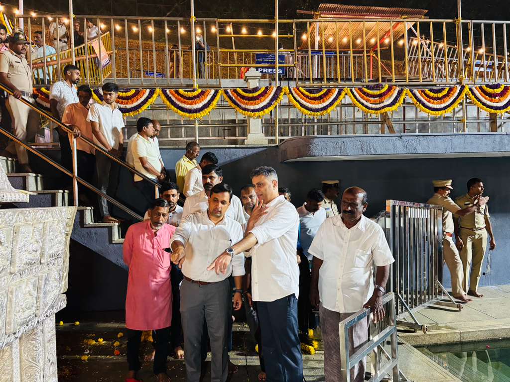 ಮಡಿಕೇರಿ NEWS DESK ಅ.16 : ನಾಡಿನ ಜೀವನದಿ ಕಾವೇರಿ ಉಗಮಸ್ಥಾನ ತಲಕಾವೇರಿಯಲ್ಲಿ ಶ್ರೀ ಕಾವೇರಿ ತುಲಾ ಸಂಕ್ರಮಣ ಪವಿತ್ರ ತೀರ್ಥೋದ್ಭವ ಸಂಬಂಧ ಸಿದ್ಧತೆಯನ್ನು ಮುಖ್ಯಮಂತ್ರಿ ಅವರ ಕಾನೂನು ಸಲಹೆಗಾರರು ಹಾಗೂ ಶಾಸಕ ಎ.ಎಸ್.ಪೊನ್ನಣ್ಣ ಅವರು ಗುರುವಾರ ಪರಿಶೀಲಿಸಿದರು. ಭಾಗಮಂಡಲ ಶ್ರೀ ಭಗಂಡೇಶ್ವರ ದೇವಾಲಯದಲ್ಲಿ ಪೂಜೆ ಸಲ್ಲಿಸಿ, ತ್ರಿವೇಣಿ ಸಂಗಮ ಭೇಟಿ ನೀಡಿ ವೀಕ್ಷಿಸಿದರು, ಬಳಿಕ ತಲಕಾವೇರಿಯಲ್ಲಿನ ಸಿದ್ಧತೆ ಪರಿಶೀಲಿಸಿದರು. ಭಕ್ತಾದಿಗಳಿಗೆ ಯಾವುದೇ ರೀತಿ ಕಿರಿಕಿರಿ ಉಂಟಾಗದಂತೆ ಎಚ್ಚರವಹಿಸುವಂತೆ ಸಂಬಂಧಪಟ್ಟವರಿಗೆ ನಿರ್ದೇಶನ ನೀಡಿದರು. ಜಿಲ್ಲಾಧಿಕಾರಿ ವೆಂಕಟ್ ರಾಜಾ, ಜಿಲ್ಲಾ ಪೊಲೀಸ್ ವರಿಷ್ಠಾಧಿಕಾರಿ ಕೆ.ರಾಮರಾಜನ್, ಹೆಚ್ಚುವರಿ ಜಿಲ್ಲಾಧಿಕಾರಿ ಆರ್.ಐಶ್ವರ್ಯ, ಹೆಚ್ಚುವರಿ ಪೊಲೀಸ್ ವರಿಷ್ಠಾಧಿಕಾರಿ ದಿನೇಶ್ ಕುಮಾರ್, ತಕ್ಕ ಮುಖ್ಯಸ್ಥರು, ಇತರರು ಇದ್ದರು.