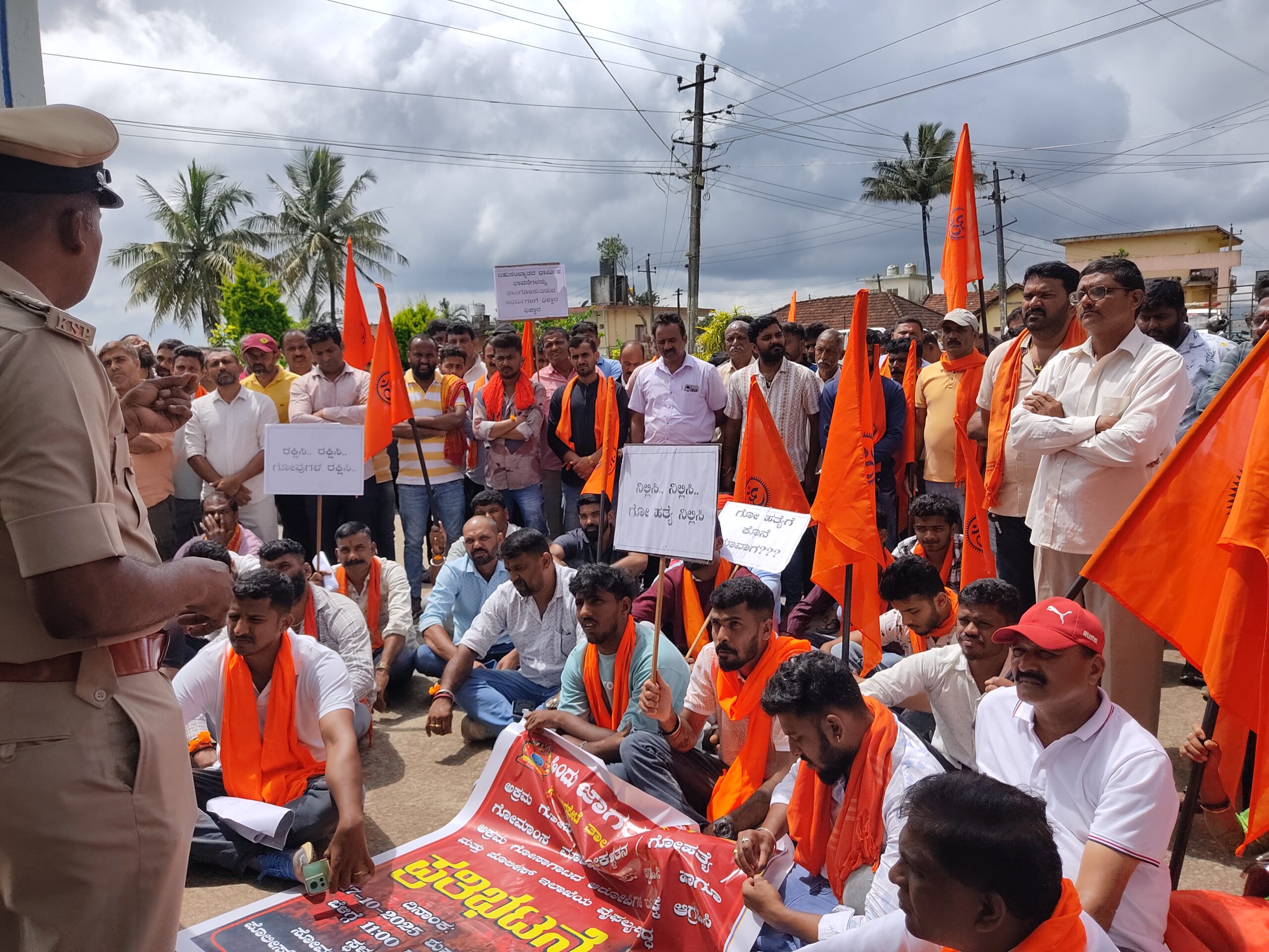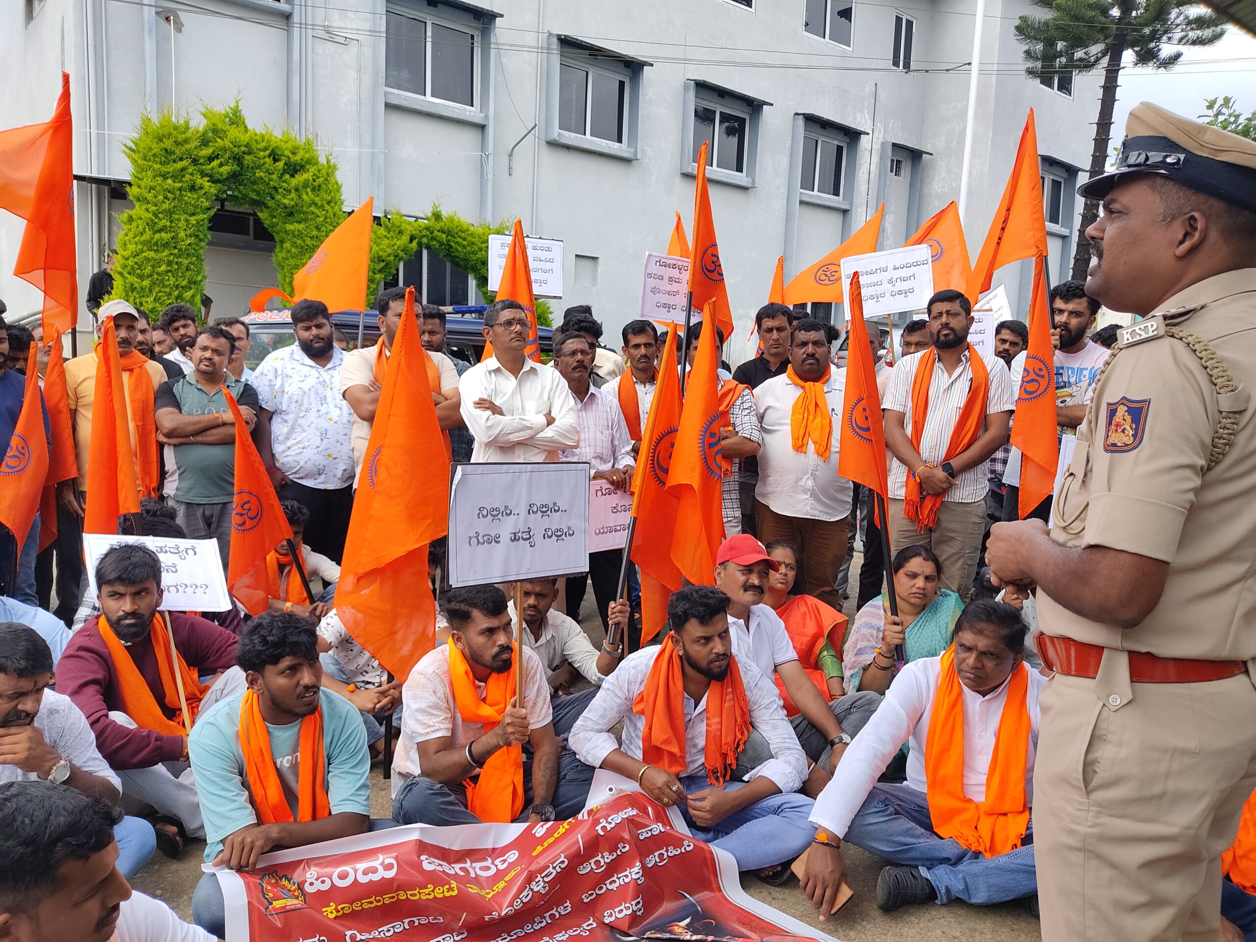 ಸೋಮವಾರಪೇಟೆ ಅ.17 NEWS DESK : ಅಕ್ರಮ ಗೋಸಾಗಾಟ, ಗೋಕಳ್ಳತನ, ಗೊಹತ್ಯೆ, ಗೋಮಾಂಸ ಮಾರಾಟ ತಾಲ್ಲೂಕು ವ್ಯಾಪ್ತಿಯಲ್ಲಿ ಹೆಚ್ಚಾಗಿದೆ. ಇದನ್ನು ತಡೆಯುವಲ್ಲಿ ಪೊಲೀಸ್ ಇಲಾಖೆ ವಿಫಲವಾಗಿದೆ ಎಂದು ಆರೋಪಿಸಿದ ಹಿಂದು ಜಾಗರಣ ವೇದಿಕೆ ಸದಸ್ಯರು ಪಟ್ಟಣದ ಪೊಲೀಸ್ ಠಾಣೆ ಎದುರು ಪ್ರತಿಭಟನೆ ನಡೆಸಿ, ಪೊಲೀಸರ ವಿರುದ್ಧ ಧಿಕ್ಕಾರ ಕೂಗಿದರು. ಹಿಂದುಪರ ಹೋರಾಟಗಾರರನ್ನು ಠಾಣೆಯಲ್ಲಿ ಕ್ರಿಮಿನಲ್ಗಳಂತೆ ನೋಡಲಾಗುತ್ತಿದೆ. ಸೌಜನ್ಯಕ್ಕಾದರೂ ಕುಳಿತುಕೊಳ್ಳಿ ಎಂದು ಹೇಳುತ್ತಿಲ್ಲ ಎಂದು ಇನ್ಸ್ಪೆಕ್ಟರ್ ಮುದ್ದುಮಾದೇವ ವಿರುದ್ಧ ಪ್ರತಿಭಟನಾಕಾರರು ಅಸಮಾಧಾನ ವ್ಯಕ್ತಪಡಿಸಿ ತರಾಟೆಗೆ ತೆಗೆದುಕೊಂಡರು. ಈಚೆಗೆ ಕಾಗಡೀಕಟ್ಟೆ ಸಮೀಪ ಗೋಸಾಗಾಟ ಮಾಡುತ್ತಿದ್ದ ವಾಹನ ಅಪಘಾತಕ್ಕೀಡಾಗಿದೆ. ಕಳ್ಳರ ಬೆಂಗಾವಲಿಗಿದ್ದ ವಾಹನದಲ್ಲಿ ಆರೋಪಿಗಳು ಪರಾರಿಯಾಗಿದ್ದಾರೆ. ಆದರೆ ಇದುವರೆಗೆ ಆರೋಪಿಗಳನ್ನು ಬಂಧಿಸಿಲ್ಲ. ಪ್ರಕರಣದ ನಿಜವಾದ ಆರೋಪಿಗಳನ್ನು ತಕ್ಷಣವೇ ಬಂಧಿಸದಿದ್ದರೆ, ಸೋಮವಾರಪೇಟೆ ಬಂದ್ ಗೆ ಕರೆ ನೀಡುವುದಾಗಿ ವೇದಿಕೆಯ ಜಿಲ್ಲಾ ಸಂಯೋಜಕ ಬೋಜೇಗೌಡ ಎಚ್ಚರಿಸಿದರು. ಪಟ್ಟಣದ ಸುತ್ತಮುತ್ತ ರಾತ್ರಿ ಪೊಲೀಸ್ ಬೀಟ್ಯಿದ್ದರೂ ವಾಹನಗಳಲ್ಲಿ ಅಕ್ರಮವಾಗಿ ಗೋಸಾಗಾಟ ನಡೆಯುತ್ತಿದೆ. ಟಿಂಬರ್ ಲಾರಿಗಳು ತಡೆಯವುದೇ ಕೆಲವು ಪೊಲೀಸರ ಕೆಲಸವಾಗಿದೆ ಎಂದು ದೂರಿದರು. ಹೊರ ರಾಜ್ಯದ ಕಾರ್ಮಿಕರ ಆಧಾರ್ ಕಾರ್ಡ್ಗಳನ್ನು ಪೊಲೀಸ್ ಇಲಾಖೆ ಆ್ಯಪ್ ಮೂಲಕ ಪರಿಶೀಲನೆ ಮಾಡಲಾಗುತ್ತಿದೆ. ನಕಲಿ ಕಾರ್ಡ್ ಗಳ ಪತ್ತೆಯಾಗುತ್ತದೆ. ಪಟ್ಟಣದಲ್ಲಿ ಅನುಮಾಸ್ಪದ ವ್ಯಕ್ತಿಗಳನ್ನು ವಿಚಾರಣೆಗೊಳಪಡಿಸಲಾಗುತ್ತಿದೆ ಎಂದು ಇನ್ಸ್ಪೆಕ್ಟರ್ ಮುದ್ದು ಮಹಾದೇವ ಹೇಳಿದರು. ಅಕ್ರಮವಾಗಿ ದನಗಳನ್ನು ಸಾಗಾಟ ಮಾಡುವ ವಾಹನ ಅಪಘಾತವಾಗಿದ್ದು, ಅದರಲ್ಲಿದ್ದ ಓರ್ವ ಆರೋಪಿಯನ್ನು ಬಂಧಿಸಿ, ಮೊಕದ್ದಮೆ ದಾಖಲಿಸಿ, ನ್ಯಾಯಾಲಯಕ್ಕೆ ಹಾಜರುಪಡಿಸಲಾಗಿದೆ. ಬೆಂಗಾವಲಿಗಿದ್ದ ವಾಹನನ್ನೂ ವಶಕ್ಕೆ ಪಡೆಯಲಾಗಿದೆ. ಇನ್ನಿಬ್ಬರು ಆರೋಪಿಗಳನ್ನು ಸದ್ಯದಲ್ಲೇ ಬಂಧಿಸಲಾಗುವುದು ಎಂದು ಭರವಸೆ ನೀಡಿದ ಹಿನ್ನೆಲೆಯಲ್ಲಿ ಪ್ರತಿಭಟನೆಯನ್ನು ಹಿಂಪಡೆಯಲಾಯಿತು. ಪ್ರತಿಭಟನೆಯಲ್ಲಿ ವೇದಿಕೆ ಪ್ರಾಂತ ಕಾರ್ಯಕಾರಣಿ ಸುನಿಲ್ ಮಾದಾಪುರ, ಸಹ ಸಂಯೋಜಕರಾದ ಕುಮಾರ್ ಮೇಕೇರಿ, ಶರತ್ ಪೊನ್ನಂಪೇಟೆ, ಯೋಗೇಶ್ ವಿರಾಜಪೇಟೆ, ತಾಲ್ಲೂಕು ಸಂಯೋಜಕ ಎಂ.ಉಮೇಶ್, ವಿಶ್ವ ಹಿಂದು ಪರಿಷತ್ ಜಿಲ್ಲಾ ಉಪಾಧ್ಯಕ್ಷ ಪರಮೇಶ್ ಮತ್ತಿತರರು ಇದ್ದರು.
