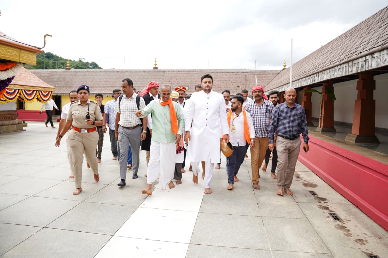 ಮಡಿಕೇರಿ NEWS DESK ಅ.17 : ಸಂಸದ ಯದುವೀರ್ ಮೈಸೂರು ರಾಜವಂಶಸ್ಥರ ಉಡುಗೆಯಲ್ಲಿ ಕಾವೇರಿ ತೀಥೋ೯ದ್ವವ ಸಂದಭ೯ ಕಂಗೊಳಿಸಿದ್ದು ವಿಶೇಷವಾಗಿತ್ತು. ತಲೆಗೆ ಮೈಸೂರು ಪೇಟ ಧರಿಸಿದ್ದ ಯದುವೀರ್ ಕೊಡವರೊಂದಿಗೆ ಭಾಗಮಂಡಲದಿಂದ 8 ಕಿ.ಮೀ. ದೂರದ ತಲಕಾವೇರಿಗೆ ಬರೀಕಾಲಿನಲ್ಲಿಯೇ ಹೆಜ್ಜೆ ಹಾಕಿದ್ದು ವಿಶೇಷವಾಗಿತ್ತು. ಮುಖ್ಯಮಂತ್ರಿಗಳ ಕಾನೂನು ಸಲಹೆಗಾರ ಎ.ಎಸ್. ಪೊನ್ನಣ್ಣ ಕೊಡವ ಸಾಂಪ್ರದಾಯಿಕ ಧಿರಿಸಿನಲ್ಲಿ ಸಂಸದರ ಜತೆ ಕಾಲ್ನಡಿಗೆಯಲ್ಲಿಯೇ ಹೆಜ್ಜೆ ಹಾಕಿದರು. ನಮ್ಮ ನಾಡಿನ ಜೀವನದಿ, ಸಕಲ ಜೀವರಾಶಿಗಳಿಗೂ “ತಾಯಿ” ಸ್ವರೂಪಳಾದ ಕಾವೇರಿ ಮಾತೆಯ ತೀರ್ಥೋದ್ಭವದಲ್ಲಿ ಪಾಲ್ಗೊಂಡಿದ್ದು ನಿಜಕ್ಕೂ ಧನ್ಯತಾ ಭಾವ ಮೂಡಿಸಿತು ಎಂದು *ಮೈಸೂರು-ಕೊಡಗು ಲೋಕಸಭಾ ಕ್ಷೇತ್ರದ ಸಂಸದ ಯದುವೀರ್ ಕೃಷ್ಣದತ್ತ ಚಾಮರಾಜ ಒಡೆಯರ್* ತಿಳಿಸಿದ್ದಾರೆ. ಕಾವೇರಿ ತೀರ್ಥೋದ್ಭವವನ್ನು ಕಣ್ತುಂಬಿಕೊಂಡ ನಂತರ ಹೇಳಿಕೆ ನೀಡಿರುವ ಸಂಸದರು, ಇದೊಂದು ಅಪೂರ್ವ ಕ್ಷಣ ಮತ್ತು ಕಾವೇರಿ ಮಾತೆಯು ತೀರ್ಥ ಸ್ವರೂಪದಲ್ಲಿ ಉಕ್ಕುತ್ತಿದ್ದಂತೆ ಧಾರ್ಮಿಕ ಭಾವನೆಗಳೂ ಉಕ್ಕುತ್ತವೆ ಎಂದು ತಿಳಿಸಿದ್ದಾರೆ. ಇದಕ್ಕೂ ಮುನ್ನ ನಮ್ಮ ಕೊಡಗು ಜನರು ಹಾಗೂ ನಮ್ಮ ನಾಯಕರೊಂದಿಗೆ ಭಾಗಮಂಡಲದಿಂದ ತಲಕಾವೇರಿವರೆಗೆ ಪಾದಯಾತ್ರೆಯಲ್ಲಿ ಬಂದಿದ್ದು ನಿಜಕ್ಕೂ ಹೆಮ್ಮೆ ಎನಿಸಿತು. ಇದೊಂದು ಅಪೂರ್ವ ಅವಕಾಶವಾಗಿತ್ತು ಎಂದು ಸಂಸದರು ವಿವರಿಸಿದ್ದಾರೆ. ಕಾವೇರಿ ಮಾತೆ ಸಮೃದ್ಧತೆಯಿಂದ ಕೂಡಿದ್ದರೆ ನಾಡು ಸಮೃದ್ಧವಾಗಿರುತ್ತದೆ. ನಾಡಿನಲ್ಲಿ ಶಾಂತಿ, ನೆಮ್ಮದಿ, ಸುಭಿಕ್ಷೆ ತುಂಬಿರಲಿ ಇದೇ ಸಂದರ್ಭದಲ್ಲಿ ಮನಸಾರೆ ಪ್ರಾರ್ಥಿಸಿದ್ದೇನೆ ಎಂದು ಯದುವೀರ್ ಒಡೆಯರ್ ಹೇಳಿದ್ದಾರೆ.