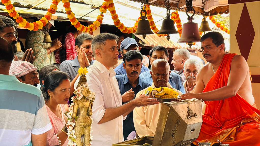 ಮಡಿಕೇರಿ ಅ.18 NEWS DESK : ವಿರಾಜಪೇಟೆ ವಿಧಾನಸಭಾ ಕ್ಷೇತ್ರದ ಬಲಂಬೇರಿ ಪ್ರಸಿದ್ಧ ಅಗಸ್ತೇಶ್ವರ ದೇವಾಲಯಕ್ಕೆ ಮುಖ್ಯಮಂತ್ರಿಗಳ ಕಾನೂನು ಸಲಹೆಗಾರರು ಹಾಗೂ ವಿರಾಜಪೇಟೆ ವಿಧಾನಸಭಾ ಕ್ಷೇತ್ರದ ಶಾಸಕ ಎ.ಎಸ್.ಪೊನ್ನಣ್ಣ ಭೇಟಿ ನೀಡಿ ವಿಶೇಷ ಪ್ರಾರ್ಥನೆ ಸಲ್ಲಿಸಿದರು. ಐತಿಹಾಸಿಕ ಮಹತ್ವವುಳ್ಳ ಹಾಗೂ ಕಾವೇರಿ ತಾಯಿಗೆ ಸಂಬಂಧಿಸಿದ ಅತ್ಯಂತ ಪಾವಿತ್ರ್ಯತೆಯ ಈ ಕ್ಷೇತ್ರಕ್ಕೆ, ತುಲಾ ಸಂಕ್ರಮಣದ ಮರುದಿನ ಶಾಸಕರು ಆಗಮಿಸಿ ಪೂಜೆ ಸಲ್ಲಿಸಿದರು. ಕ್ಷೇತ್ರಕ್ಕೆ ಆಗಮಿಸಿ ಕಾವೇರಿ ನದಿಗೆ ತೆರಳಿ, ಪುಣ್ಯ ತೀರ್ಥ ಸೇವಿಸಿದ ಬಳಿಕ ನದೀ ಸ್ವರೂಪಿಣಿ ಕಾವೇರಿ ತಾಯಿಗೆ ಆರತಿ ಮಾಡುವ ಮೂಲಕ ಪ್ರಾರ್ಥನೆ ಸಲ್ಲಿಸಿದರು. ಬಳಿಕ ಅಗಸ್ಟೇಶ್ವರ ದೇವಸ್ಥಾನದಲ್ಲಿ ಪೂಜೆ ಸಲ್ಲಿಸಿ ಅಲ್ಲಿಯೇ ಅನ್ನಪ್ರಸಾದವನ್ನು ಸ್ವೀಕರಿಸಿದರು. ಅಗಸ್ಟೇಶ್ವರ ಸನ್ನಿಧಿಗೆ ಆಗಮಿಸುವ ಸಂದರ್ಭ ಮುನೇಶ್ವರ ದೇವಸ್ಥಾನಕ್ಕೂ ಭೇಟಿ ನೀಡಿ ಪೂಜೆ ಸಲ್ಲಿಸಿದರು. ಈ ಸಂದರ್ಭದಲ್ಲಿ ಬೊಳ್ಳಚೆಟ್ಟೀರ ಸುರೇಶ್, ಬೋಳಂಡ ಶೇರಿ, ಕೌಶಿಕ್, ತಕ್ಕ ಮುಖ್ಯಸ್ಥರು, ಗ್ರಾಮಸ್ಥರು ಉಪಸ್ಥಿತರಿದ್ದರು.