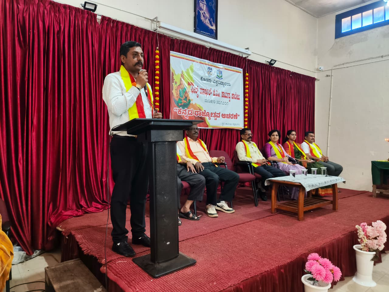 ಮಡಿಕೇರಿ ನ.1 NEWS DESK : ಯುವ ಜನಾಂಗ ನಮ್ಮ ನಾಡಿನ ಅಮೂಲ್ಯ ಆಸ್ತಿ. ಅವರಲ್ಲಿ ಭಾಷೆ, ಸಂಸ್ಕೃತಿಯ ಬಗ್ಗೆ ಗೌರವ ಬೆಳೆಯುವ ಹಾಗೆ ಮಾಡುವುದು ಪ್ರತಿಯೊಬ್ಬ ಪ್ರಜ್ಞಾವಂತ ಕನ್ನಡಿಗನ ಕರ್ತವ್ಯ ಎಂದು ಫೀಲ್ಡ್ ಮಾರ್ಷಲ್ ಕೆ.ಎಂ.ಕಾರ್ಯಪ್ಪ ಕಾಲೇಜಿನ ಪ್ರಾಂಶುಪಾಲರಾದ ಮೇಜರ್ ಪ್ರೊ. ಬಿ.ರಾಘವ ಹೇಳಿದರು. ಫೀಲ್ಡ್ ಮಾರ್ಷಲ್ ಕೆ.ಎಂ.ಕಾರ್ಯಪ್ಪ ಕಾಲೇಜಿನಲ್ಲಿ ನಡೆದ 70ನೇ ಕನ್ನಡ ರಾಜ್ಯೋತ್ಸವ ಕಾರ್ಯಕ್ರಮದಲ್ಲಿ ಧ್ವಜಾರೋಹಣ ನೇರವೇರಿಸಿ, ಕಾರ್ಯಕ್ರಮದ ಅಧ್ಯಕ್ಷತೆ ವಹಿಸಿ ಅವರು, ಮಾತನಾಡಿದರು. ನಮ್ಮ ನಾಡು ಎನ್ನುವ ಭಾವನೆ ಉಂಟು ಮಾಡಿದ ಮಹಾನ್ ವ್ಯಕ್ತಿಗಳಾದ ಕರ್ನಾಟಕ ಗತ ವೈಭವ ಕೃತಿಕಾರರಾದ ಆಲೂರು ವೆಂಕಟರಾಯರು, ಉದಯವಾಗಲಿ ನಮ್ಮ ಚೆಲುವ ಕನ್ನಡ ನಾಡು ಎಂದ ಹುಯಿಳಗೋಳ್ ನಾರಾಯಣರಾಯರು, ಬಿ.ಎಂ.ಶ್ರೀ, ಗೋವಿಂದ ಪೈ ಮುಂತಾದವರನ್ನು ಸ್ಮರಿಸುತ್ತ ಭಾಷಾವಾರು ರಾಜ್ಯಗಳ ವಿಂಗಡಣೆ, 2008ರಲ್ಲಿ ಕನ್ನಡ ಭಾಷೆಗೆ ಶಾಸ್ತ್ರೀಯ ಸ್ಥಾನಮಾನ ಲಭ್ಯವಾಯಿತು. ಕನ್ನಡ ಭಾಷೆಯ ಹಿರಿಮೆಯನ್ನು ಕುರಿತು 8 ಜ್ಞಾನಪೀಠ ಪ್ರಶಸ್ತಿ ಸಿಕ್ಕಿದೆ. ಇತ್ತೀಚಿಗೆ ಕನ್ನಡಕ್ಕೆ ಮೊದಲ ಬೂಕರ್ ಪ್ರಶಸ್ತಿಯನ್ನು ತಂದುಕೊಟ್ಟ ಬಾನು ಮುಸ್ತಾಕ್ ಅವರನ್ನು ಸ್ಮರಿಸಿದರು. ಕನ್ನಡದ ಕುರಿತು ಸಮ್ಮೇಳನ, ಕಮ್ಮಟ, ವಿಚಾರ ಸಂಕಿರಣಗಳ ಮೂಲಕ ಕನ್ನಡ ಭಾಷೆಯ ಕುರಿತು ಜಾಗೃತಿಯನ್ನು ಮೂಡಿಸೋಣ ಎಂದರು. ಮುಖ್ಯ ಭಾಷಣಕಾರರಾಗಿ ಆಗಮಿಸಿದ ಬೆಂಗಳೂರಿನ ಜೈನ್ ಡೀಮ್ಡ್ ಟು ಬಿ ವಿಶ್ವ ವಿದ್ಯಾಲಯದ ಡಾ. ಕೆ.ಬಿ.ಶೋಭಾ ಅವರು ಕನ್ನಡ ಭಾಷೆಯ ಪ್ರಾಚೀನತೆ ಕುರಿತು ಮಾತನಾಡಿ, ಶ್ರೀವಿಜಯನ ಕವಿರಾಜಮಾರ್ಗದ “ಕಾವೇರಿಯಿಂದಾಮ ಗೋದಾವರಿವರಮಿರ್ದ ನಾಡದ” ಎಂದು ಕನ್ನಡ ನಾಡಿನ ವಿಸ್ತಾರತೆಯ ಬಗ್ಗೆ ಮತ್ತು ಕರ್ನಾಟಕವನ್ನು ಕರುನಾಡು ಎಂದು ಕಪ್ಪು ಮಣ್ಣಿನ ನಾಡು ಎಂದು ಕರೆಯಲಾಗುತ್ತಿತ್ತು ಎಂದರು. ಕನ್ನಡ ಭಾಷೆಯ ಜ್ಞಾನ ಬಹಳ ಮುಖ್ಯ, ಅಜ್ಞಾನದಿಂದ ಹೊರಬರಬೇಕು ಹೇಳಿದರು. ಫೀಲ್ಡ್ ಮಾರ್ಷಲ್ ಕೆ.ಎಂ.ಕಾರ್ಯಪ್ಪ ಕಾಲೇಜಿನ ಹಳೇ ವಿದ್ಯಾರ್ಥಿ ಸಂಘದ ಅಧ್ಯಕ್ಷರಾದ ಬೊಳ್ಳಜಿರ ಬಿ.ಅಯ್ಯಪ್ಪ ಮಾತನಾಡಿ, ಕನ್ನಡವನ್ನು ಉಳಿಸಿ, ಬೆಳೆಸುವ ಜವಾಬ್ಧಾರಿ ಎಲ್ಲರ ಮೇಲಿದೆ ಎಂದರು. ಮತ್ತೋರ್ವ ಮುಖ್ಯ ಅತಿಥಿ ದಮಯಂತಿ ಪೊನ್ನಪ್ಪ ಮಾತನಾಡಿ, ಕನ್ನಡ ಭಾಷೆ ಚಂದದ ಭಾಷೆ. ಹೆಚ್ಚು ಹೆಚ್ಚು ಬಳಸಿ, ಬೆಳೆಸಬೇಕು ಎಂದು ಕರೆ ನೀಡಿದರು. ಉಪನ್ಯಾಸಕಾರ ಬಿ.ಹೆಚ್.ತಳವಾರ್ ಮಾತನಾಡಿ, ಕರ್ನಾಟಕ ಏಕೀಕರಣದ ಇತಿಹಾಸವನ್ನು ಮತ್ತು ಕನ್ನಡ ಭಾಷೆಯ ಮಹತ್ವವನ್ನು ತಿಳಿಸಿದರು. ಕಾರ್ಯಕ್ರಮದಲ್ಲಿ ಪ್ರೊ. ಈ.ತಿಪ್ಪೇಸ್ವಾಮಿ, ಡಾ. ರಾಜೇಂದ್ರ, ಡಾ. ಶೈಲಶ್ರೀ, ಡಾ.ರೇಣುಶ್ರೀ, ಪ್ರದೀಪ್ ಭಂಡಾರಿ, ಖುರ್ಶಿದ ಮುಂತಾದವರು ಉಪಸ್ಥಿತರಿದ್ದರು. ವಿದ್ಯಾರ್ಥಿಗಳಾದ ಸಪ್ನ, ಚೋಂದಮ್ಮ ಮತ್ತು ಲಿಖಿತ ಪ್ರಾರ್ಥನೆ ಮತ್ತು ಕನ್ನಡ ಗೀತೆಗಳನ್ನು ಹಾಡಿದರು. ಪ್ರೊ. ಶ್ರೀಧರ್ ಆರ್ ಹೆಗ್ಡೆ ಸ್ವಾಗತಿಸಿದರು, ಡಾ. ಮಹಾಲಕ್ಷ್ಮಿ ಅವರು ನಿರೂಪಣೆ ಮಾಡಿದರು. ಪ್ರೊ. ಕೃಷ್ಣ ಎಂ.ಪಿ. ವಂದಿಸಿದರು. ರಾಷ್ಟ್ರಗೀತೆ ಮತ್ತು ನಾಡಗೀತೆ ಯನ್ನು ಹಾಡಲಾಯಿತು. ಸಭಾ ಕಾರ್ಯಕ್ರಮದಲ್ಲಿ ದೀಪ ಬೆಳಗುವುದರ ಜೊತೆಗೆ ತಾಯಿ ಭುವನೇಶ್ವರಿಗೆ ಪುಷ್ಪಾರ್ಚನೆಯ ಮೂಲಕ ಕಾರ್ಯಕ್ರಮವನ್ನು ಉದ್ಘಾಟಿಸಲಾಯಿತು. ಕಾಲೇಜಿಗೆ ಅವಶ್ಯ ಸಲಕರಣೆಗಳನ್ನು ನೀಡಿದ ದಾನಿಗಳಾದ ದಮಯಂತಿ ಪೊನ್ನಪ್ಪ ಅವರನ್ನು ಇದೇ ಸಂದರ್ಭ ಸನ್ಮಾನಿಸಿ, ಗೌರವಿಸಲಾಯಿತು.