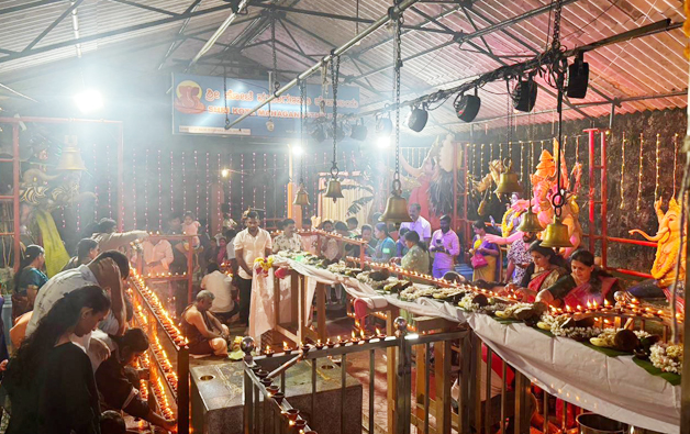 ಮಡಿಕೇರಿ ನ.6 NEWS DESK : ಶ್ರೀ ಕೋಟೆ ಮಹಾಗಣಪತಿ ದಸರಾ ಮಂಟಪ ಸಮಿತಿಯ 49ನೇ ವರ್ಷದ ದಸರಾ ಮಹೋತ್ಸವದ ಶೋಭಾಯಾತ್ರೆಯಲ್ಲಿದ್ದ ಮೂರ್ತಿಗಳ ಶಾಂತಿಪೂಜೆ ಶ್ರದ್ಧಾಭಕ್ತಿಯಿಂದ ನಡೆಯಿತು. ನಗರದ ಶ್ರೀ ಕೋಟೆ ಮಹಾಗಣಪತಿ ದೇವಾಲಯದ ಆವರಣದಲ್ಲಿ ಸಂಜೆ ಶಾಂತಿಪೂಜೆ, ರಂಗಪೂಜೆ ಮತ್ತು ದೀಪಾರಾಧನೆ ನೆರವೇರಿತು. ನಗರದ ವಿವಿಧೆಡೆಯಿಂದ ಭಕ್ತಾಧಿಗಳು ಹೆಚ್ಚಿನ ಸಂಖ್ಯೆಯಲ್ಲಿ ಪಾಲ್ಗೊಂಡು ಪೂಜೆ ಪ್ರಾರ್ಥನೆ ನೆರವೇರಿಸಿದರು. ಇದೇ ಸಂದರ್ಭ ದಶ ದೇವಾಲಯದ ಎಲ್ಲಾ ಅಧ್ಯಕ್ಷರುಗಳಿಗೆ ನೆನಪಿನ ಕಾಣಿಕೆ ನೀಡಿ ಗೌರವಿಸಲಾಯಿತು. ಶ್ರೀ ಕೋಟೆ ಮಹಾಗಣಪತಿ ದಸರಾ ಮಂಟಪ ಸಮಿತಿಯು ಮುಂದಿನ ವರ್ಷ 50ನೇ ವರ್ಷದ ದಸರಾ ಮಹೋತ್ಸವವನ್ನು ಆಚರಿಸಿಕೊಳ್ಳುತ್ತಿದ್ದು, ಸರ್ವರು ಸಹಕಾರ ನೀಡಬೇಕೆಂದು ಸಮಿತಿಯ ಅಧ್ಯಕ್ಷ ವಿಘ್ನೇಶ್ ಸಿ.ಯು ಮನವಿ ಮಾಡಿದರು.
