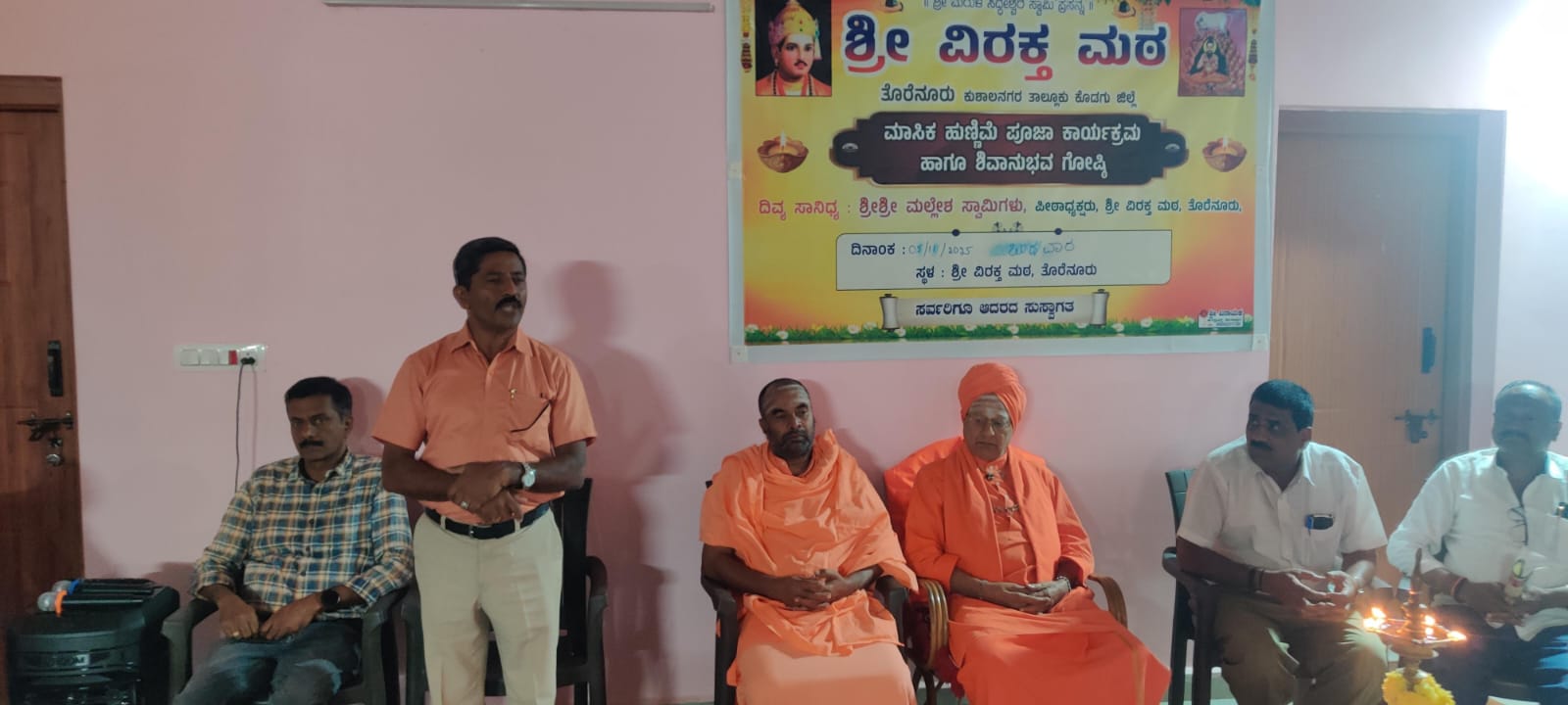ಕೊಡ್ಲಿಪೇಟೆ ಕಲ್ಮಠದ ಮಹಾಂತ ಸ್ವಾಮೀಜಿ ಹೇಳಿದರು. ಅಖಿಲ ಭಾರತ ವೀರಶೈವ- ಲಿಂಗಾಯತ ಮಹಾಸಭಾದ ಕೊಡಗು ಜಿಲ್ಲಾ ಘಟಕ ಹಾಗೂ ತೊರೆನೂರು ವಿರಕ್ತ ಮಠದ ವತಿಯಿಂದ ತೊರೆನೂರು ವಿರಕ್ತ ಮಠದಲ್ಲಿ ಬುಧವಾರ ಸಂಜೆ ನಡೆದ ಮಾಸಿಕ ಹುಣ್ಣಿಮೆ ಪೂಜಾ ಮಹೋತ್ಸವ ಹಾಗೂ ಶಿವಾನುಭವ ಗೋಷ್ಠಿಯಲ್ಲಿ 12ನೇ ಶತಮಾನದ ಶರಣರ ಸಾಮಾಜಿಕ ಮೌಲ್ಯಗಳು ಕುರಿತು ಉಪನ್ಯಾಸ ಕಾರ್ಯಕ್ರಮ ಉದ್ಘಾಟಿಸಿದ ಮಾತನಾಡಿದರು. ಪೋಷಕರು ತಮ್ಮ ಮಕ್ಕಳಿಗೆ ಶಿಕ್ಷಣದ ಜತೆಗೆ ಉತ್ತಮ ಸಂಸ್ಕಾರ ಕಲಿಸುವ ಮೂಲಕ ಅವರನ್ನು ಸಮಾಜದ ಉತ್ತಮ ನಾಗರಿಕರನ್ನಾಗಿ ರೂಪಿಸುವ ಜವಾಬ್ದಾರಿ ಇದೆ. ಇದರಲ್ಲಿ ತಾಯಂದಿರ ಪಾತ್ರ ಪ್ರಮುಖವಾಗಿದೆ ಎಂದರು. ಅಂದು ಶರಣರು ಪೂಜೆಗಿಂತಲೂ ಹೆಚ್ಚಿನ ಮಹತ್ವವನ್ನು ದುಡಿಮೆಗೆ ಕೊಟ್ಟಿದ್ದರು. ಕಾಯಕ ಅವರ ಪಂಚಪ್ರಾಣವಾಗಿತ್ತು. ಕಾಯಕ ಮಾಡದವನಿಗೆ ಪ್ರಸಾದ ತೆಗೆದುಕೊಳ್ಳುವ ಹಕ್ಕಿಲ್ಲವೆಂಬುದು ಅವರ ಸಿದ್ಧಾಂತವಾಗಿತ್ತು. ಆದ್ದರಿಂದ 12ನೇ ಶತಮಾನದಲ್ಲಿ ಕಾಯಕಯೋಗಿಗಳು ಇದ್ದರೆ ಹೊರತು ಸೋಮಾರಿಗಳೇ ಇರಲಿಲ್ಲ’ ಎಂದು ಸ್ವಾಮೀಜಿ ಅಭಿಪ್ರಾಯಪಟ್ಟರು. ಸಮಾಜಕ್ಕೆ ಶರಣರ ಮೌಲ್ಯಗಳು ಕುರಿತು ಉಪನ್ಯಾಸ ನೀಡಿದ ಕುಶಾಲನಗರ ಮೂಕಾಂಬಿಕಾ ಪ್ರೌಢಶಾಲಾ ಕನ್ನಡ ಭಾಷಾ ಶಿಕ್ಷಕ ಕೆ.ಎಂ.ಕಾಂತರಾಜು ಮಾತನಾಡಿ,