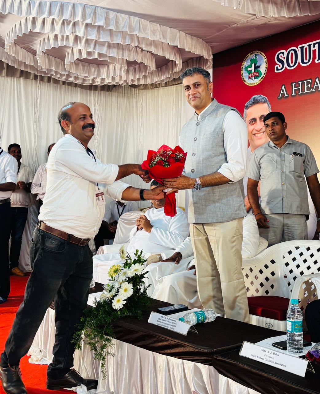 ಮಡಿಕೇರಿ ನ.10 NEWS DESK : ದಕ್ಷಿಣ ಕೊಡಗಿನ ಕ್ರಿಶ್ಚಿಯನ್ ಅಸೋಸಿಯೇಷನ್ ಆಯೋಜಿಸಿದ ಕಾರ್ಯಕ್ರಮದಲ್ಲಿ ಮುಖ್ಯಮಂತ್ರಿಗಳ ಕಾನೂನು ಸಲಹೆಗಾರರು ಹಾಗೂ ವಿರಾಜಪೇಟೆ ಕ್ಷೇತ್ರದ ಶಾಸಕ ಅಜ್ಜಿಕುಟ್ಟಿರ ಎಸ್ ಪೊನ್ನಣ್ಣ ಅವರು ಮುಖ್ಯ ಅತಿಥಿಗಳಾಗಿ ಪಾಲ್ಗೊಂಡಿದ್ದರು. ಗೋಣಿಕೊಪ್ಪದಲ್ಲಿರುವ ಪರಿಮಳ ಮಂಗಳ ವಿಹಾರ ಸಭಾಂಗಣದಲ್ಲಿ ನಡೆದ ಕಾರ್ಯಕ್ರಮದಲ್ಲಿ ಸಮಾಜದ ವಿವಿಧ ಕ್ಷೇತ್ರಗಳಲ್ಲಿ ಶಾಸಕರು ನೀಡಿದ ಅದ್ವಿತೀಯ ಕೊಡುಗೆಯನ್ನು ಸ್ಮರಿಸಿ ಅಸೋಸಿಯೇಷನ್ ನ ಪದಾಧಿಕಾರಿಗಳು ಶಾಸಕರನ್ನು ಸನ್ಮಾನಿಸಿ, ಗೌರವಿಸಿದರು. ಸನ್ಮಾನ ಸ್ವೀಕರಿಸಿ ಮಾತನಾಡಿದ ಶಾಸಕರು, ಬಹು ಹಿಂದಿನ ಕಾಲದಿಂದಲೂ ಕ್ರಿಶ್ಚಿಯನ್ ಸಮುದಾಯದವರು ಶೈಕ್ಷಣಿಕವಾಗಿ, ಸಾಮಾಜಿಕವಾಗಿ ಹಾಗೂ ಸಮಾಜದ ಎಲ್ಲಾ ಕ್ಷೇತ್ರಗಳಲ್ಲಿ ವಿಶಿಷ್ಟ ಕೊಡುಗೆಗಳನ್ನು ನೀಡುತ್ತಾ ಬಂದಿದ್ದಾರೆ. ಸದಾ ಶಾಂತಿ, ಸೌಹಾರ್ದತೆಯನ್ನು ಬಯಸುವ ಸಮುದಾಯವು ಮತ್ತಷ್ಟು ಏಳಿಗೆಯನ್ನು ಕಾಣುವಂತಾಗಬೇಕೆಂದು ಆಶಿಸಿದರು. ತನ್ನ ಅಧಿಕಾರ ಅವಧಿಯಲ್ಲಿ ಅಲ್ಪಸಂಖ್ಯಾತರ ಕಲ್ಯಾಣ ಇಲಾಖೆ ವತಿಯಿಂದ ಹಾಗೂ ತನ್ನ ವೈಯುಕ್ತಿಕ ನಿಧಿಯಿಂದ ಮಾತ್ರವಲ್ಲದೆ ಸರಕಾರದ ವಿಶೇಷ ಅನುದಾನಗಳ ಮೂಲಕ ಅಲ್ಪಸಂಖ್ಯಾತರಾದ ಕ್ರಿಶ್ಚಿಯನ್ ಸಮುದಾಯದ ಹಲವಾರು ಅಭಿವೃದ್ಧಿ ಕಾಮಗಾರಿಗಳಿಗೆ ಈಗಾಗಲೇ ಕೋಟ್ಯಾಂತರ ರೂಪಾಯಿಯನ್ನು ನೀಡಿದ್ದೇನೆ. ಮಾತ್ರವಲ್ಲದೆ ಇನ್ನು ಮುಂದೆಯೂ ಸಹ ಸಮುದಾಯದ ಉನ್ನತಿಗಾಗಿ ಯಾವುದೇ ರೀತಿಯ ಸಹಾಯ ಬಯಸಿದರೆ ಖಂಡಿತ ತನ್ನನ್ನು ಸಂಪರ್ಕಿಸಬೇಕಾಗಿ ಶಾಸಕರು ಇದೇ ಸಂದರ್ಭದಲ್ಲಿ ಹೇಳಿದರು. ಶಾಸಕರೊಂದಿಗೆ ಇನ್ನಿತರ ಗಣ್ಯರಿಗೂ ಇದೇ ಸಂದರ್ಭದಲ್ಲಿ ಸನ್ಮಾನಿಸಿ ಗೌರವಿಸಲಾಯಿತು. ಈ ಸಂದರ್ಭದಲ್ಲಿ ಜಿಲ್ಲಾ ಗ್ಯಾರಂಟಿ ಅನುಷ್ಠಾನ ಸಮಿತಿಯ ಅಧ್ಯಕ್ಷರಾದ ತಿತೀರ ಧರ್ಮಜ ಉತ್ತಪ್ಪ, ದಕ್ಷಿಣ ಕೊಡಗು ಕ್ರಿಶ್ಚಿಯನ್ ಅಸೋಸಿಯೇಷನ್ ಅಧ್ಯಕ್ಷರಾದ ಎ.ಜೆ.ಬಾಬು, ಧರ್ಮ ಗುರುಗಳು, ಕನ್ಯಾ ಶ್ರೀ ಹಾಗೂ ವೇದಿಕೆ ಮೇಲೆ ಉಪಸ್ಥಿತರಿರುವ ಎಲ್ಲಾ ಗಣ್ಯರು ಹಾಗೂ ಸಮುದಾಯ ಬಾಂಧವರು ಹಾಗೂ ಪ್ರಮುಖರು ಉಪಸ್ಥಿತರಿದ್ದರು.