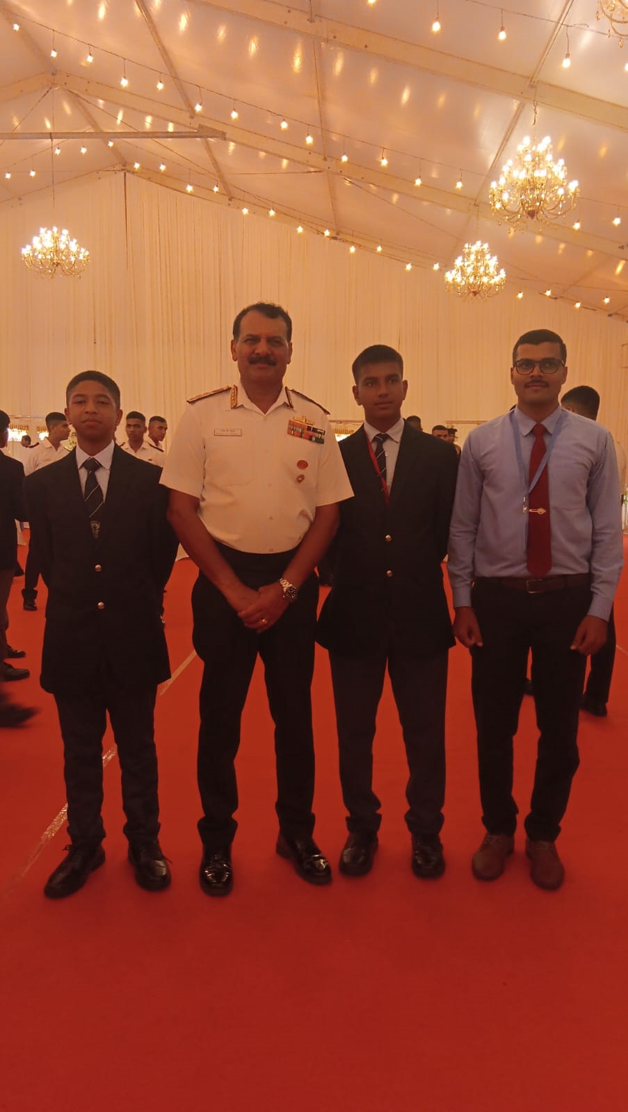 ಸ್ಪರ್ಧೆಯಲ್ಲಿ ವಿದ್ಯಾರ್ಥಿಗಳಿಗೆ ಭಾರತೀಯ ನೌಕಾ ಅಕಾಡೆಮಿಯ ಕಮಾಂಡಂಟ್ ವೈಸ್ ಅಡ್ಮಿರಲ್ ಮನೀಷ್ ಚಡ್ಡಾ, ಎ ವಿ ಎಸ್ ಎಂ, ವಿ ಎಸ್ ಎಂ ಅವರಿಂದ ಗೌರವ ಹಾಗೂ ಬಹುಮಾನ ನೀಡಲಾಯಿತು. ಈ ಯುವ ಸಾಧಕರು ಭಾರತೀಯ ನೌಕಾಪಡೆಯ ಮುಖ್ಯಸ್ಥ ಅಡ್ಮಿರಲ್ ದಿನೇಶ್ ಕೆ.ತ್ರಿಪಾಠಿ, ಪಿ ವಿ ಎಸ್ ಎಂ, ಎ ವಿ ಎಸ್ ಎಂ, ಎನ್ ಎಂ ಅವರನ್ನು ಭೇಟಿ ಮಾಡಿ ಮಾತುಕತೆ ನಡೆಸುವ ಅಪರೂಪದ ಅವಕಾಶವನ್ನು ಪಡೆದರು. ಇದೇ ಸಂದರ್ಭ ಸೈನಿಕ ಶಾಲೆಯ ಇಬ್ಬರು ವಿದ್ಯಾರ್ಥಿಗಳ ಕುತೂಹಲ ಮತ್ತು ಆತ್ಮವಿಶ್ವಾಸವನ್ನು ದಿನೇಶ್ ಕೆ.ತ್ರಿಪಾಠಿ ಪ್ರಶಂಸಿಸಿದರು. ವಿದ್ಯಾರ್ಥಿಗಳ ಯಶಸ್ಸಿಗೆ ಶಾಲೆಯ ವಿಜ್ಞಾನ ಶಿಕ್ಷಕರಾದ ದಾದಾ ಧರೆಪ್ಪ ಕುಸನಾಳೆ ಮಾರ್ಗದರ್ಶನ ಮತ್ತು ಪ್ರೇರಣೆ ನೀಡಿದರು. ಈ ಕುರಿತು ಮಾತನಾಡಿದ ಶಾಲೆಯ ಪ್ರಾಂಶುಪಾಲರಾದ ಕರ್ನಲ್ ಅಮರ್ ಜೀತ್ ಸಿಂಗ್, ಇದು ಕೊಡಗು ಸೈನಿಕ ಶಾಲೆಯ ಕುಟುಂಬದ ಎಲ್ಲರಿಗೂ ಹೆಮ್ಮೆಯ ಕ್ಷಣವಾಗಿದ್ದು, ರಾಷ್ಟ್ರೀಯ ಮಟ್ಟದಲ್ಲಿ ನಮ್ಮ ವಿದ್ಯಾರ್ಥಿಗಳ ಈ ಸಾಧನೆ ಅವರ ಶಿಸ್ತಿನ, ತ್ಯಾಗದ ಹಾಗೂ ಶಾಲೆಯ ಸಮಗ್ರ ಅಭಿವೃದ್ಧಿಯ ಪ್ರತಿಬಿಂಬವಾಗಿದೆ” ಎಂದು ತಮ್ಮ ಹರ್ಷ ವ್ಯಕ್ತಪಡಿಸಿದರು. ಶಾಲೆಯು ಮುಂದಿನ ದಿನಗಳಲ್ಲಿ ತಮ್ಮ ವಿದ್ಯಾರ್ಥಿಗಳಲ್ಲಿ ಧೈರ್ಯ, ಕುತೂಹಲ ಮತ್ತು ನಿಷ್ಠೆಯ ಮೌಲ್ಯಗಳನ್ನು ಬೆಳೆಸಿ, ಅವರಲ್ಲಿ ಉನ್ನತ ಸ್ಥಾನವನ್ನು ಕಲ್ಪಿಸುವ ಉದ್ದೇಶವನ್ನು ಜೀವಂತವಾಗಿಡುತ್ತಿದೆ ಎಂದರು. ಇದರೊಂದಿಗೆ ವಿದ್ಯಾರ್ಥಿಗಳನ್ನು ಹಾಗೂ ಸಿಬ್ಬಂದಿವರ್ಗದವರನ್ನು ಅಭಿನಂದಿಸಿದರು.