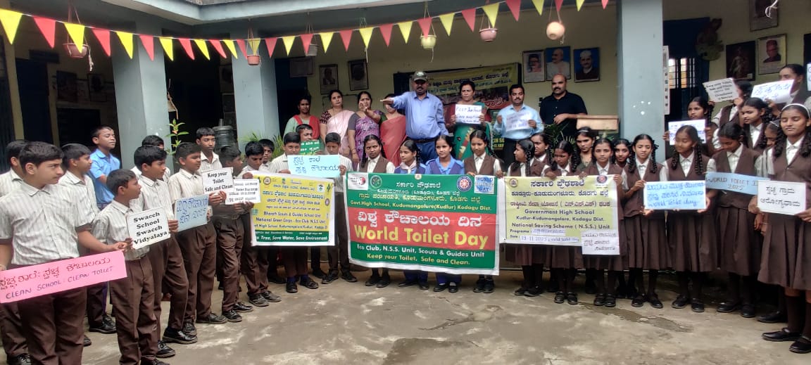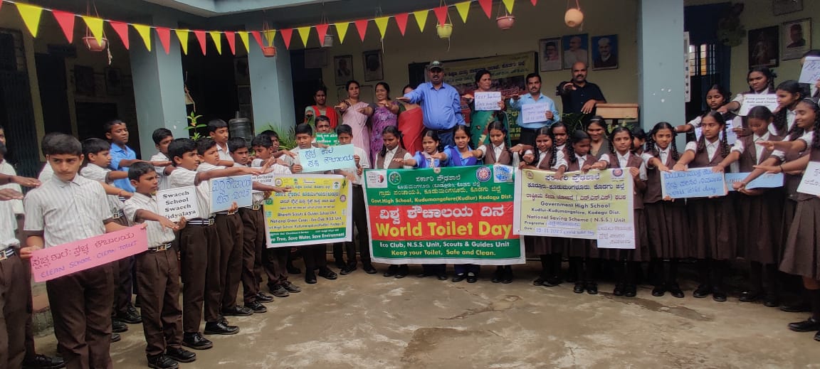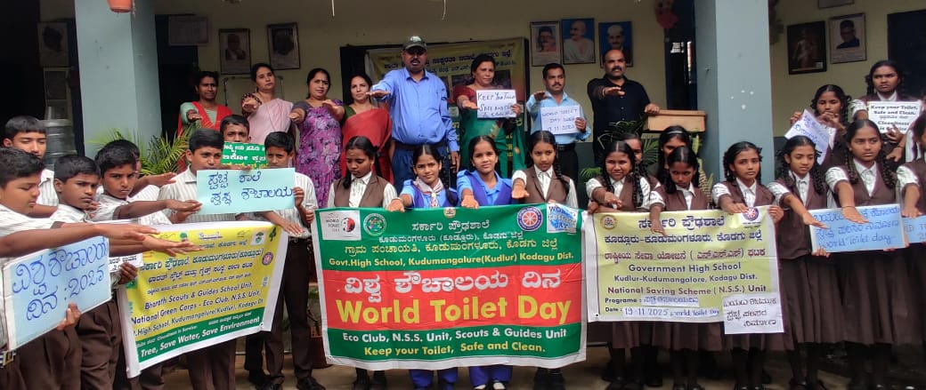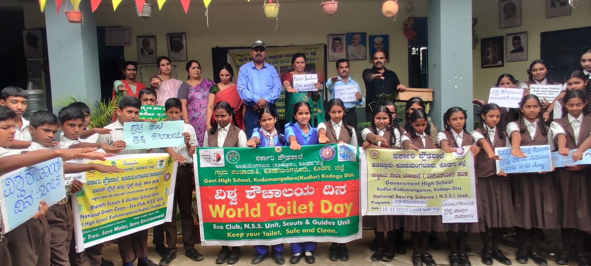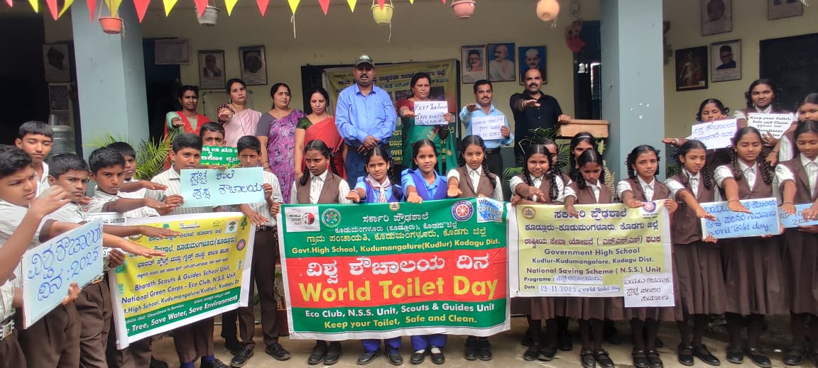 ಕುಶಾಲನಗರ ನ.19 NEWS DESK : ಕೊಡಗು ಜಿಲ್ಲಾ ಪಂಚಾಯ್ತಿ, ಜಿಲ್ಲಾ ಶಾಲಾ ಶಿಕ್ಷಣ ಇಲಾಖೆ ಹಾಗೂ ರಾಷ್ಟ್ರೀಯ ಸ್ವಚ್ಛ್ ಭಾರತ್ ಮಿಷನ್ ವತಿಯಿಂದ ಕುಶಾಲನಗರ ತಾಲ್ಲೂಕಿನ ಕೂಡುಮಂಗಳೂರು ಗ್ರಾಮ ಪಂಚಾಯತಿ ಸಹಯೋಗದೊಂದಿಗೆ ಕೂಡುಮಂಗಳೂರು(ಕೂಡ್ಲೂರು) ಸರ್ಕಾರಿ ಪ್ರೌಢಶಾಲೆಯಲ್ಲಿ ಶಾಲೆಯ ಇಕೋ ಕ್ಲಬ್ ಹಾಗೂ ರಾಷ್ಟ್ರೀಯ ಸೇವಾ ಯೋಜನೆ (ಎನ್.ಎಸ್.ಎಸ್.) ಕರ್ನಾಟಕ ರಾಜ್ಯ ವಿಜ್ಞಾನ ಪರಿಷತ್ತು ಘಟಕ, ಭಾರತ್ ಸ್ಕೌಟ್ಸ್ ಮತ್ತು ಗೈಡ್ಸ್ ಘಟಕ, ಎಸ್ ಡಿ ಎಂ ಸಿ ಹಾಗೂ ವಿದ್ಯಾರ್ಥಿ ಸಂಘದ ಆಶ್ರಯದಲ್ಲಿ ಪ್ರೌಢಶಾಲೆಯಲ್ಲಿ ಸ್ವಚ್ಛ ಭಾರತ್ ಅಭಿಯಾನ ಹಾಗೂ ‘ ಗೋ ಗ್ರೀನ್ ಅಭಿಯಾನ’ದಡಿ ಎಲ್ಲರಿಗೂ ಆರೋಗ್ಯ ಮತ್ತು ನೈರ್ಮಲ್ಯ ಎಂಬ ಧ್ಯೇಯದೊಂದಿಗೆ ” ವಿಶ್ವ ಶೌಚಾಲಯ ದಿನ”-2025 ದ ಅಂಗವಾಗಿ ಶೌಚಗೃಹ ಬಳಕೆ ಕುರಿತು ಜನಜಾಗೃತಿ ನಡೆಸಲಾಯಿತು. “ವಿಶ್ವ ಶೌಚಾಲಯ ದಿನ*ದ ಮಹತ್ವ ಹಾಗೂ ಶೌಚಾಲಯ ಸ್ವಚ್ಛತೆ ಕುರಿತು ಕುರಿತು ಮಾಹಿತಿ ನೀಡಿದ ಶಾಲಾ ಮುಖ್ಯೋಪಾಧ್ಯಾಯರೂ ಆದ ಜಿಲ್ಲಾ ಪರಿಸರ ಜಾಗೃತಿ ಆಂದೋಲನದ ಜಿಲ್ಲಾ ಸಂಚಾಲಕ ಟಿ.ಜಿ.ಪ್ರೇಮಕುಮಾರ್, ಶೌಚಾಲಯಗಳು ಸಾರ್ವಜನಿಕ ಆರೋಗ್ಯದ ಅಡಿಪಾಯವಾಗಿದ್ದು, ಆರೋಗ್ಯ, ನೈರ್ಮಲ್ಯ ಹಾಗೂ ಸ್ವಚ್ಚತೆ ಕಾಪಾಡುವುದರೊಂದಿಗೆ ಪರಿಸರವನ್ನು ರಕ್ಷಿಸುವಲ್ಲಿ ನಿರ್ಣಾಯಕ ಪಾತ್ರವನ್ನು ವಹಿಸುತ್ತವೆ ಎಂದರು. ಸ್ವಚ್ಛ ಶೌಚಾಲಯ, ಸ್ವಚ್ಚ ಪರಿಸರ ಸಂಕಲ್ಪದ ಗುರಿ ಕುರಿತು ಮಾಹಿತಿ ನೀಡಿದ ಟಿ.ಜಿ.ಪ್ರೇಮಕುಮಾರ್ ಸ್ವಚ್ಛ ಶೌಚಾಲಯ ನಿರ್ವಹಣೆ ಕುರಿತು ಸ್ವತಃ ತಾವೇ ಶೌಚಾಲಯವನ್ನು ಸ್ವಚ್ಛಗೊಳಿಸುವ ಮೂಲಕ ವಿದ್ಯಾರ್ಥಿಗಳಿಗೆ ಸ್ವಚ್ಚತೆ, ನೀರಿನ ಬಳಕೆ ಮತ್ತು ನೈರ್ಮಲ್ಯದ ಕುರಿತು ವಿದ್ಯಾರ್ಥಿಗಳಿಗೆ ಅರಿವು ಮೂಡಿಸಿದರು. ಜನ ಸಮುದಾಯಕ್ಕೆ ನೈರ್ಮಲ್ಯದ ಮಹತ್ವ ಹಾಗೂ ಶುಚಿತ್ವದ ಬಗ್ಗೆ ಜಾಗೃತಿ ಮೂಡಿಸುವ ಸಲುವಾಗಿ ಪ್ರತಿವರ್ಷ ನವೆಂಬರ್ 19 ರಂದು ವಿಶ್ವ ಶೌಚಾಲಯ ದಿನವನ್ನು ಆಚರಣೆ ಮಾಡಲಾಗುತ್ತದೆ ಎಂದರು. ಸ್ವಚ್ಛ ಶೌಚಾಲಯಗಳು ನಾಗರಿಕತೆಯ ಸಂಕೇತಗಳಾಗಿವೆ. ಸರಿಯಾದ ನೈರ್ಮಲ್ಯ ಅಭ್ಯಾಸಗಳನ್ನು ಉತ್ತೇಜಿಸಲು ಎಲ್ಲರಿಗೂ ಶೌಚಾಲಯ ಪ್ರವೇಶಗಳನ್ನು ಖಚಿತಪಡಿಸಿಕೊಳ್ಳಲು ನಾವು ಬದ್ಧರಾಗೋಣ ಎಂದು ಮುಖ್ಯ ಶಿಕ್ಷಕ ಟಿ.ಜಿ.ಪ್ರೇಮಕುಮಾರ್ ಪ್ರತಿಜ್ಞಾ ವಿಧಿ ಬೋಧಿಸಿದರು. ಶೌಚಾಲಯ ಸ್ವಚ್ಛಗೊಳಿಸುವ ಸಂಕಲ್ಪ ಎಲ್ಲರ ಜವಾಬ್ದಾರಿಯಾಗಿದೆ. ನಾವು ಪ್ರತಿನಿತ್ಯ ಬಳಸುವ ಶೌಚಾಲಯವನ್ನು ಸ್ವತಃ ನಾವೇ ಸ್ವಚ್ಚಗೊಳಿಸುವ ಮೂಲಕ ಮತ್ತೊಬ್ಬರು ಅದೇ ಶೌಚಾಲಯವನ್ನು ಬಳಸುವ ರೀತಿಯಲ್ಲಿ ಸ್ವಚ್ಛಗೊಳಿಸುವುದು ನಮ್ಮ ಹೊಣೆಯಾಗಿದೆ ಎಂದು ಪ್ರೇಮಕುಮಾರ್ ಹೇಳಿದರು. ಶೌಚಾಲಯದ ಸ್ವಚ್ಛತೆ ಕುರಿತು