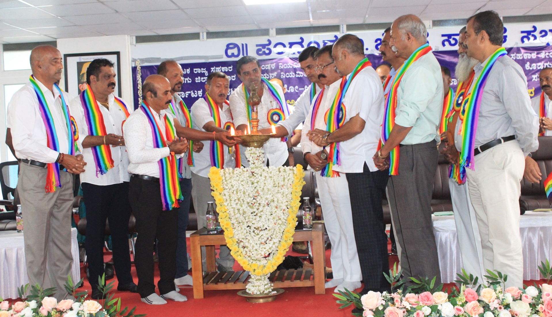 ಕಾರ್ಯಕ್ರಮದಲ್ಲಿ ಕೊಡಗು ಜಿಲ್ಲಾ ಸಹಕಾರ ಕೇಂದ್ರ ಬ್ಯಾಂಕ್ನ ಉಪಾಧ್ಯಕ್ಷ ಕೆ.ಎಸ್.ಹರೀಶ್ ಪೂವಯ್ಯ, ಸಹಕಾರ ಯೂನಿಯನ್ನ ನಿರ್ದೇಶಕರಾದ ಎ.ಕೆ.ಮನು ಮುತ್ತಪ್ಪ, ಕೆ.ಎಂ.ತಮ್ಮಯ್ಯ, ವಿ.ಕೆ.ಅಜಯ್ ಕುಮಾರ್, ಎ.ಎಸ್.ಶ್ಯಾಂಚಂದ್ರ, ಕೆ.ಟಿ.ಪರಮೇಶ್, ಬಲ್ಲಾರಂಡ ಮಣಿ ಉತ್ತಪ್ಪ, ವಿ.ಸಿ.ಅಮೃತ್, ಎಸ್.ಆರ್.ಸುನಿಲ್ ರಾವ್, ಎ.ಸಿ.ಕುಶಾಲಪ್ಪ, ಎಂ.ಟಿ.ಸುಬ್ಬಯ್ಯ, ಎ.ಎಂ.ಮುತ್ತಪ್ಪ, ಪಿ.ಎನ್.ಚಂದ್ರಪ್ರಕಾಶ್, ಹೆಚ್.ಎಂ.ರಮೇಶ್, ಕೊಡಗು ಜಿಲ್ಲಾ ಸಹಕಾರ ಕೇಂದ್ರ ಬ್ಯಾಂಕ್ನ ನಿರ್ದೇಶಕ ಹೆಚ್.ಜೆ.ಸತೀಶ್ ಕುಮಾರ್, ಕೆ.ಎನ್.ಸತೀಶ್, ಕುಂಞಂಗಡ ಅರುಣ್ ಭೀಮಯ್ಯ, ಪೂಳಂಡ ಪಿ.ಪೆಮ್ಮಯ್ಯ, ಗುಮ್ಮಟ್ಟಿರ ಎಸ್.ಕಿಲನ್ ಗಣಪತಿ, ಎಸ್.ಸಿ.ಶರತ್ ಶೇಖರ್, ನಾಪಂಡ ಉಮೇಶ್ ಉತ್ತಪ್ಪ, ಪಟ್ರಪಂಡ ರಘು ನಾಣಯ್ಯ, ವೃತ್ತಿಪರ ನಿರ್ದೇಶಕ ಎಂ.ಸಿ.ನಾಣಯ್ಯ, ಸಹಕಾರ ಸಂಘಗಳ ಉಪನಿಬಂಧಕ ಹೆಚ್.ಡಿ.ರವಿಕುಮಾರ್, ಸಹಕಾರ ಸಂಘಗಳ ಲೆಕ್ಕಪರಿಶೋಧನಾ ಇಲಾಖೆ ಉಪನಿರ್ದೇಶಕ ಎಂ.ಎನ್.ಹೇಮಾವತಿ, ಸಹಕಾರ ಸಂಘಗಳ ಲೆಕ್ಕಪರಿಶೋಧನಾ ಇಲಾಖೆ ಉಪನಿರ್ದೇಶಕರಾದ ಎಂ.ಎನ್.ಹೇಮಾವತಿ, ಸಹಾಯಕ ನಿಬಂಧಕರಾದ ಶೈಲಜಾ ಹಾಜರಿದ್ದರು. ಕೊಡಗು ಜಿಲ್ಲಾ ಸಹಕಾರ ಯೂನಿಯನ್ನ ಉಪಾಧ್ಯಕ್ಷ ಹೆಚ್.ಕೆ.ಮಾದಪ್ಪ ಸ್ವಾಗತಿಸಿದರು. ಕೊಡಗು ಜಿಲ್ಲಾ ಸಹಕಾರ ಯೂನಿಯನ್ ಮುಖ್ಯ ಕಾರ್ಯನಿರ್ವಹಣಾಧಿಕಾರಿ ಯೋಗೇಂದ್ರ ನಾಯಕ್ ನಿರೂಪಿಸಿದರು, ಯೂನಿಯನ್ ನಿಬ್ಬಂದಿ ಮಂಜುಳಾ ಸನ್ಮಾನಿತರ ಪರಿಚಯ ಮಾಡಿದರು. ಸನ್ಮಾನ :: ಕಾರ್ಯಕ್ರಮದಲ್ಲಿ ಹಿರಿಯ ಸಹಕಾರಿಗಳಾದ ಚಿರಿಯಪಂಡ ಕೆ.ಉತ್ತಪ್ಪ ಅವರಿಗೆ ಕೊಡಗು ಸಹಕಾರ ರತ್ನ, ಹೆಚ್.ಎಸ್.ಮುದ್ದಪ್ಪ, ತಳೂರು ಎ.ಕಿಶೋರ್ಕುಮಾರ್ ಶ್ರೇಷ್ಠ ಸಹಕಾರಿ, ದೇವಾಂಬಿಕ ಮಹೇಶ್ ಶ್ರೇಷ್ಠ ಮಹಿಳಾ ಸಹಕಾರಿ ಮತ್ತು ನಿವೃತ್ತ ಸಹಕಾರಿ ಸಿಬ್ಬಂದಿ ಆಲೆಮಾಡ ಎಸ್.ಕಾವೇರಮ್ಮ ಅವರಿಗೆ ಉತ್ತಮ ಸಹಕಾರಿ ಸಿಬ್ಬಂದಿ ಪ್ರಶಸ್ತಿ ನೀಡಿ ಗೌರವಿಸಲಾಯಿತು. ಪುಷ್ಪ ನಮನ :: ಕಾರ್ಯಕ್ರಮಕ್ಕೂ ಮುನ್ನ ಭಾರತದ ಸಹಕಾರ ಆಂದೋಲನದ ಮೂಲ ಪುರುಷ ಶಿದ್ದನಗೌಡ ಸಂಣರಾಮನ ಗೌಡ ಪಾಟೀಲ ಹಾಗೂ ಕೊಡಗಿನ ಪ್ರಥಮ ಸಹಕಾರಿ ಕುರಾದ ಗೌಡ್ನ ಮನೆ ಪಿ.ದೊಡ್ಡಯ್ಯ ಅವರ ಭಾವಚಿತ್ರಕ್ಕೆ ಗಣ್ಯರು ಪುಷ್ಪ ನಮನ ಸಲ್ಲಿಸಿದರು.