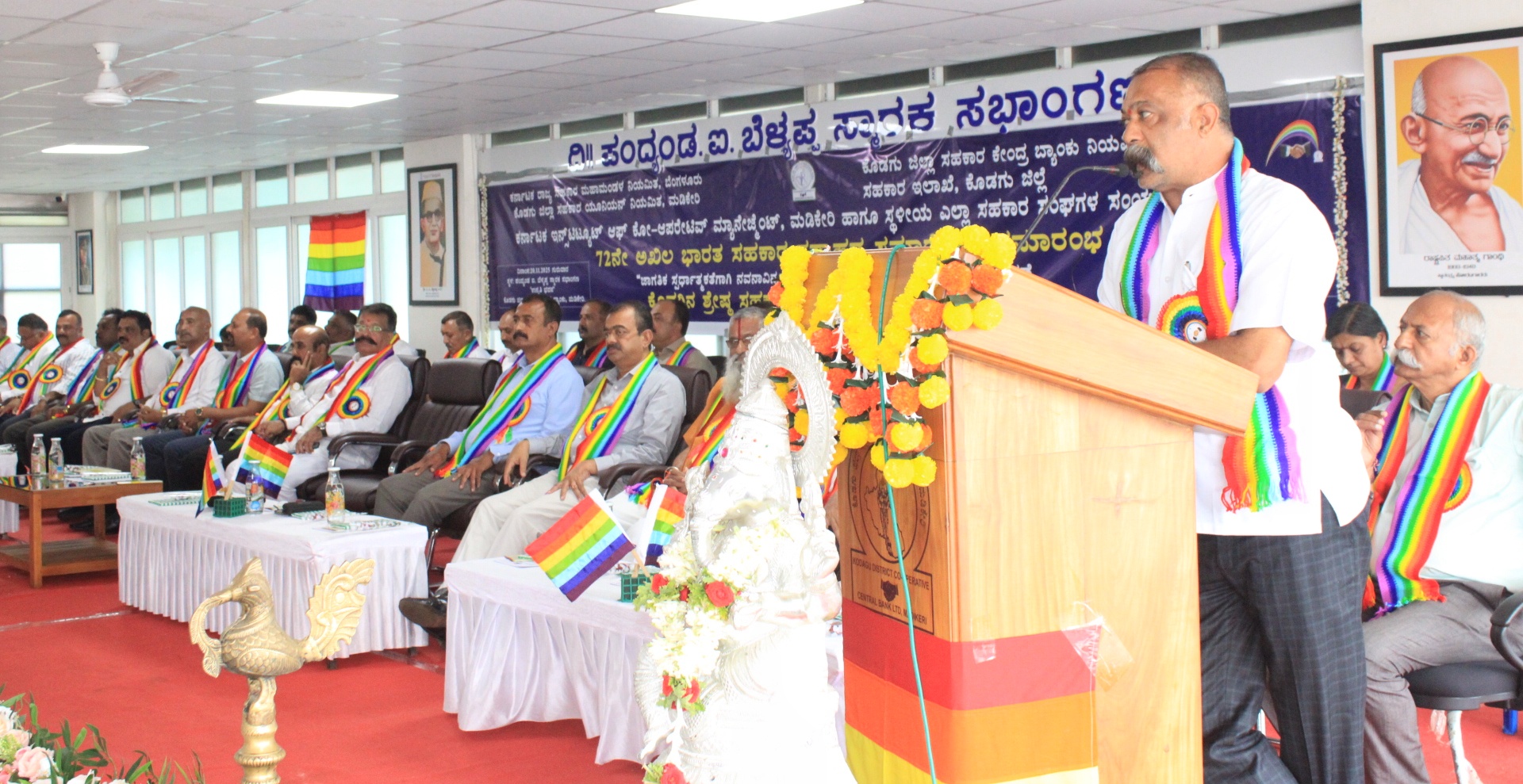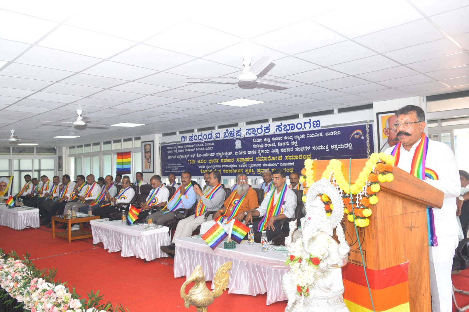 ಕರ್ನಾಟಕ ರಾಜ್ಯ ಸಹಕಾರ ಮಹಾಮಂಡಳ ನಿಯಮಿತ, ಕೊಡಗು ಜಿಲ್ಲಾ ಸಹಕಾರ ಯೂನಿಯನ್, ಕೊಡಗು ಜಿಲ್ಲಾ ಸಹಕಾರ ಕೇಂದ್ರ ಬ್ಯಾಂಕ್, ಸಹಕಾರ ಇಲಾಖೆ, ಕರ್ನಾಟಕ ಇನ್ಸ್ಟಿಟ್ಯೂಟ್ ಆಫ್ ಕೋ-ಆಪರೇಟಿವ್ ಮ್ಯಾನೇಜ್ಮೆಂಟ್ ಹಾಗೂ ಸ್ಥಳೀಯ ಎಲ್ಲಾ ಸಹಕಾರ ಸಂಘಗಳ ಸಂಯುಕ್ತ ಆಶ್ರಯದಲ್ಲಿ ನಗರದ ಕೊಡಗು ಜಿಲ್ಲಾ ಸಹಕಾರ ಕೇಂದ್ರ ಬ್ಯಾಂಕ್ನ ಉನ್ನತಿ ಭವನದ ಪಂದ್ಯಂಡ ಐ.ಬೆಳ್ಯಪ್ಪ ಸ್ಮಾರಕ ಸಭಾಂಗಣದಲ್ಲಿ ನಡೆದ 72ನೇ ಅಖಿಲ ಭಾರತ ಸಹಕಾರ ಸಪ್ತಾಹದ ಸಮಾರೋಪ ಹಾಗೂ ಕೊಡಗು ಜಿಲ್ಲಾ ಸಹಕಾರ ಯೂನಿಯನ್ನಿಂದ ಆಯ್ಕೆಗೊಂಡ ಕೊಡಗಿನ ಶ್ರೇಷ್ಠ ಸಹಕಾರಿಗಳಿಗೆ ಪ್ರಶಸ್ತಿ ಪ್ರದಾನ ಮಾಡಿ ಅವರು, ಮಾತನಾಡಿದರು. ಸಹಕಾರ ಎಂದರೆ ಸಮೂಹಿಕ ನಂಬಿಕೆ, ಶ್ರಮ, ನ್ಯಾಯದ ಹಂಚಿಕೆ. ಸಹಕಾರ ಚಳುವಳಿ ದೇಶದ ಆರ್ಥಿಕತೆಗೆ ಮಹತ್ವದ ಪಾತ್ರ ವಹಿಸಿದೆ. ಇದು ದೇಶದ ಆರ್ಥಿಕತೆಗೆ ರೈತರಿಗೆ ಸಾಲ, ಸಣ್ಣ ಕೈಗಾರಿಕೆಗಳಿಗೆ ಬೆಂಬಲ ಮತ್ತು ಕೈಗೆಟುಕುವ ದರದಲ್ಲಿ ವಸತಿ ಒದಗಿಸುವ ಮೂಲಕ ಗಣನೀಯ ಕೊಡುಗೆ ನೀಡಿದೆ. ಆರ್ಥಿಕ ಬೆಳವಣಿಗೆಯಲ್ಲದೆ, ಸಾಮಾಜಿಕ ನ್ಯಾಯ, ಸಬಲೀಕರಣ ಮತ್ತು ಸ್ವಾವಲಂಬನೆಯನ್ನು ಉತ್ತೇಜಿಸುತ್ತದೆ ಮತ್ತು ಕೃಷಿ, ಡೈರಿ, ಮತ್ತು ಹಣಕಾಸು ಕ್ಷೇತ್ರಗಳನ್ನು ಬಲಪಡಿಸುವ ಮೂಲಕ ಆರ್ಥಿಕತೆಯನ್ನು ಬೆಂಬಲಿಸಿದೆ. ದೇಶದ ಕಡು ಬಡವರಿಗೆ, ಕೃಷಿಕರಿಗೆ ಸಹಕಾರಿ ಬ್ಯಾಂಕ್ಗಳಲ್ಲಿ ಯಾವುದೇ ಅಡೆತಡೆಗಳಿಲ್ಲದೆ ನೇರವಾಗಿ ಸುಲಭವಾಗಿ ಸೌಲಭ್ಯಗಳನ್ನು ಒದಗಿಸುತ್ತಿದೆ ಎಂದರು. ಸಹಕಾರಿ ಕ್ಷೇತ್ರ ಉತ್ತಮ ಸ್ಥಿತಿಗೆ ಬರಬೇಕಾದರೆ ಅಧ್ಯಕ್ಷರು, ಅಧಿಕಾರಿಗಳು, ಹಾಗೂ ಸಿಬ್ಬಂದಿಗಳ ಪ್ರಮಾಣಿಕ ಕಾರ್ಯ ಮುಖ್ಯ. ಹಲವು ಗಣ್ಯರು ಸಹಕಾರಿ ಕ್ಷೇತ್ರದ ಅಭಿವೃದ್ಧಿಗೆ ದುಡಿದಿದ್ದು, ಹಿರಿಯರ ಕೆಲಸವನ್ನು ಗುರುತಿಸಿ, ಗೌರವಿಸಿದರೆ ಮುಂದಿನ ಪೀಳಿಗೆಗೆ ಪ್ರೇರಣೆಯಾಗುತ್ತದೆ. ಮುಂದಿನ ದಿನಗಳಲ್ಲಿಯೂ ಸಹಕಾರಿ ಕ್ಷೇತ್ರ ಮತ್ತಷ್ಟು ಅಭಿವೃದ್ಧಿ ಹೊಂದುವ ಮೂಲಕ ದೇಶಕ್ಕೆ ಮಾದರಿಯಾಗಲಿ ಎಂದು ಹಾರೈಸಿದರು. ಕಾರ್ಯಕ್ರಮವನ್ನು ಉದ್ಘಾಟಿಸಿ ಮಾತನಾಡಿದ ಕೊಡಗು ಜಿಲ್ಲಾ ಸಹಕಾರ ಕೇಂದ್ರ ಬ್ಯಾಂಕ್ ಅಧ್ಯಕ್ಷ ಕೊಡಂದೇರ ಪಿ.ಗಣಪತಿ, 27ನೇ ಸಹಕಾರ ಸಪ್ತಾಹವನ್ನು ಭಾರತದಲ್ಲಿ ರಾಷ್ಟ್ರೀಯ ಹಬ್ಬದಂತೆ ಆಚರಣೆ ಮಾಡಲಾಗುತ್ತಿದೆ ಎಂದರು.