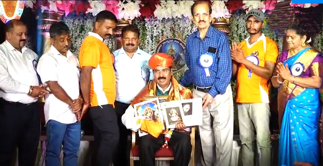 ನಗರದ ರಾಘವೇಂದ್ರ ದೇವಾಲಯದ ಬಳಿಯ ಕಲಾನಗರ ಸಾಂಸ್ಕøತಿಕ ಕಲಾ ವೇದಿಕೆಯಲ್ಲಿ ನಡೆದ ಕಾರ್ಯಕ್ರಮದಲ್ಲಿ ಡಾ. ಸೂರ್ಯ ಕುಮಾರ್, ಕಲಾನಗರ ಸಾಂಸ್ಕೃತಿಕ ವೇದಿಕೆಯ ಅಧ್ಯಕ್ಷ ಮಹೇಶ್ ಹಾಗೂ ಇತರ ಗಣ್ಯರು ಬಿ.ಕೆ.ಗಣೇಶ್ ರೈ ಅವರಿಗೆ ಹುಟ್ಟೂರ ಸನ್ಮಾನ ಮಾಡಿ, ಚಿತ್ರಶಿಲ್ಪ ತಪಸ್ವಿ ಬಿರುದು ಪ್ರದಾನಿಸಿ ಐವತ್ತು ವರ್ಷಗಳ ಹೆಜ್ಜೆಗುರುತುಗಳನ್ನು ದಾಖಲಿಸಿ “ಕಲಾ ದರ್ಪಣ” ಅಭಿನಂದನಾ ಗ್ರಂಥವನ್ನು ಪ್ರದಾನ ಮಾಡಿದರು.