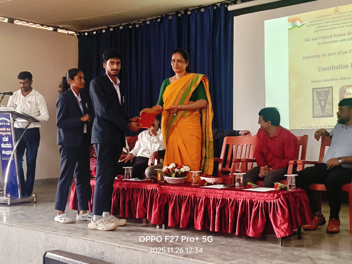 ವಿರಾಜಪೇಟೆ ನ.27 NEWS DESK : ಸರಕಾರಿ ಪ್ರಥಮ ದರ್ಜೆ ಕಾಲೇಜಿನ ಐ.ಕ್ಯೂ.ಎ.ಸಿ.ಘಟಕ, ಎನ್.ಎಸ್.ಎಸ್ ಮತ್ತು ರಾಜ್ಯಶಾಸ್ತ್ರ ವಿಭಾಗದ ವತಿಯಿಂದ ಸಂವಿಧಾನ ದಿನ ಆಚರಿಸಲಾಯಿತು. ಭಾರತದ ಸಂವಿಧಾನ ಪ್ರಸ್ತಾವನಾ ಗೀತೆಯೊಂದಿಗೆ ಕಾರ್ಯಕ್ರಮವನ್ನು ಪ್ರಾರಂಭಿಸಲಾಯಿತು. ಸಂತ ಅನ್ನಮ್ಮ ಪದವಿ ಕಾಲೇಜಿನ ಕನ್ನಡ ಉಪನ್ಯಾಸಕ ಅರ್ಜುನ್ ಮೌರ್ಯ ಅವರು ಸಂವಿಧಾನ ಪ್ರಸ್ತಾವನೆ ಮತ್ತು ಅಂಬೇಡ್ಕರ್ರವರ ಭಾವಚಿತ್ರಕ್ಕೆ ಪುಷ್ಪಾರ್ಚನೆ ಮಾಡುವ ಮೂಲಕ ಕಾರ್ಯಕ್ರಮ ಉದ್ಘಾಟಿಸಿ ಮಾತನಾಡಿ, ಸಮಾಜದ ಕಟ್ಟಕಡೆಯ ವ್ಯಕ್ತಿಗೂ ಅನ್ವಯವಾಗುವಂತಹ ಸಂವಿಧಾನವನ್ನು ದೇಶಕ್ಕೆ ಕೊಟ್ಟ ಕೀರ್ತಿ ನಮ್ಮದು. ಸ್ವಾತಂತ್ರ್ಯ, ಸಮಾನತೆ, ಭ್ರಾತೃತ್ವ, ಸಾಮಾಜಿಕ ನ್ಯಾಯವನ್ನೊಳಗೊಂಡ ನಮ್ಮ ಸಂವಿಧಾನವು ಜಗತ್ತಿನಲ್ಲಿ ಶ್ರೇಷ್ಠ ಮತ್ತು ಅತಿದೊಡ್ಡ ಲಿಖಿತ ಸಂವಿಧಾನವಾಗಿದೆ. ಕಾನೂನಿಗೆ ಸಂಬಂಧಿಸಿದ ಯಾವುದೇ ವಿಚಾರಗಳಿಗೂ ಭಾರತೀಯ ಸಂವಿಧಾನದ ಒಳಗಡೆ ಪರಿಹಾರ ಇದ್ದೇ ಇದೆ. ಇಂತಹ ಸಂವಿಧಾನವನ್ನು ರಚನೆ ಮಾಡಿ ನೀಡಿದ ಮಹನೀಯರನ್ನು ನಾವೆಲ್ಲರೂ ಸ್ಮರಿಸಿ ಅವರ ಆದರ್ಶಗಳನ್ನು ಮೈಗೂಡಿಸಿಕೊಂಡು ಸಂವಿಧಾನವನ್ನು ಕುರಿತ ಸಂಪೂರ್ಣ ಜ್ಞಾನವನ್ನು ಪಡೆದುಕೊಳ್ಳಬೇಕೆಂದು ತಿಳಿಸಿದರು. ಕೊಡಗು ವಿಶ್ವವಿದ್ಯಾನಿಲಯದ ರಾ.ಸೇ.ಯೋ.ಯ ನೋಡಲ್ ಅಧಿಕಾರಿ ಪ್ರೊ. ದಯಾನಂದ ಕೆ.ಸಿ. ಅವರು ಮಾತನಾಡಿ, ಭಾರತೀಯ ಸಂವಿಧಾನವು ರಚನೆ, ಬೆಳವಣಿಗೆಯನ್ನು ವಿವರಿಸುತ್ತಾ ಸಂವಿಧಾನದ ಆಶಯಗಳು ಉಳಿಯಬೇಕಾದರೆ ಅದನ್ನು, ಕೇವಲ ತಾತ್ವಿಕ ಸಿದ್ಧಾಂತವನ್ನಾಗಿ ನೋಡದೇ, ಪ್ರತಿಯೊಬ್ಬ ಭಾರತೀಯರ ಬದುಕಿನ ಮೂಲ ತಳಹದಿಯಾಗಿರಬೇಕೆಂದು ಅಭಿಪ್ರಾಯಿಸಿದರು. ಕಾರ್ಯಕ್ರಮದ ಅಧ್ಯಕ್ಷತೆ ವಹಿಸಿ ಮಾತನಾಡಿದ ಕಾಲೇಜಿನ ಪ್ರಾಂಶುಪಾಲರಾದ ಪ್ರೊ.ಸರಸ್ವತಿ ಡಿ.ಕೆ., ನಮ್ಮ ಸಂವಿಧಾನವು ಜಗತ್ತಿನ ಸರ್ವಶ್ರೇಷ್ಠ ಸಂವಿಧಾನವಾಗಿದೆ. ನಮ್ಮ ಸಂವಿಧಾನವು ಪ್ರತಿಯೊಬ್ಬ ಭಾರತೀಯನ ಗೌರವ ಮತ್ತು ಪ್ರತಿಷ್ಠೆಯ ರೂಪದಂತಿರುವುದು ನಮ್ಮ ಹೆಮ್ಮೆ. ಸಂವಿಧಾನದ ಈ ಮೌಲ್ಯವನ್ನು ಗೌರವಿಸಿ, ಅನುಸರಿಸುವ ಮೂಲಕ ಸಮಾಜ ಮತ್ತಷ್ಟು ಸದೃಢವಾಗುತ್ತದೆಂದು ತಿಳಿಸಿದರು. ಇದೇ ಸಂದರ್ಭದಲ್ಲಿ ಸಂವಿಧಾನ ದಿನದ ಅಂಗವಾಗಿ ಏರ್ಪಡಿಸಲಾಗಿದ್ದ ಪ್ರಸ್ತಾವನೆ ಪಠಣೆ, ಘೋಷವಾಕ್ಯ ಬರಹ ಮತ್ತು ರಸಪ್ರಶ್ನೆ ಸ್ಪರ್ಧೆಗಳಲ್ಲಿ ಭಾಗವಹಿಸಿ ವಿಜೇತರಾದ ವಿದ್ಯಾರ್ಥಿಗಳಿಗೆ ರಾಜ್ಯಶಾಸ್ತ್ರರ ವಿಭಾಗದ ಉಪನ್ಯಾಸಕರಾದ ಹೇಮಂತ್ ಕುಮಾರ್ ಬಹುಮಾನ ನೀಡಿದರು. ಸಂವಿಧಾನ ದಿನಾಚರಣೆಯ ಬಗ್ಗೆ ಕಾಲೇಜಿನ ಎನ್ಎಸ್ಎಸ್ ಯೋಜನಾಧಿಕಾರಿ ರುದ್ರ ಪ್ರಾಸ್ತಾವಿಕವಾಗಿ ಮತನಾಡಿದರು. ಕಾರ್ಯಕ್ರಮದಲ್ಲಿ ಕಾಲೇಜಿನ ಐ.ಕ್ಯೂ.ಎ.ಸಿ. ಸಂಚಾಲಕರಾದ ಪ್ರೊ.ಬಸವರಾಜು ಕೆ., ನಿಹಾಲ, ರಾಜ್ಯಶಾಸ್ತ್ರ ವಿಭಾಗದ ಮುಖ್ಯಸ್ಥರಾದ ದಿವ್ಯ ಎಂ.ಬಿ. ರಾಷ್ಟ್ರೀಯ ಸೇವಾ ಯೋಜನೆಯ ಸ್ವಯಂ ಸೇವಕ-ಸೇವಕಿಯರು ಹಾಗೂ ವಿದ್ಯಾರ್ಥಿಗಳು ಹಾಜರಿದ್ದರು.