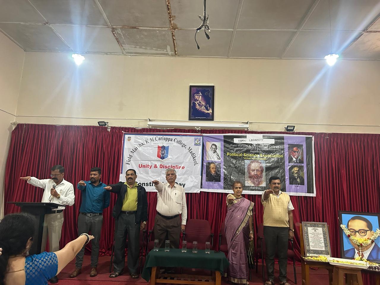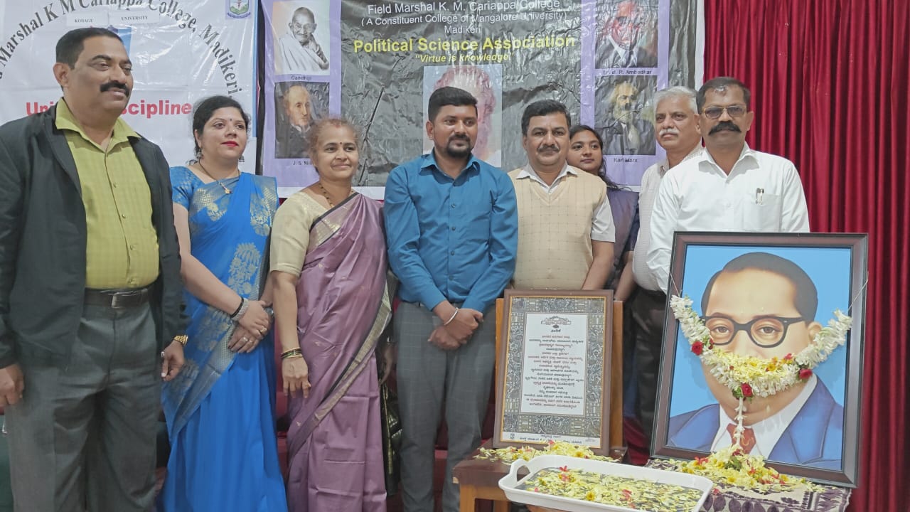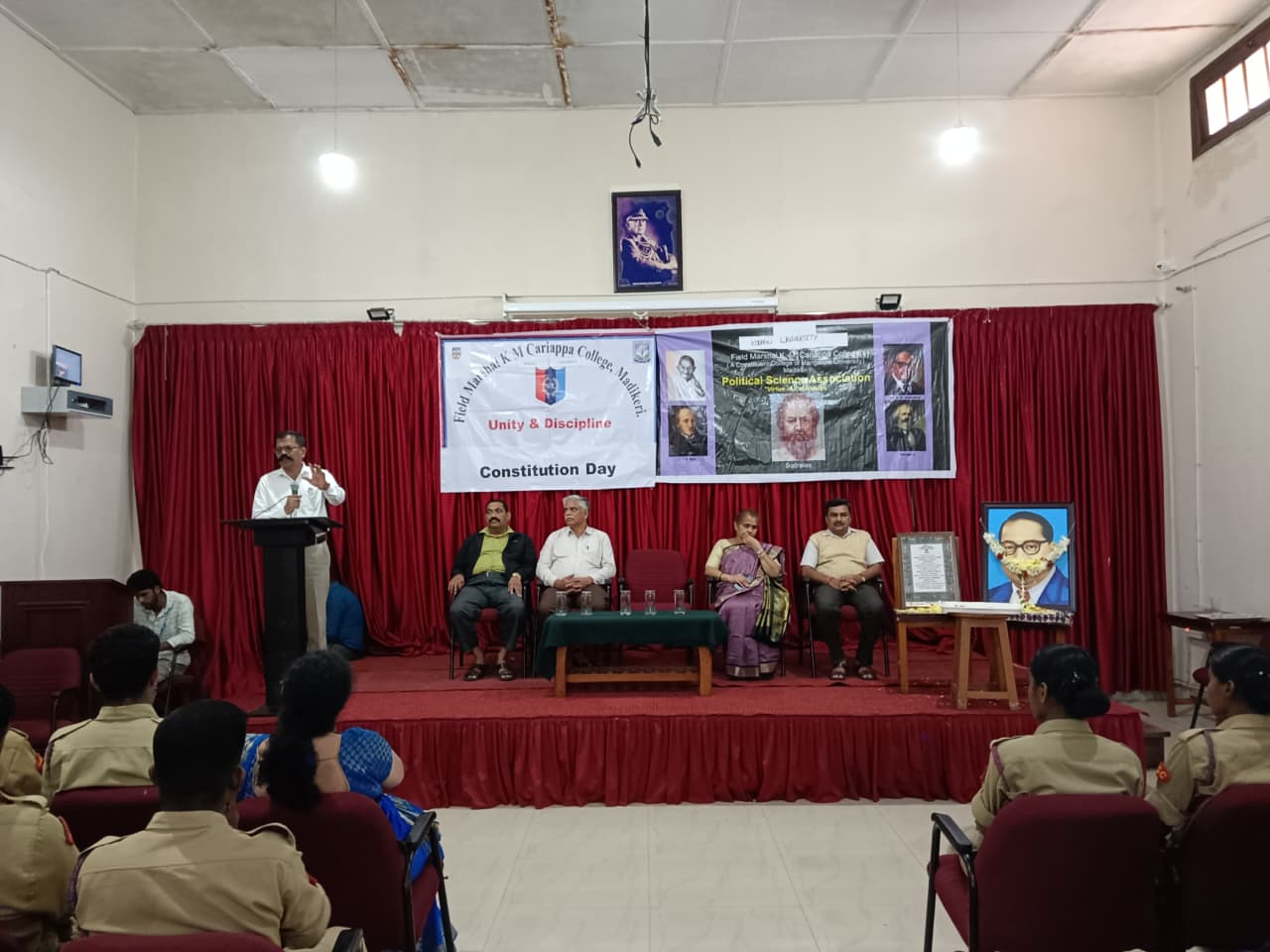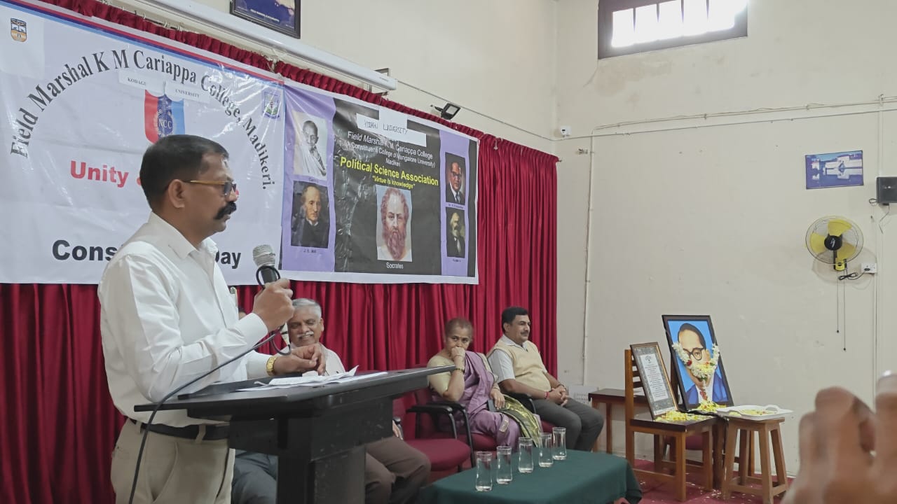 ಮಡಿಕೇರಿ ನ.27 NEWS DESK : ಸಂವಿಧಾನವು ಭಾರತ ದೇಶದ ಪ್ರಜಾಪ್ರಭುತ್ವದ ಮೂಲಭೂತ ಆಧಾರವಾಗಿದ್ದು, ಸಮಾಜದಲ್ಲಿ ಸಮಾನತೆ, ಸ್ವಾತಂತ್ರ್ಯ ಮತ್ತು ನ್ಯಾಯವನ್ನು ಬಲಪಡಿಸುವ ಮಹತ್ವದ ದಾಖಲೆ ಎಂದು ಫೀಲ್ಡ್ ಮಾರ್ಷಲ್ ಕೆ.ಎಂ.ಕಾರ್ಯಪ್ಪ ಕಾಲೇಜಿನ ಪ್ರಾಂಶುಪಾಲರಾದ ಮೇಜರ್ ಪ್ರೊ.ರಾಘವ.ಬಿ ಹೇಳಿದರು. ಫೀಲ್ಡ್ ಮಾರ್ಷಲ್ ಕೆ.ಎಂ.ಕಾರ್ಯಪ್ಪ ಕಾಲೇಜಿನ ರಾಜ್ಯಶಾಸ್ತ್ರ ವಿಭಾಗ ಮತ್ತು ಎನ್ಸಿಸಿ ವಿಭಾಗದ ವತಿಯಿಂದ ಕಾಲೇಜಿನ ಸೆಮಿನಾರ್ ಹಾಲ್ನಲ್ಲಿ ನಡೆದ ಭಾರತ ಸಂವಿಧಾನ ದಿನಾಚರಣೆಯನ್ನು ಸಂವಿಧಾನ ಶಿಲ್ಪಿ ಬಾಬಾ ಸಾಹೇಬ್ ಡಾ. ಬಿ.ಆರ್.ಅಂಬೇಡ್ಕರ್ ಮತ್ತು ಸಂವಿಧಾನ ಪೀಠಿಕೆಯ ಭಾವಚಿತ್ರಕ್ಕೆ ಪುಷ್ಪಾರ್ಚನೆ ಮಾಡಿ ಉದ್ಘಾಟಿಸಿ ಅವರು ಮಾತನಾಡಿದರು. ಸಂವಿಧಾನದ ರಚನೆಯಲ್ಲಿ ಡಾ. ಬಿ.ಆರ್.ಅಂಬೇಡ್ಕರ್ ಹಾಗೂ ಸಂವಿಧಾನ ಸಭಾ ಸದಸ್ಯರ ಅಮೂಲ್ಯ ಕೊಡುಗೆಯನ್ನು ಅವರು ಸ್ಮರಿಸಿದರು. 1949 ರ ನವೆಂಬರ್ 26 ರ ದಿನ ಸಂವಿಧಾನ ಸಭೆಯು ಭಾರತದ ಸಂವಿಧಾನವನ್ನು ಅಧಿಕೃತವಾಗಿ ಅಂಗೀಕರಿಸಿದ್ದನ್ನು ಸ್ಮರಿಸುವ ಉದ್ದೇಶದಿಂದ ಪ್ರತಿ ವರ್ಷ ಈ ದಿನವನ್ನು ಸಂವಿಧಾನ ದಿನವಾಗಿಯಾಗಿ ಆಚರಿಸಲಾಗುತ್ತದೆ ಎಂದು ತಿಳಿಸಿದರು. ಕಾರ್ಯಕ್ರಮದ ಭಾಗವಾಗಿ ಸಂವಿಧಾನ ಪ್ರಸ್ತಾವನೆಯ ಸಾಮೂಹಿಕ ವಾಚನ ಮಾಡಿಸುವುದರ ಜೊತೆಗೆ ಸಾಮಾಜಿಕ ನ್ಯಾಯ, ಸಾಮಾಜಿಕ ಸಮಾನತೆ ಮತ್ತು ತಾರತಮ್ಯದ ವಿರುದ್ಧ ಇರುವ ಸಾಂವಿಧಾನಿಕ ಅವಕಾಶಗಳನ್ನು ಉಲ್ಲೇಖಿಸುತ್ತಾ ಸಂವಿಧಾನದ ವಿಧಿ 14 ರಲ್ಲಿ ಹೇಳಿರುವ ಸಮಾನತೆ ಹಕ್ಕು ಮತ್ತು ಸಂವಿಧಾನದ ವಿಧಿ 15 ತಾರತಮ್ಯವನ್ನು ಹೋಗಲಾಡಿಸುವ ಹಕ್ಕುಗಳ ಪ್ರಾಮುಖ್ಯತೆಯನ್ನು ಕುರಿತು ಮಾಹಿತಿ ನೀಡಿದರು. ಭಾರತದ ಪ್ರಜೆಗಳ ಜವಾಬ್ದಾರಿ ಮತ್ತು ಕರ್ತವ್ಯಗಳನ್ನು ನೆನಪು ಮಾಡಿಕೊಳ್ಳುತ್ತಾ ಸಮಾಜದಲ್ಲಿ ಭ್ರಾತೃತ್ವ, ಸ್ವಾತಂತ್ರ್ಯ ಸಾರ್ವಭೌಮ, ಸಮಾಜವಾದದ ಪರಿಕಲ್ಪನೆಗಳು, ವಿವಿಧತೆಯಲ್ಲಿ ಏಕತೆ, ಕುರಿತು ಸಂವಿಧಾನದ ಮೂಲ ಉದ್ದೇಶಗಳ ಕುರಿತು ಅಭಿಪ್ರಾಯಗಳನ್ನು ವ್ಯಕ್ತಪಡಿಸಿದರು. ಈ ಕಾರ್ಯಕ್ರಮದಲ್ಲಿ ಕಾಲೇಜಿನ ಹಿರಿಯ ಪ್ರಾಧ್ಯಾಪಕರುಗಳಾದ ಪ್ರೊ.ತಿಪ್ಪೇಸ್ವಾಮಿ ಇ, ಪ್ರೊ.ಗಾಯತ್ರಿದೇವಿ, ಪ್ರೊ.ಶ್ರೀಧರ್ ಹೆಗಡೆ, ತಳವಾರ್ ಬಿ.ಹೆಚ್ ಹಾಗೂ ಉಪನ್ಯಾಸಕರಾದ ಖುರ್ಷಿದ ಭಾನು, ನೀವಿಯಾ ಮೇದಪ್ಪ ಹಾಗೂ ಬೋಧಕ ಬೋಧಕೇತರ ವರ್ಗ ಮತ್ತು ವಿದ್ಯಾರ್ಥಿಗಳು ಉಪಸ್ಥಿತರಿದ್ದರು. ರಾಜ್ಯಶಾಸ್ತ್ರ ವಿಭಾಗದ ಉಪನ್ಯಾಸಕರಾದ ಡಾ.ಕೆ.ಎಸ್.ಶೃಂಗಾರ್ ಕಾರ್ಯಕ್ರಮವನ್ನು ನಿರೂಪಿಸಿದರು.
