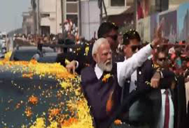 ಉಡುಪಿ ನ.28 NEWS DESK : ದೇಶದ ಪ್ರಧಾನಮಂತ್ರಿಗಳಾದ ಬಳಿಕ ಇದೇ ಮೊದಲ ಬಾರಿಗೆ ಉಡುಪಿಗೆ ಆಗಮಿಸಿರುವ ನರೇಂದ್ರ ಮೋದಿಯವರನ್ನು ಕರಾವಳಿಯ ಮಂದಿ ಹೂಮಳೆ ಸುರಿಸಿ ಅದ್ದೂರಿಯಾಗಿ ಸ್ವಾಗತ ಕೋರಿದ್ದಾರೆ. ನವದೆಹಲಿಯಿಂದ ವಿಶೇಷ ವಿಮಾನದಲ್ಲಿ ಮಂಗಳೂರಿಗೆ ಆಗಮಿಸಿದ ಮೋದಿಯವರು, ಅಲ್ಲಿಂದ ಸೇನಾ ಹೆಲಿಕಾಪ್ಟರ್’ನಲ್ಲಿ ಉಡುಪಿಯ ಹೆಲಿಪ್ಯಾಡ್’ಗೆ ಬಂದಿಳಿದರು. ಅಲ್ಲಿಂದ ರೋಡ್ ಶೋ ಆರಂಭವಾಗಿದ್ದು, ದಾರಿಯುದ್ದಕ್ಕೂ ಲಕ್ಷಾಂತರ ಮಂದಿ ಹೂಮಳೆ ಸುರಿಸಿ, ನೆಚ್ಚಿನ ನಾಯಕನಿಗೆ ಸ್ವಾಗತ ಕೋರಿದ್ದಾರೆ. ಉಡುಪಿಯಿಂದ ಕೃಷ್ಣ ಮಠದವರೆಗೂ ನಡೆಯುತ್ತಿರುವ ರೋಡ್ ಶೋದಲ್ಲಿ ಪ್ರಧಾನಿ ಮೋದಿಯವರು ಅಭಿಮಾನಿಗಳತ್ತ ಕೈ ಬೀಸಿ ಸಾಗಿದ್ದಾರೆ.