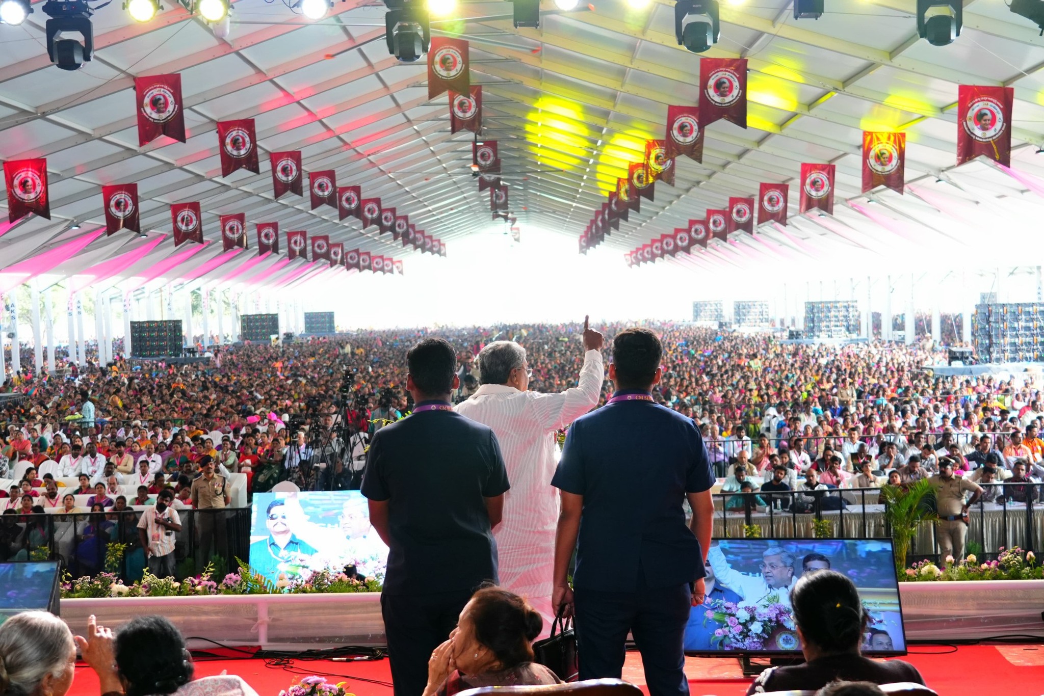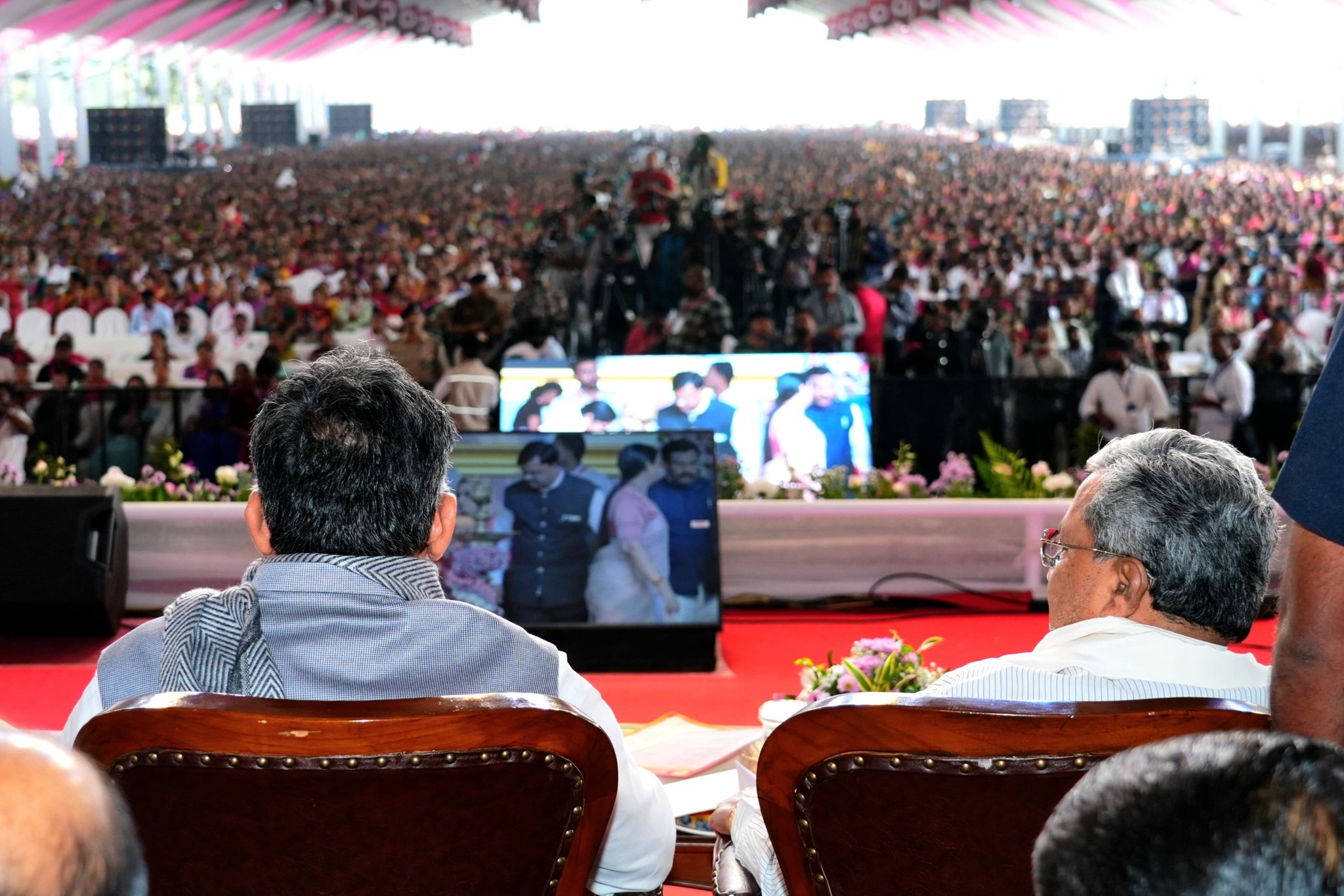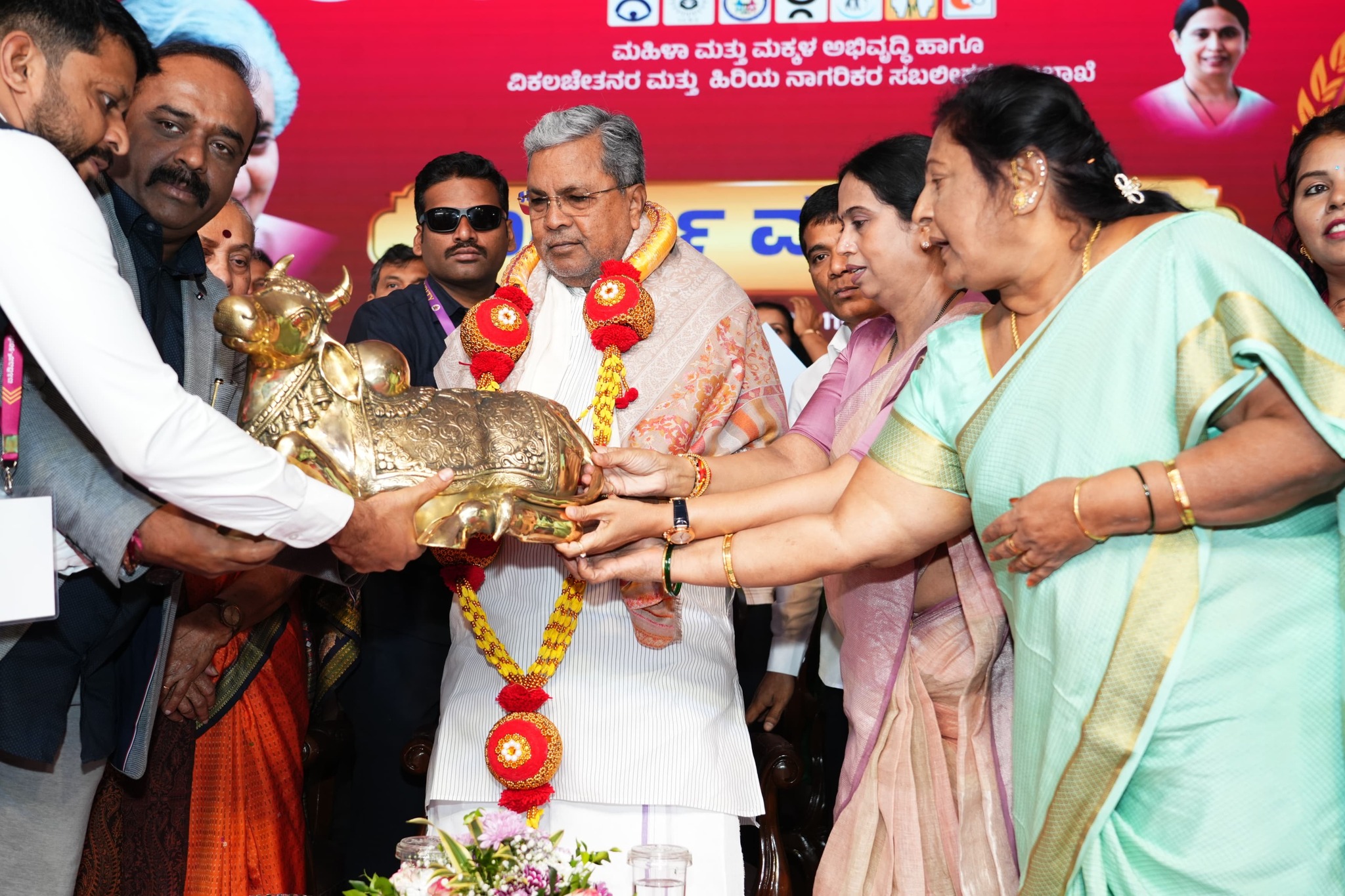 ಮಡಿಕೇರಿ ನ.28 NEWS DESK : ಮಹಿಳಾ ಮತ್ತು ಮಕ್ಕಳ ಕಲ್ಯಾಣ ಇಲಾಖೆ ಬೆಂಗಳೂರಿನ ಅರಮನೆ ಮೈದಾನದಲ್ಲಿ ಆಯೋಜಿಸಿದ್ದ ಕರ್ನಾಟಕದಲ್ಲಿ ಸಮಗ್ರ ಶಿಶು ಅಭಿವೃದ್ಧಿ ಯೋಜನೆಯ “ಸುವರ್ಣ ಮಹೋತ್ಸವ”, ಮಕ್ಕಳ ದಿನಾಚರಣೆ, ವಿಶ್ವ ಹಿರಿಯ ನಾಗರಿಕರ ದಿನಾಚರಣೆ ಪ್ರಶಸ್ತಿ ಪ್ರದಾನ ಸಮಾರಂಭವನ್ನು ಮುಖ್ಯಮಂತ್ರಿ ಸಿದ್ದರಾಮಯ್ಯ ಅವರು ಇಂದು ಉದ್ಘಾಟಿಸಿ, ಬಳಿಕ ಮಹಿಳಾ ಮತ್ತು ಮಕ್ಕಳ ಕಲ್ಯಾಣ ಇಲಾಖೆಯ ಮಹತ್ವಾಕಾಂಕ್ಷಿ ಯೋಜನೆಗಳು ಹಾಗೂ ಗೃಹಲಕ್ಷ್ಮಿ ಸಹಕಾರ ಆಪ್ ಅನ್ನು ಲೋಕಾರ್ಪಣೆಗೊಳಿಸಿದರು. ಉಪಮುಖ್ಯಮಂತ್ರಿಗಳಾದ ಡಿ.ಕೆ.ಶಿವಕುಮಾರ್, ಸಚಿವರುಗಳಾದ ಲಕ್ಷ್ಮೀ ಹೆಬ್ಬಾಳ್ಕರ್, ಹೆಚ್.ಸಿ.ಮಹದೇವಪ್ಪ, ಕೆ.ಎಚ್.ಮುನಿಯಪ್ಪ, ಈಶ್ವರ ಖಂಡ್ರೆ ಸೇರಿದಂತೆ ಹಲವು ಗಣ್ಯರು ಸಮಾರಂಭದಲ್ಲಿ ಉಪಸ್ಥಿತರಿದ್ದರು.
