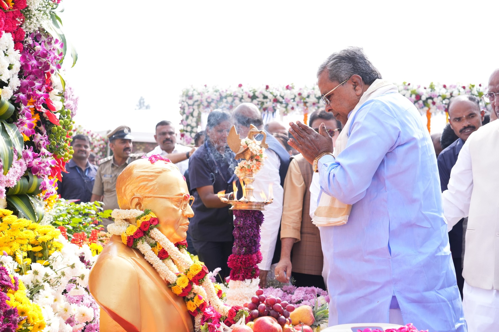 ಬೆಂಗಳೂರು ಡಿ.6 NEWS DESK : ಸಂವಿಧಾನ ಶಿಲ್ಪಿ, ಭಾರತ ರತ್ನ ಡಾ. ಬಿ.ಆರ್.ಅಂಬೇಡ್ಕರ್ ಅವರ 69ನೇ ಮಹಾ ಪರಿನಿರ್ವಾಣ ದಿನದ ಅಂಗವಾಗಿ ವಿಧಾನಸೌಧ ಆವರಣದಲ್ಲಿರುವ ಬಾಬಾ ಸಾಹೇಬರ ಪ್ರತಿಮೆಗೆ ಮುಖ್ಯಮಂತ್ರಿ ಸಿದ್ದರಾಮಯ್ಯ ಅವರು ಮಾಲಾರ್ಪಣೆ ಮಾಡಿ ಗೌರವ ನಮನ ಸಲ್ಲಿಸಿರು. ನಂತರ ಮಾತನಾಡಿದ ಅವರು, ಅಂಬೇಡ್ಕರ್ ಅವರೊಬ್ಬ ಮಹಾನ್ ವ್ಯಕ್ತಿ ಹಾಗೂ ದೇಶ ಕಂಡ ಒಬ್ಬ ಅಪರೂಪದ ನಾಯಕ. ದಲಿತರಿಗೆ ಮಾತ್ರವಲ್ಲದೆ ಎಲ್ಲಾ ಶೋಷಿತರಿಗೆ ಗೌರವ ತಂದುಕೊಡಲು ಪ್ರಯತ್ನಿಸಿದರಲ್ಲದೇ, ದೇಶದಲ್ಲಿ ಸಾಮಾಜಿಕ ನ್ಯಾಯ ಸಿಗದವರ ಪರವಾಗಿ ಹೋರಾಟ ಮಾಡಿದವರು. ಬಾಬಾ ಸಾಹೇಬ್ ಅಂಬೇಡ್ಕರ್ ಅವರು ದೇಶಕ್ಕೆ ಎಂತಹಾ ಸಂವಿಧಾನದ ಅಗತ್ಯವಿದೆ ಎಂದು ಯೋಚಿಸಿ, ಇತರೆ ದೇಶಗಳ ಸಂವಿಧಾನವನ್ನು ಅಭ್ಯಾಸ ಮಾಡಿ, ಅತ್ಯಂತ ಶ್ರೇಷ್ಠ ಸಂವಿಧಾನವನ್ನು ಕೊಟ್ಟಿದ್ದಾರೆ. ನಮ್ಮ ಸಾಮಾಜಿಕ ವ್ಯವಸ್ಥೆಯ ಬದಲಾವಣೆಯಾಗಬೇಕು, ಎಲ್ಲರಿಗೂ ಸಮಾನ ಅವಕಾಶಗಳು ದೊರಕಬೇಕು ಹಾಗೂ ಸಾಮಾಜಿಕ ನ್ಯಾಯ ಸ್ಥಾಪನೆಯಾಗಬೇಕು ಎಂದು ಬಾಬಾ ಸಾಹೇಬ್ ಅಂಬೇಡ್ಕರ್ ಅವರು ಸಂವಿಧಾನದಲ್ಲಿ ಸ್ಪಷ್ಟವಾಗಿ ತಿಳಿಸಿದ್ದಾರೆ ಎಂದರು. ಶಾಲಾ ಕಾಲೇಜು ಮಕ್ಕಳಿಗೆ ಇದರ ಅರಿವು ಮೂಡಿಸಲು ಸಂವಿಧಾನ ಪೀಠಿಕೆಯನ್ನು ನಿತ್ಯ ಬೋಧಿಸಲಾಗುತ್ತಿದೆ. ಸಂವಿಧಾನವು ಪ್ರತಿಯೊಬ್ಬರಿಗೂ ಹಕ್ಕು ಮತ್ತು ಬಾಧ್ಯತೆಗಳನ್ನು ನೀಡಿದೆ. ಸಂವಿಧಾನದ ಧ್ಯೇಯೋದ್ದೇಶಗಳು ಎಲ್ಲರಿಗೂ ಅರ್ಥವಾಗಬೇಕು ಎಂಬ ಕಾರಣದಿಂದ ಸರ್ಕಾರ ಇದನ್ನು ಜಾರಿ ಮಾಡಿದೆ. ಅಂಬೇಡ್ಕರ್ ಅವರ ಪರಿನಿರ್ವಾಣ ದಿನದಂದು ನಾವು ಅವರನ್ನು ಸ್ಮರಿಸುವ ಕೆಲಸವನ್ನು ಮಾಡಿದ್ದೇವೆ. ಬಾಬಾ ಸಾಹೇಬ್ ಅಂಬೇಡ್ಕರ್ ಅವರು ಅವರ ಕೊನೆಯ ದಿನಗಳಲ್ಲಿ ಬೌದ್ಧ ಧರ್ಮವನ್ನು ಸ್ವೀಕರಿಸಿದರು. ಹುಟ್ಟುವಾಗ ಹಿಂದೂವಾಗಿದ್ದೆ, ಸಾಯುವಾಗ ಹಿಂದೂವಾಗಿ ಸಾಯಲಾರೆ ಎಂದಿದ್ದರು. ಹಿಂದೂ ಧರ್ಮದ ಸುಧಾರಣೆಗೆ ಪ್ರಯತ್ನಪಟ್ಟು, ಅದು ಸಾಧ್ಯವಾಗದ ಹಿನ್ನೆಲೆಯಲ್ಲಿ ಬೌದ್ಧ ಧರ್ಮ ಸ್ವೀಕರಿಸಿದ್ದೇನೆ ಎಂದೂ ಹೇಳಿದ್ದರು. ಹಿಂದೂ ಧರ್ಮದಲ್ಲಿರುವ ಸಾಮಾಜಿಕ ವ್ಯವಸ್ಥೆಗೆ ರೋಸಿಹೋಗಿ ಹೀಗೆ ಮಾಡಿದ್ದರು ಎಂದು ಹೇಳಿದರು.