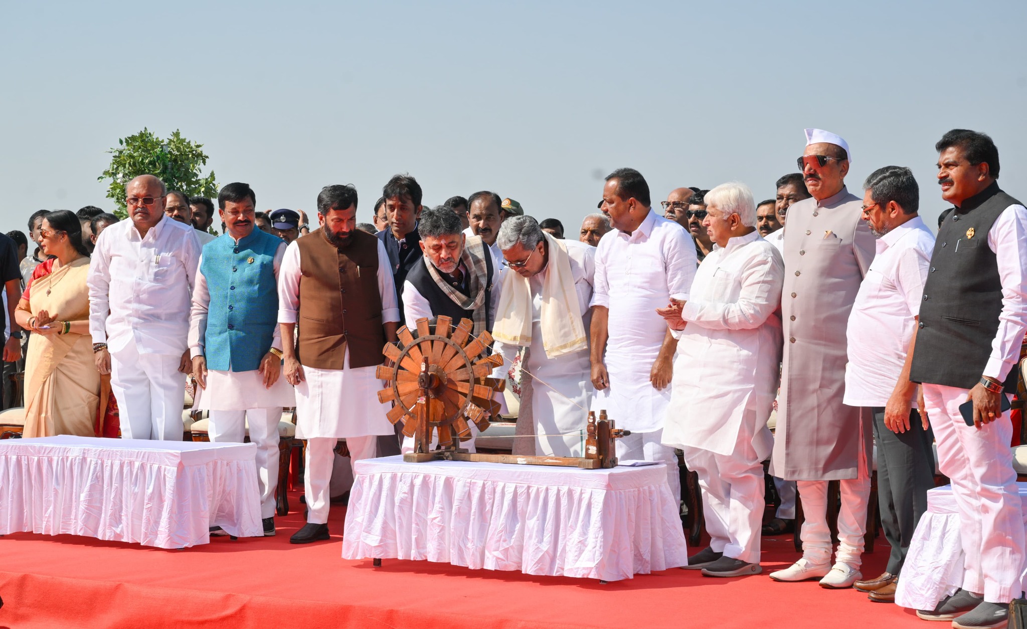 Share Facebook Twitter LinkedIn Pinterest WhatsApp Email ಬೆಳಗಾವಿ ಡಿ.9 NEWS DESK : ಮುಖ್ಯಮಂತ್ರಿ ಸಿದ್ದರಾಮಯ್ಯ ಅವರು ಇಂದು ಬೆಳಗಾವಿಯ ಸುವರ್ಣಸೌಧದ ಮುಂಭಾಗ ಜಗತ್ತಿನ ಎರಡನೇ ಅತಿ ದೊಡ್ಡ ಖಾದಿ ತ್ರಿವರ್ಣ ಧ್ವಜವನ್ನು ಅನಾವರಣಗೊಳಿಸಿ, ಶುಭ ಹಾರೈಸಿದರು.