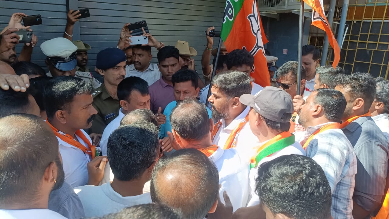 ಮಡಿಕೇರಿ ಡಿ.11 NEWS DESK : ಪ್ರಧಾನಮಂತ್ರಿ ನರೇಂದ್ರಮೋದಿ ಅವರ ಕುರಿತು ಅವಹೇಳನ ವಿಡಿಯೋ ಮಾಡಿರುವ ಕಿಡಿಗೇಡಿಗಳ ವಿರುದ್ಧ ಕಠಿಣ ಕಾನೂನು ಕ್ರಮ ಕೈಗೊಳ್ಳಬೇಕು ಮತ್ತು ಟಿಪ್ಪು ಜಯಂತಿ ಆಚರಣೆ ಪುನರಾರಂಭ ಕುರಿತು ಸರಕಾರಕ್ಕೆ ಪ್ರಸ್ತಾಪಿಸಿರುವುದನ್ನು ವಿರೋಧಿಸಿ ಕೊಡಗು ಜಿಲ್ಲಾ ಬಿಜೆಪಿ ಮಡಿಕೇರಿಯಲ್ಲಿ ಪ್ರತಿಭಟನೆ ನಡೆಸಿತು. ನಗರದ ಇಂದಿರಾಗಾಂಧಿ ವೃತ್ತ (ಚೌಕಿ)ದಲ್ಲಿ ಜಮಾಯಿಸಿದ ಪಕ್ಷದ ಪ್ರಮುಖರು ಹಾಗೂ ಕಾರ್ಯಕರ್ತರು, ಮಾನವ ಸರಪಳಿ ನಿರ್ಮಿಸಿ ಅಸಮಾಧಾನ ವ್ಯಕ್ತಪಡಿಸಿದರು. ಪೊಲೀಸರು ಪ್ರಕರಣವನ್ನು ಗಂಭೀರವಾಗಿ ಪರಿಗಣಿಸಿ ಸೂಕ್ತ ತನಿಖೆ ಕೈಗೊಳ್ಳಬೇಕು ಮತ್ತು ಆರೋಪಿಗಳನ್ನು ಗಡಿಪಾರು ಮಾಡಬೇಕೆಂದು ಆಗ್ರಹಿಸಿದರು. ಜಿಲ್ಲಾ ಬಿಜೆಪಿ ಅಧ್ಯಕ್ಷ ರವಿ ಕಾಳಪ್ಪ, ಮಾಜಿ ಶಾಸಕ ಎಂ.ಪಿ.ಅಪ್ಪಚ್ಚು ರಂಜನ್, ವಿಧಾನ ಪರಿಷತ್ ಮಾಜಿ ಸದಸ್ಯ ಸುನಿಲ್ ಸುಬ್ರಮಣಿ, ಬಿಜೆಪಿ ಮಹಿಳಾ ಮೋರ್ಚಾದ ಅಧ್ಯಕ್ಷೆ ಅನಿತಾ ಪೂವಯ್ಯ, ನಗರಸಭೆ ಅಧ್ಯಕ್ಷೆ ಕಲಾವತಿ, ಉಪಾಧ್ಯಕ್ಷ ಮಹೇಶ್ ಜೈನಿ, ಪ್ರಮುಖರಾದ ಅರುಣ್ ಕುಮಾರ್, ಕಿಶೋರ್ ಕುಮಾರ್, ಮನುಮುತ್ತಪ್ಪ, ಕೆ.ಎಸ್.ರಮೇಶ್, ಅರುಣ್ ಶೆಟ್ಟಿ, ಪಿ.ಎಂ.ರವಿ ಸೇರಿದಂತೆ ಮತ್ತಿತರ ಕಾರ್ಯಕರ್ತರು ಪ್ರತಿಭಟನೆಯಲ್ಲಿ ಪಾಲ್ಗೊಂಡಿದ್ದರು.
