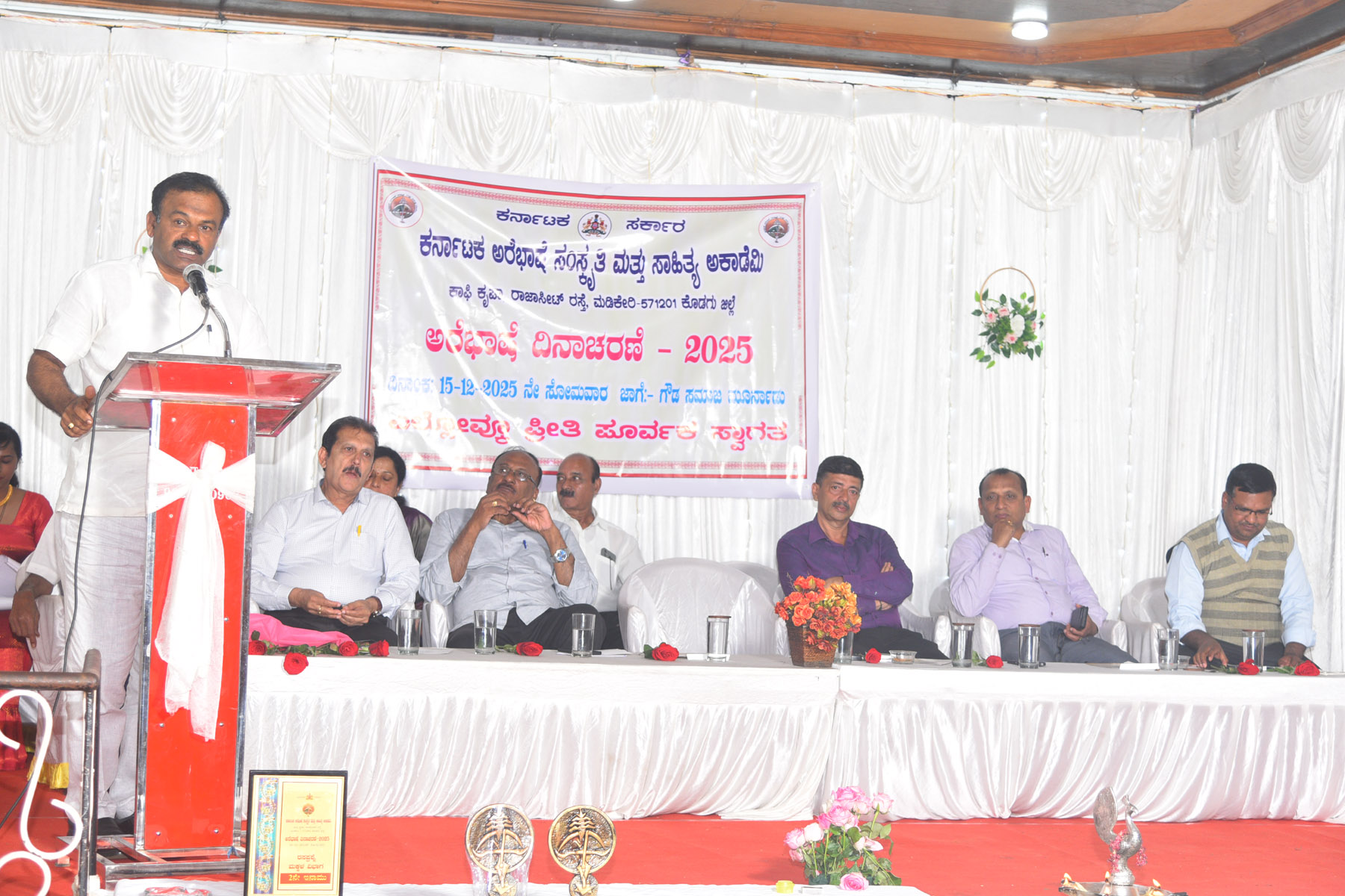 ಮಡಿಕೇರಿ ಡಿ.15 NEWS DESK : ಕನ್ನಡ ಉಪ ಭಾಷೆಗಳಲ್ಲಿ ಒಂದಾದ ಅರೆಭಾಷೆಯನ್ನು ಎಲ್ಲೆಡೆ ಪಸರಿಸುವಂತಾಗಲು ಸಿನಿಮಾ, ನಾಟಕ ಹಾಗೂ ಕಿರುಚಿತ್ರಗಳ ನಿರ್ಮಾಣ ಕಾರ್ಯ ಹೆಚ್ಚಾಗಿ ಆಗಬೇಕು ಎಂದು ಕೊಡಗು ಗೌಡ ನಿವೃತ್ತ ನೌಕರರ ಸಂಘದ ಅಧ್ಯಕ್ಷರಾದ ಚೊಕ್ಕಾಡಿ ಎನ್.ಅಪ್ಪಯ್ಯ ಅವರು ಸಲಹೆ ಮಾಡಿದ್ದಾರೆ. ಕರ್ನಾಟಕ ಅರೆಭಾಷೆ ಸಂಸ್ಕೃತಿ ಮತ್ತು ಸಾಹಿತ್ಯ ಅಕಾಡೆಮಿ ಇವರ ಸಹಯೋಗದೊಂದಿಗೆ ಮೂರ್ನಾಡು ಗೌಡ ಸಮಾಜದಲ್ಲಿ ನಡೆದ ‘ಅರೆಭಾಷೆ ದಿನಾಚರಣೆ’ ಕಾರ್ಯಕ್ರಮದಲ್ಲಿ ಪಾಲ್ಗೊಂಡು ಅರೆಭಾಷೆ ಸಂಸ್ಕøತಿ ಮತ್ತು ಸಾಹಿತ್ಯ ಬೆಳವಣಿಗೆಯಲ್ಲಿ ಸಮಾಜಗಳ ಪಾತ್ರ ಕುರಿತು ಅವರು ಮಾತನಾಡಿದರು. ಇಂದಿನ ಸಾಮಾಜಿಕ ಮಾಧ್ಯಮ ಯುಗದಲ್ಲಿ ಸಿನಿಮಾ ನಾಟಕ, ಸಾಕ್ಷ್ಯಚಿತ್ರ, ಕಿರುಚಿತ್ರಗಳು, ಎಲ್ಲರನ್ನು ಗಮನಸೆಳೆಯುತ್ತವೆ. ಆದ್ದರಿಂದ ಸಾಮಾಜಿಕ ಮಾಧ್ಯಮವು ಪ್ರಬಲವಾಗಿದ್ದು, ಆ ನಿಟ್ಟಿನಲ್ಲಿ ಅರೆಭಾಷೆ ಬೆಳವಣಿಗೆಗೆ ಇವುಗಳ ನಿರ್ಮಾಣ ಕಾರ್ಯ ಅತ್ಯಗತ್ಯ ಎಂದು ಅಪ್ಪಯ್ಯ ಅವರು ಪ್ರತಿಪಾದಿಸಿದರು. ಅರೆಭಾಷೆಯಲ್ಲಿ ಪುಸ್ತಕಗಳನ್ನು ಹೆಚ್ಚಾಗಿ ಪ್ರಕಟಿಸುವಂತಾಗಬೇಕು. ಪುಸ್ತಕಗಳ ಪ್ರಕಟಣೆ ಒಂದು ಗ್ರಂಥವಾಗಿದ್ದು, ಆ ನಿಟ್ಟಿನಲ್ಲಿ ಇನ್ನಷ್ಟು ಪ್ರಯತ್ನಗಳು ನಡೆಯಬೇಕು ಎಂದು ಅಪ್ಪಯ್ಯ ಅವರು ತಿಳಿಸಿದರು. 2016 ರಿಂದ ಅರೆಭಾಷೆ ದಿನಾಚರಣೆಯನ್ನು ಆಚರಿಸಿಕೊಂಡು ಬರಲಾಗುತ್ತಿದೆ. ರಾಷ್ಟ್ರದಲ್ಲಿ 800ಕ್ಕೂ ಹೆಚ್ಚು ಸಣ್ಣ ಸಣ್ಣ ಭಾಷೆಗಳಿದ್ದು, ಕನ್ನಡದಲ್ಲಿಯೂ ಸಹ ಹಲವು ಉಪ ಭಾಷೆಗಳಿವೆ. ಆ ನಿಟ್ಟಿನಲ್ಲಿ ಪ್ರಾಂತೀಯ ಭಾಷೆಗಳನ್ನು ಉಳಿಸಿ ಬೆಳೆಸಿಕೊಂಡು ಹೋಗಬೇಕು ಎಂದರು. ದಕ್ಷಿಣ ಕನ್ನಡ ಮತ್ತು ಕೊಡಗು ಜಿಲ್ಲೆಯಲ್ಲಿ ಸುಮಾರು 6 ಲಕ್ಷದಷ್ಟೂ ಅರೆಭಾಷಿಕರಿದ್ದು, ಐನ್ಮನೆ ಸಂಸ್ಕೃತಿಯನ್ನು ಒಳಗೊಂಡಿದೆ. ಅರೆಭಾಷೆ ಶಾಸ್ತ್ರ, ಸಂಪ್ರದಾಯ, ಸಂಸ್ಕೃತಿಗಳು ತನ್ನದೇ ಆದ ಶ್ರೀಮಂತಿಕೆ ಹೊಂದಿದೆ ಎಂದು ಅಪ್ಪಯ್ಯ ನುಡಿದರು. ಅರೆಭಾಷೆ ಬೆಳವಣಿಗೆಯಲ್ಲಿ ಎಲ್ಲರ ಪಾತ್ರ ಪ್ರಮುಖವಾಗಿದ್ದು, ಭಾಷೆ ಮತ್ತು ಸಮಾಜ ಒಂದಕ್ಕೊಂದು ಅವಿನಾಭಾವ ಸಂಬಂಧವನ್ನು ಹೊಂದಿದೆ ಎಂದು ತಿಳಿಸಿದರು. ಕೊಡಗು ಗೌಡ ಸಮಾಜಗಳ ಒಕ್ಕೂಟದ ಮಾಜಿ ಅಧ್ಯಕ್ಷ ಸೂರ್ತಲೆ ಆರ್.ಸೋಮಣ್ಣ ಅವರು ಅರೆಭಾಷೆ ಸಾಹಿತ್ಯ ಮತ್ತು ಸಂಸ್ಕೃತಿ ಅಭಿವೃದ್ಧಿಗೆ ಹಿರಿಯರ ಕೊಡುಗೆ ಕುರಿತು ಮಾತನಾಡಿ ಅರೆಭಾಷೆ ಸಂಸ್ಕೃತಿ ಮತ್ತು ಸಾಹಿತ್ಯ ಬೆಳವಣಿಗೆಯಲ್ಲಿ ಪಟ್ಟಡ ಪ್ರಭಾಕರ್, ಪುರುಷೋತ್ತಮ ಬಿಳಿಮಲೆ, ಹೊದ್ದೆಟ್ಟಿ ಭವಾನಿ ಶಂಕರ್, ಸೂದನ ಈರಪ್ಪ, ವಿಶ್ವನಾಥ ಬದಿಕಾನ, ಕೋಡಿ ಕುಶಾಲಪ್ಪ ಗೌಡ, ಮೋಹನ್ ಸೋನಾ, ಪಿ.ಜಿ.ಅಂಬೆಕಲ್ಲು, ಬೈತಡ್ಕ ಜಾನಕಿ ಬೆಳ್ಯಪ್ಪ, ಕುರುಂಜಿ ಗಂಗಾಧರ್, ಪೂಜಾರಿ ಮೊಣ್ಣಪ್ಪ, ಕೋರನ ಸರಸ್ವತಿ, ಜೋಯಪ್ಪ ಮಾಸ್ಟರ್, ಹೀಗೆ ಹಲವರು ಶ್ರಮಿಸಿದ್ದಾರೆ ಎಂದು ಅವರು ಹೇಳಿದರು. ಅರೆಭಾಷೆ ಸಂಸ್ಕøತಿ, ಸಂಪ್ರದಾಯಗಳು ವಿಶೇಷತೆಯನ್ನು ಹೊಂದಿದ್ದು, ಸೋಬಾನೆ ಪದಗಳು ತನ್ನದೇ ಆದ ವೈಶಿಷ್ಟ್ಯತೆ ಹೊಂದಿದೆ ಎಂದು ತಿಳಿಸಿದರು. ‘ಹಾಲೇರಿ ಅರಸರ ಕಾಲದಲ್ಲಿ ಅಖಂಡ ಕೊಡಗು ಪಿರಿಯಾಪಟ್ಟಣದಿಂದ ಬಿ.ಸಿ.ರಸ್ತೆ ವರೆಗೂ ವಿಸ್ತಾರವಾಗಿತ್ತು ಎಂಬುದನ್ನು ಸ್ಮರಿಸಬಹುದಾಗಿದೆ ಎಂದು ಸೂರ್ತಲೆ ಸೋಮಣ್ಣ ಅವರು ಹೇಳಿದರು.’ ಅರೆಭಾಷೆ ಸಂಸ್ಕೃತಿ ಮತ್ತು ಸಾಹಿತ್ಯ ಅಕಾಡೆಮಿ ಅಧ್ಯಕ್ಷರಾದ ಸದಾನಂದ ಮಾವಜಿ ಅವರು ಮಾತನಾಡಿ ಅರೆಭಾಷೆ ಸಂಸ್ಕøತಿ ಮತ್ತು ಸಾಹಿತ್ಯ ಅಕಾಡೆಮಿ ವತಿಯಿಂದ ಹಲವು ಸಾಹಿತ್ಯ, ಸಂಸ್ಕೃತ
