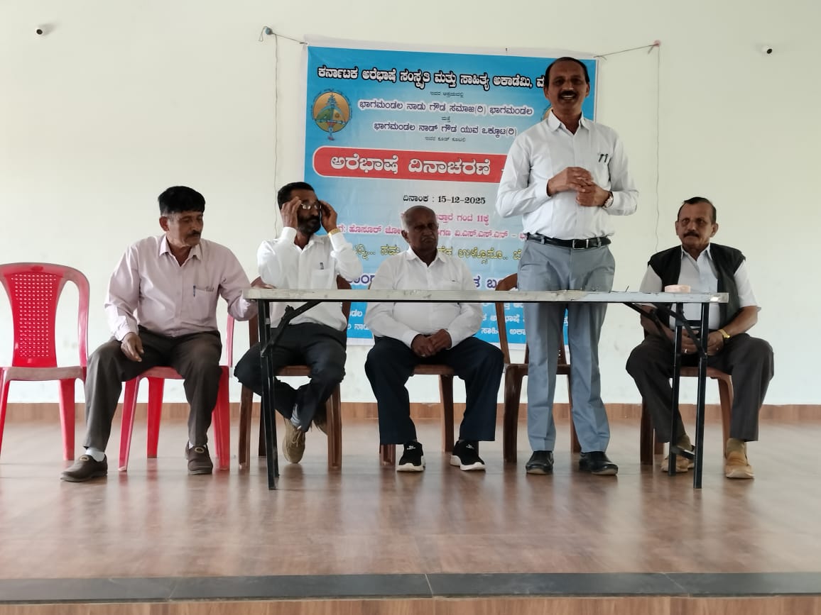 ಮಡಿಕೇರಿ ಡಿ.16 NEWS DESK : ಕರ್ನಾಟಕ ಅರೆಭಾಷೆ ಅಕಾಡೆಮಿ, ಭಾಗಮಂಡಲ ನಾಡು ಗೌಡ ಸಮಾಜ ಮತ್ತು ಭಾಗಮಂಡಲ ನಾಡು ಗೌಡ ಯುವ ಒಕ್ಕೂಟದ ವತಿಯಿಂದ ಅರೆಭಾಷೆ ದಿನಾಚರಣೆಯನ್ನು ಅರ್ಥಪೂರ್ಣವಾಗಿ ಆಚರಿಸಲಾಯಿತು. ಭಾಗಮಂಡಲ ವಿ.ಎಸ್.ಎಸ್.ಎನ್ ಸಭಾಂಗಣದಲ್ಲಿ ನಡೆದ ಕಾರ್ಯಕ್ರಮದಲ್ಲಿ ಮುಖ್ಯ ಅತಿಥಿಗಳಾಗಿ ಪಾಲ್ಗೊಂಡು ಮಾತನಾಡಿದ ಪ್ರಾಂಶುಪಾಲರಾದ ಕುಂದಲ್ಪಾಡಿ ದಿವಾಕರ್, ಅರೆಭಾಷೆ ಅಕಾಡೆಮಿ, ಕೊಡಗು ಗೌಡ ಫೆಡರೇಶನ್, ಗೌಡ ಸಮಾಜಗಳು ಮತ್ತು ಗೌಡ ಯುವ ಒಕ್ಕೂಟಗಳ ವಿವಿಧ ಕಾರ್ಯಕ್ರಮಗಳ ಫಲವಾಗಿ ಇಂದು ಅರೆಭಾಷೆ ಹೆಚ್ಚು ಬಳಕೆಯಾಗಿ ಜನಪ್ರಿಯವಾಗಿದೆ. ಎಲ್ಲರೂ ಹೆಮ್ಮೆಯಿಂದ ಅರೆಭಾಷೆಯನ್ನು ಗಟ್ಟಿಧ್ವನಿಯಲ್ಲಿ ಮಾತನಾಡುತ್ತಾರೆ. ಮಕ್ಕಳಿಗೆಗೊತ್ತಿರುವ ಮಾತೃ ಭಾಷೆಯಲ್ಲಿ ಶಿಕ್ಷಣ ಒದಗಿಸಿ ಬದುಕಿನ ದಾರಿ ಕಲಿಸಬೇಕು ಎಂದು ಹೇಳಿದರು. ಬುದ್ಧಿಶಕ್ತಿ ಬೆಳವಣಿಗೆಗೆ ಅವರ ಮಾತೃಭಾಷೆ ಹೆಚ್ಚು ಪ್ರಯೋಜನ. ನಗರಗಳಲ್ಲಿ ಓದುವ ಅನಿವಾರ್ಯತೆ ಇಲ್ಲ, ಮಕ್ಕಳಿಗೆ ಮನೆಗಳಲ್ಲಿ ಮಾತೃಭಾಷೆಯಲ್ಲಿ ಸಾಕಷ್ಟು ವಿಷಯ ಕಲಿಸಬಹುದು, ಎಲ್ಲರೂ ನಮ್ಮ ಆಚಾರ ವಿಚಾರ ಸಂಪ್ರದಾಯಗಳನ್ನು ಬೆಳೆಸಲು ಒಂದಾಗುವ ಎಂದು ಕರೆ ನೀಡಿದರು. ಗೌಡ ಸಮಾಜ ಗೌರವಾಧ್ಯಕ್ಷ ಕುದುಪಜೆ ಪಳಂಗಪ್ಪ ಅವರ ಅಧ್ಯಕ್ಷತೆಯಲ್ಲಿ ನಡೆದ ಕಾರ್ಯಕ್ರಮದಲ್ಲಿ ಅರೆಭಾಷೆ ಅಕಾಡೆಮಿ ಸದಸ್ಯ ಕುದುಪಜೆ ಪ್ರಕಾಶ್, ಕೊಡಗು ಗೌಡ ವಿದ್ಯಾಸಂಘದ ನಿರ್ದೇಶಕ ದೇವಂಗೋಡಿ ಹರ್ಷ, ಸಮಾಜದ ಕಾರ್ಯದರ್ಶಿ ನಿಡ್ಯಮಲೆ ರವಿ, ಫೆಡರೇಶನ್ ನಿರ್ದೇಶಕ ಕುಯ್ಯಮುಡಿ ರಂಜು, ಭಾಗಮಂಡಲ ನಾಡಿನ ಅರೆ ಭಾಷಿಕ ಬಂಧುಗಳು ಪಾಲ್ಗೊಂಡಿದ್ದರು. ಭಾಗಮಂಡಲ ನಾಡು ಗೌಡ ಯುವ ಒಕ್ಕೂಟದ ಅಧ್ಯಕ್ಷರಾದ ಕುದುಕುಳಿ ಕಿಶೋರ್ ಕಾರ್ಯಕ್ರಮ ನಿರೂಪಿಸಿದರು.