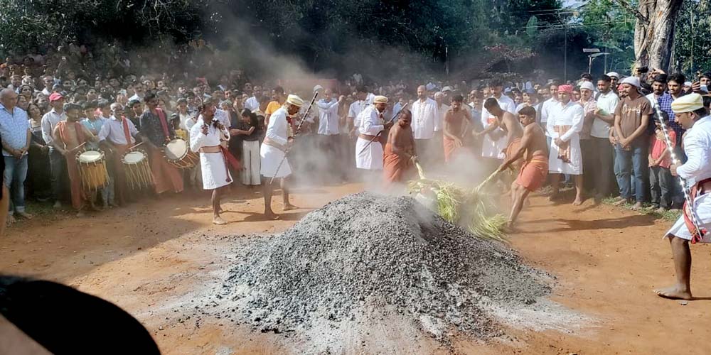 ನಾಪೋಕ್ಲು ಡಿ.20 NEWS DESK : ಇತಿಹಾಸ ಪ್ರಸಿದ್ಧ ಸತ್ಯ ಸಂಧತೆಯ ಬೇತು ಗ್ರಾಮದ ಮಕ್ಕಿ ಶ್ರೀ ಶಾಸ್ತವು ದೇವರ ಹಬ್ಬವು ಶ್ರದ್ಧಾಭಕ್ತಿಯಿಂದ ಸಂಪನ್ನಗೊಂಡಿತು. ಉತ್ಸವದ ಅಂಗವಾಗಿ ಸಾಂಪ್ರದಾಯಿಕವಾಗಿ ಭಕ್ತಾದಿಗಳು ಹಾಗೂ ದೇವಾಲಯದ ತಕ್ಕ ಮುಖ್ಯಸ್ಥರು ದೇವರಿಗೆ ಹರಕೆ ರೂಪದಲ್ಲಿ ಮಣ್ಣಿನ ಪ್ರತಿಕೃತಿ ನಾಯಿ ಒಪ್ಪಿಸುವ ಕಾರ್ಯಕ್ರಮದ ಮುಖಾಂತರ ಹಬ್ಬಕ್ಕೆ ಚಾಲನೆ ನೀಡಿದರು. ನಂತರ ದೇವಾಲಯದ ಆವರಣದಲ್ಲಿ ತಕ್ಕ ಮುಖ್ಯಸ್ಥರು ಸೇರಿ ಕೊಟ್ಟಿ ಹಾಡುವ ಕಾರ್ಯಕ್ರಮ ನಡೆಸಲಾಯಿತು. ರಾತ್ರಿ ಅಂಧಿಬೊಳ್ಕ್ (ದೀಪಾರಾಧನೆ) ಕಾರ್ಯಕ್ರಮ ನಡೆಯಿತು. ನಂತರ ಬೆಳಗ್ಗಿನ ವರೆಗೆ ವಿವಿಧ ದೈವಗಳ ಕೋಲ ನಡೆದು, ಕಲ್ಯಾಟ ಅಜ್ಜಪ್ಪ ದೈವದ ಕೋಲ ನಡೆಯಿತು. ಮಧ್ಯಾಹ್ನ ನೆರೆದಿದ್ದ ಭಕ್ತಾಧಿಗಳಿಗೆ ಅನ್ನದಾನ, ಅಪರಾಹ್ನ ಶ್ರೀ ವಿಷ್ಣು ಮೂರ್ತಿ ಮೇಲೇರಿ (ಚೌಂಡಿ ಅಗ್ನಿ ಪ್ರವೇಶ) ನೆರವೇರಿತು. ಉತ್ಸವದಲ್ಲಿ ದೇವಾಲಯದ ತಕ್ಕ ಮುಖ್ಯಸ್ಥರು, ಆಡಳಿತ ಮಂಡಳಿ ಪದಾಧಿಕಾರಿಗಳು ಹಾಗೂ ಊರ ಮತ್ತು ಪರವೂರಿನ ಭಕ್ತಾದಿಗಳು ಅಧಿಕ ಸಂಖ್ಯೆಯಲ್ಲಿ ಭಾಗವಹಿಸಿದ್ದರು. :: ವಿಶೇಷತೆ :: ಮಕ್ಕಿ ಶ್ರೀ ಶಾಸ್ತವು ದೇವರ ಹಬ್ಬದ ವಿಶೇಷತೆ ಎಂದರೆ ಕೊಡಗಿನ ಎಲ್ಲಾ ದೇವಳದಲ್ಲೂ ವಾರ್ಷಿಕವಾಗಿ ಒಂದು ಉತ್ಸವವಾದರೆ ಬೇತು ಗ್ರಾಮದ ಶ್ರೀ ಮಕ್ಕಿ ಶಾಸ್ತವು ದೇವಳದಲ್ಲಿ ಪೂರ್ವ ಪದ್ಧತಿಯಂತೆ ವಾರ್ಷಿಕವಾಗಿ ಎರಡು ಹಬ್ಬಗಳು ಅಂದರೆ ಮೇ ತಿಂಗಳಲ್ಲಿ ಮತ್ತು ಡಿಸೆಂಬರ್ ತಿಂಗಳಲ್ಲಿ ಜರುಗುತ್ತದೆ.