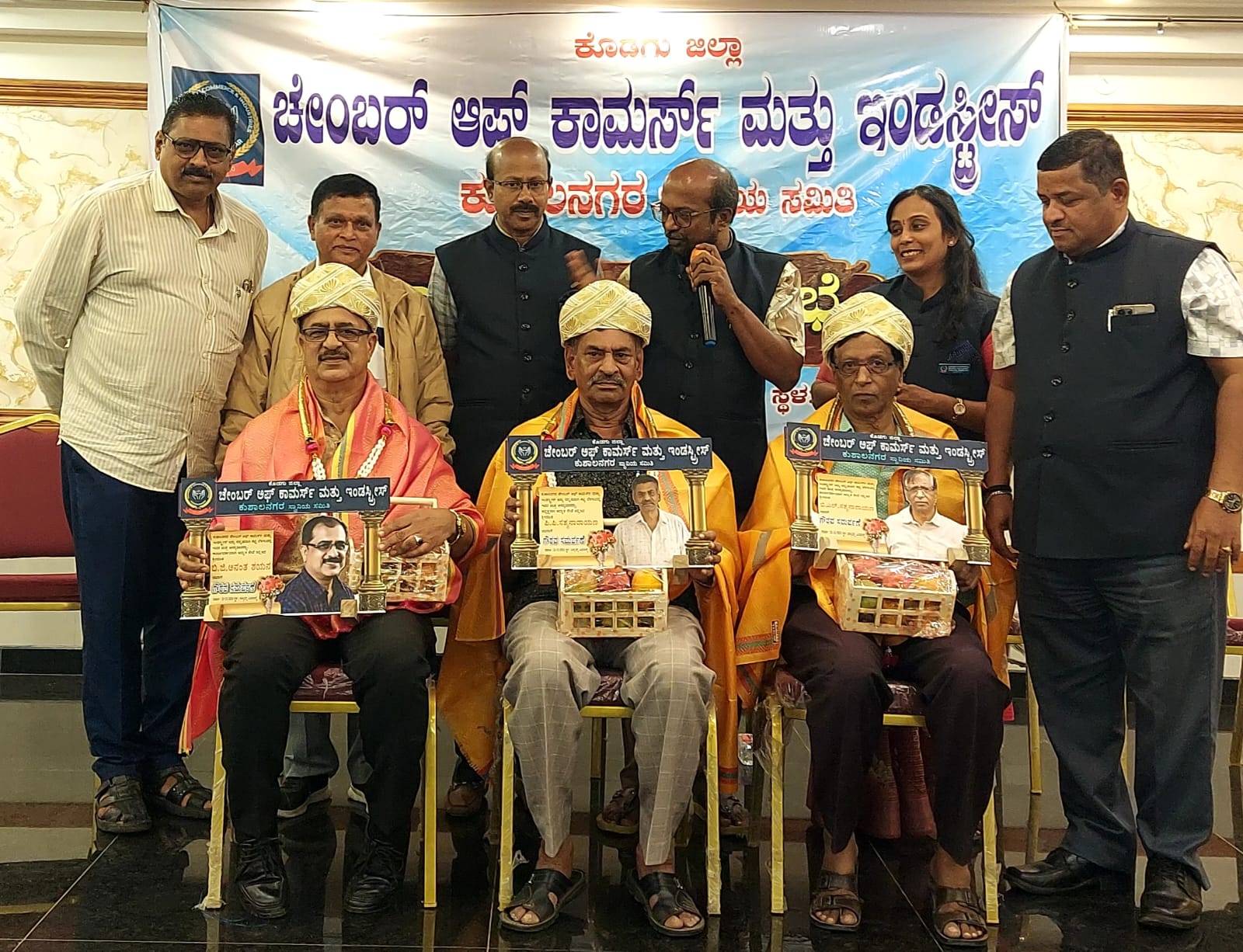 Share Facebook Twitter LinkedIn Pinterest WhatsApp Email ಮಡಿಕೇರಿ ಡಿ.22 NEWS DESK : ಕುಶಾಲನಗರ ಚೇಂಬರ್ ಆಫ್ ಕಾಮರ್ಸ್ ವತಿಯಿಂದ ಕೊಡಗು ಪತ್ರಕರ್ತರ ಸಂಘದ ಗೌರವ ಸಲಹೆಗಾರರಾದ ಟಿ.ಪಿ.ರಮೇಶ್ ಮತ್ತು ಅನಂತಶಯನ ಅವರನ್ನು ಸನ್ಮಾನಿಸಿ, ಗೌರವಿಸಲಾಯಿತು.