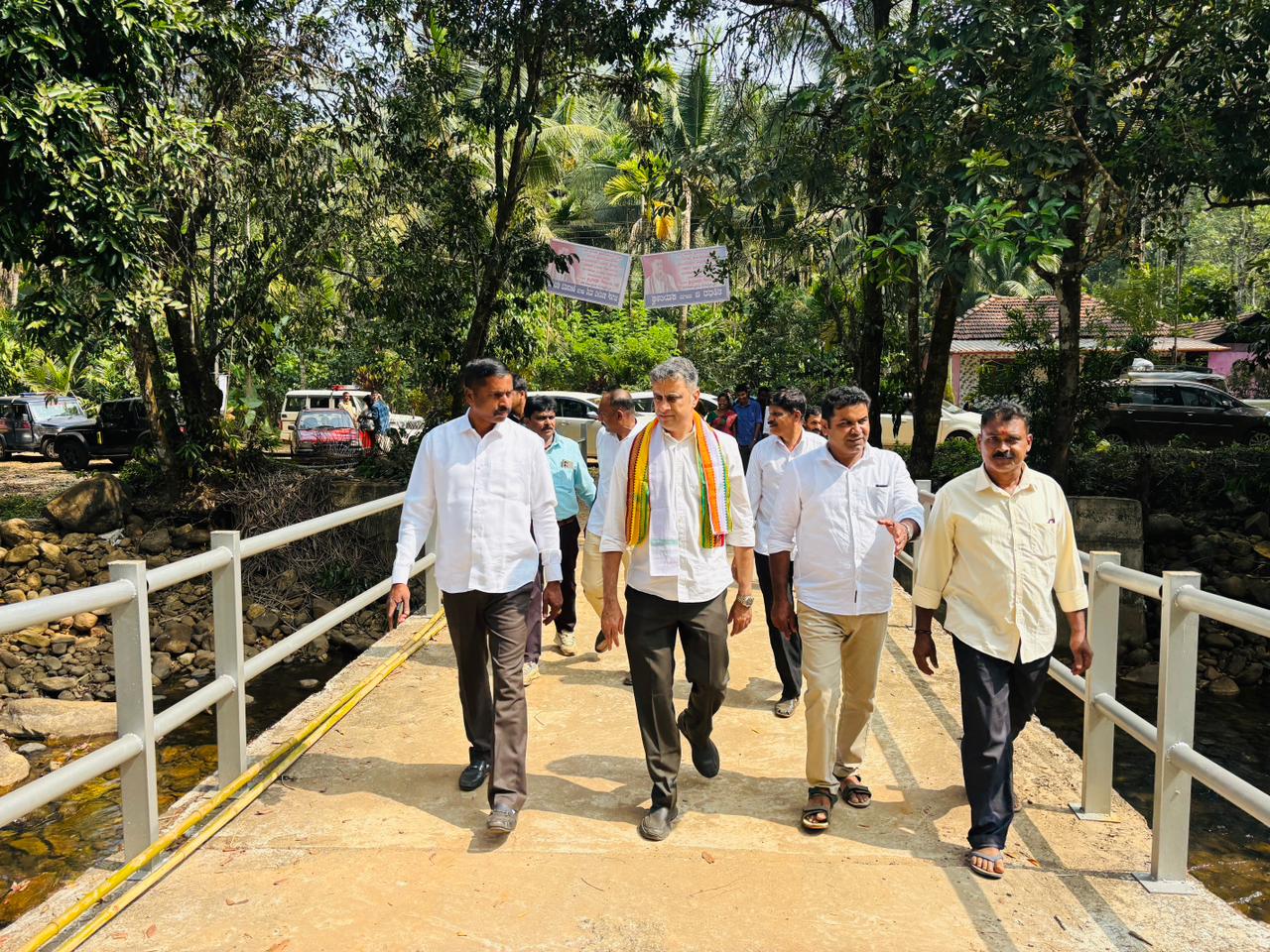ಮಡಿಕೇರಿ ಡಿ.23 NEWS DESK : ತಾಲ್ಲೂಕಿನ ಊರುಬೈಲು ಬಳಿ 43 ಲಕ್ಷ ರೂ. ವೆಚ್ಚದಲ್ಲಿ ನೂತನವಾಗಿ ನಿರ್ಮಿಸಿರುವ ಕಿರು ಸೇತುವೆಯನ್ನು ಮುಖ್ಯಮಂತ್ರಿಗಳ ಕಾನೂನು ಸಲಹೆಗಾರರು ಹಾಗೂ ವಿರಾಜಪೇಟೆ ವಿಧಾನಸಭಾ ಕ್ಷೇತ್ರದ ಶಾಸಕ ಎ.ಎಸ್.ಪೊನ್ನಣ್ಣ ಅವರು ಉದ್ಘಾಟಿಸಿದರು. ನಂತರ ಚೆಂಬು ಗ್ರಾಮಕ್ಕೆ ಭೇಟಿ ನೀಡಿ ಸಾರ್ವಜನಿಕರ ಅಹವಾಲು ಆಲಿಸಿದರು. ಬಳಿಕ ಮಾತನಾಡಿದ ಶಾಸಕರು ಮಳೆಗಾಲದಲ್ಲಿ ತುಂಬಾ ತೊಂದರೆ ಅನುಭವಿಸುವ ಗ್ರಾಮಸ್ಥರ ಅನುಕೂಲಕ್ಕಾಗಿ ಕಿರು ಸೇತುವೆಯನ್ನು ಶಾಸಕರ ನಿಧಿಯಿಂದ ನಿರ್ಮಾಣ ಮಾಡಲಾಗಿದೆ ಎಂದು ಹೇಳಿದರು. ಗ್ರಾಮೀಣ ಪ್ರದೇಶದಲ್ಲಿ ರಸ್ತೆ, ಕುಡಿಯುವ ನೀರು, ವಿದ್ಯುತ್ ಸಂಪರ್ಕ, ಸೇತುವೆ, ಸಾರಿಗೆ ಸಂಪರ್ಕ ಮತ್ತಿತರ ಕನಿಷ್ಠ ಸೌಲಭ್ಯಗಳು ಅತ್ಯಗತ್ಯ. ಆ ನಿಟ್ಟಿನಲ್ಲಿ ಮೂಲ ಸೌಲಭ್ಯ ಒದಗಿಸಲು ಹೆಚ್ಚಿನ ಒತ್ತು ನೀಡಲಾಗಿದೆ ಎಂದು ಎ.ಎಸ್.ಪೊನ್ನಣ್ಣ ಅವರು ತಿಳಿಸಿದರು. ಬಳಿಕ ಅನ್ಯಾಳ ಭಾಗದಲ್ಲಿ ಸಣ್ಣ ನೀರಾವರಿ ಇಲಾಖೆಯಿಂದ ಕೈಗೊಳ್ಳಲಾಗುವ ತಡೆಗೋಡೆ ಕಾಮಗಾರಿಗೆ ಶಾಸಕರು ಭೂಮಿ ಪೂಜೆ ನೆರವೇರಿಸಿದರು. ಇದೇ ಸಂದರ್ಭ ನಿರ್ಮಾಣವಾಗಿರುವ ಕಾಂಕ್ರೀಟ್ ರಸ್ತೆಯನ್ನು ಉದ್ಘಾಟಿಸಿದರು. ಚೆಂಬು ಸರ್ಕಾರಿ ಹಿರಿಯ ಪ್ರಾಥಮಿಕ ಶಾಲೆಗೆ ಭೇಟಿ ನೀಡಿ ಅಲ್ಲಿನ ಮಕ್ಕಳ ಶಿಕ್ಷಣ ಸಂಬಂಧ ಮಾಹಿತಿ ಪಡೆದರು. ಬಳಿಕ ಕಜೆ, ಪರ್ದಾಯ ಗದ್ದೆ ಭಾಗದಲ್ಲಿ ಸುಮಾರು 15 ಲಕ್ಷ ರೂ. ವೆಚ್ಚದಲ್ಲಿ ನಿರ್ಮಾಣವಾಗಿರುವ ಬಹುಬೇಡಿಕೆಯ ಕಾಂಕ್ರೀಟ್ ರಸ್ತೆಯನ್ನು ಉದ್ಘಾಟಿಸಿದರು. ಬಳಿಕ ಪರಿಶಿಷ್ಟ ಮತ್ತು ಪರಿಶಿಷ್ಟ ಪಂಗಡದವರಿಗೆ ನೀಡಲಾಗುವ ಉಚಿತ ಕೊಳವೆ ಬಾವಿ ಸಂಬಂಧ ಫಲಾನುಭವಿಗಳಿಗೆ ಪ್ರಮಾಣ ಪತ್ರ ವಿತರಿಸಿದರು. ಮೀನುಗಾರಿಕೆ ಇಲಾಖೆ ವತಿಯಿಂದ ನೀಡಲಾಗುವ ವಿವಿಧ ಸೌಲಭ್ಯಗಳನ್ನು ಎ.ಎಸ್.ಪೊನ್ನಣ್ಣ ಅವರು ವಿತರಿಸಿದರು. ಪ್ರಮುಖರಾದ ಇಸ್ಮಾಯಿಲ್, ಸುರೇಶ್, ರವಿರಾಜ್, ಜಯರಾಮ್ ಪೆರುಮುಂಡ, ಹೊಸೂರು ಸೂರಜ್, ಅಪ್ರುರವೀಂದ್ರ, ಮೊಹಿದ್ದಿನ್, ವಿಜಯಕುಮಾರ್, ಹನೀಪ್, ಇತರರು ಇದ್ದರು. ನಂತರ ಸಂಪಾಜೆ ಗ್ರಾಮ ಪಂಚಾಯತ್ ವ್ಯಾಪ್ತಿಯಲ್ಲಿ ಶಾಸಕರ ಅನುದಾನದಲ್ಲಿ ನಿರ್ಮಾಣಗೊಂಡಿರುವ ವಿವಿಧ ಅಭಿವೃದ್ಧಿ ಕಾಮಗಾರಿಗೆ ಚಾಲನೆ ಹಾಗೂ ಭೂಮಿ ಪೂಜೆಯನ್ನು ಶಾಸಕರಾದ ಎ.ಎಸ್.ಪೊನ್ನಣ್ಣ ಅವರು ನೆರವೇರಿಸಿದರು. ಸಂಪಾಜೆಯ ಕೂಟೇಲು ಮತ್ತು ಕಾಂತಬೈಲು ಭಾಗದ ರಸ್ತೆ 30 ಲಕ್ಷ ರೂ. ವೆಚ್ಚದಲ್ಲಿ ನಿರ್ಮಿಸಿರುವ ಕಾಂಕ್ರೀಟ್ ರಸ್ತೆಯನ್ನು ಲೋಕಾರ್ಪಣೆ ಮಾಡಿದರು. ಕಲ್ಯಾಳ ಹಾಗೂ ಎಸ್ಟೇಟ್ ಭಾಗದ ರಸ್ತೆ ಕಾಮಗಾರಿಗೆ ಭೂಮಿ ಪೂಜೆ ನೆರವೇರಿಸಿದರು.