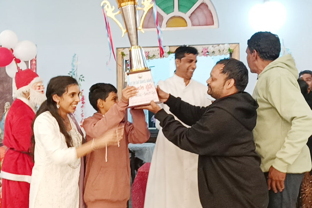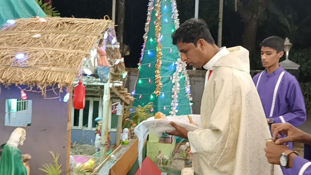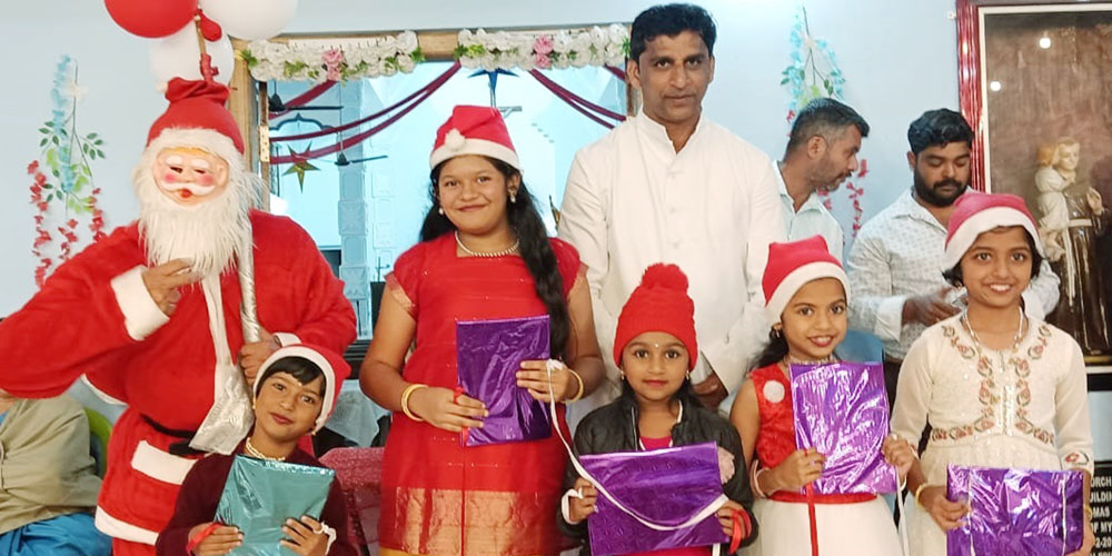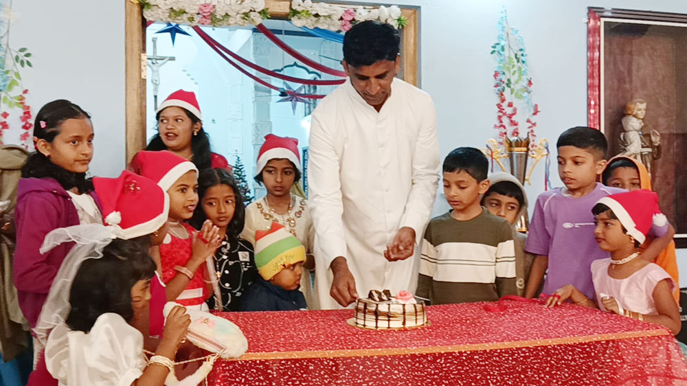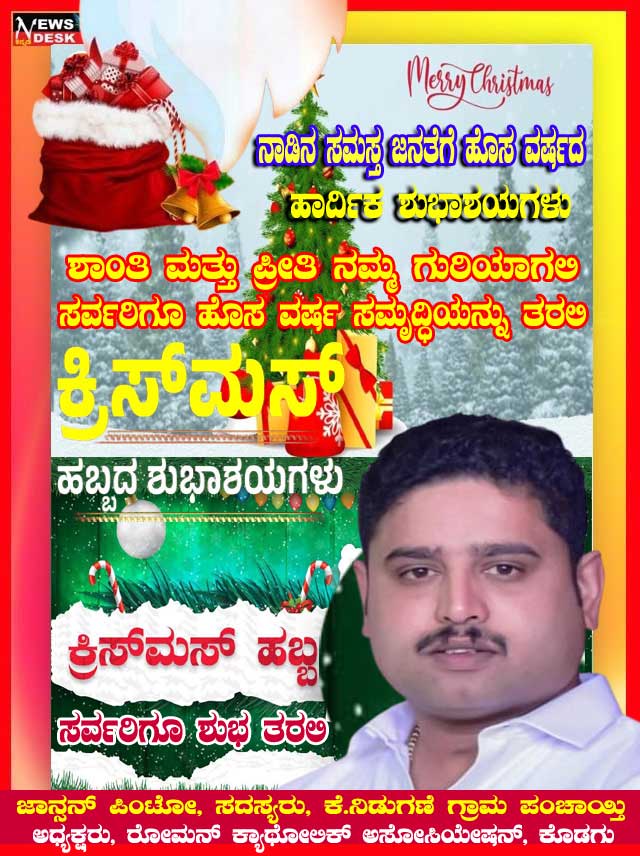 ನಾಪೋಕ್ಲು ಡಿ.25 NEWS DESK : ಮೇರಿ ಮಾತೆಯ ದೇವಾಲಯಲ್ಲಿ ಕ್ರಿಸ್ಮಸ್ ಹಬ್ಬವನ್ನು ಸಂಭ್ರಮದಿಂದ ಆಚರಿಸಲಾಯಿತು. ಸುಂದರವಾಗಿ ನಿರ್ಮಿಸಿದ್ದ ಗೋದಲಿಯಲ್ಲಿ ಬಾಲ ಏಸುವಿನ ಪ್ರತಿಕೃತಿಯನ್ನು ಧರ್ಮ ಗುರುಗಳಾದ ರೆ. ಫಾ ಜ್ಞಾನ ಪ್ರಕಾಶ್ ಪ್ರತಿಷ್ಠಾಪಿಸಿ ಬಲಿಪೂಜೆ, ಪ್ರಾರ್ಥನೆ ನೆರವೇರಿಸಿದರು. ನಂತರ ಏಸುವಿನ ಸಂದೇಶವನ್ನು ಸಾರಿ ಹಬ್ಬದ ಶುಭಾಶಯ ಕೋರಿದರು. ದೇವಾಲಯವನ್ನು ಹಬ್ಬದ ಪ್ರಯುಕ್ತ ವಿದ್ಯುತ್ ಅಲಂಕಾರಿಸಲಾಗಿತ್ತು. ಭವ್ಯವಾದ ಅಲಂಕಾರದ ಆಕರ್ಷಕ ಗೋದಲಿ ನಿರ್ಮಿಸಲಾಗಿತ್ತು. ಏಸುವಿನ ಗೋದಲಿ ನಿರ್ಮಿಸುವ ಸ್ಪರ್ಧೆ ಆಯೋಜಿಲಾಗಿದ್ದು, ಪ್ರಥಮ ಬಹುಮಾನವನ್ನು ಬಾಬಿ ವೇಗಸ್, ದ್ವಿತೀಯ ಬಹುಮಾನ ಕೆ.ಜೆ.ರಾಯ್ ಹಾಗೂ ತೃತೀಯ ಬಹುಮಾನ ಜಾಲಿ ಅಬ್ರಹಾಂ ಪಡೆದುಕೊಂಡರು. ವಿಜೇತರಿಗೆ ಧರ್ಮಗಳು ಬಹುಮಾನ ವಿತರಿಸಿದರು. ರೋಲಿಂಗ್ ಟ್ರೋಫಿಯನ್ನು ಕೆ.ಜೆ.ಜಾಯ್ ಪ್ರಾಯೋಜಕರಾಗಿದ್ದರು. ಸಾಂತಕ್ಲಾಸ್ ವೇಸದಾರಿ ಮಕ್ಕಳ ಸಾಂಸ್ಕೃತಿಕ ಕಾರ್ಯಕ್ರಮದಲ್ಲಿ ಉಡುಗೊರೆ ಕೊಟ್ಟು ಸಂಭ್ರಮಿಸಿದರು. ಈ ಸಂದರ್ಭ ಕ್ರೈಸ್ತ ಭಕ್ತರು ಹೆಚ್ಚಿನ ಸಂಖ್ಯೆಯಲ್ಲಿ ಭಾಗವಹಿಸಿದ್ದರು. ಪಾಲನಾ ಸಮಿತಿ ಸದಸ್ಯರು, ಯುವಕ ಸಂಘದ ಸದ್ಯಸರು ಇದ್ದರು.
