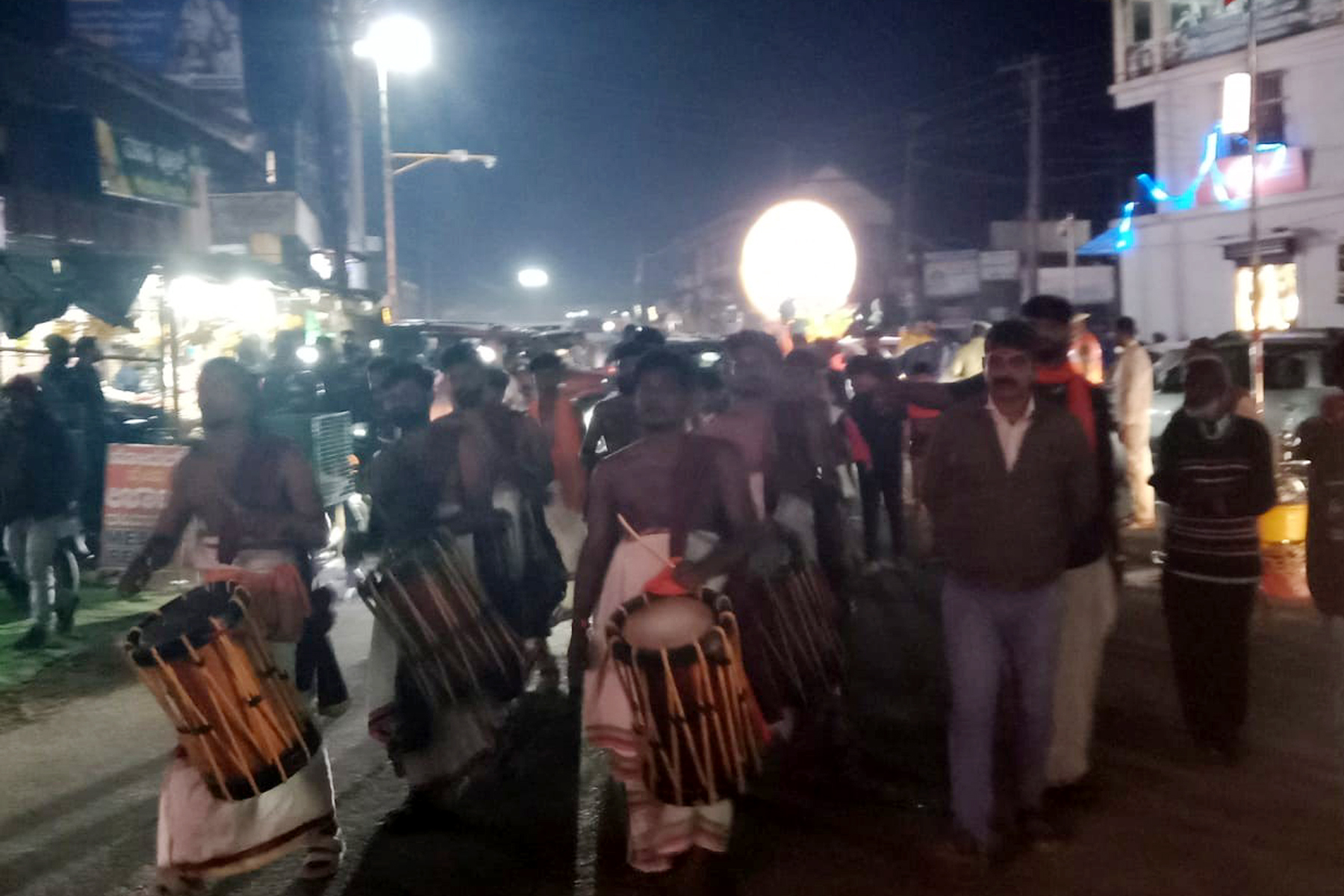 ಸುಂಟಿಕೊಪ್ಪ ಡಿ.29 NEWS DESK : ಶ್ರೀಕ್ಷೇತ್ರ ಅಯ್ಯಪ್ಪ ಸ್ವಾಮಿ ದೇವಾಲಯದ 55ನೇ ವರ್ಷದ ಮಂಡಲ ಪೂಜೋತ್ಸವ ಶ್ರದ್ಧಾಭಕ್ತಿಯಿಂದ ಜರುಗಿತು. ಮಂಡಲ ಪೂಜೋತ್ಸವದ ಅಂಗವಾಗಿ ಪಟ್ಟಣದ ಮುಖ್ಯಬೀದಿಗಳಲ್ಲಿ ಶೋಭಯಾತ್ರೆ ನಡೆಯಿತು. ಸಂಜೆ ದೇವಾಲಯದಲ್ಲಿ ಪೂಜೆ ಮುಗಿಸಿದ ನಂತರ ಅಯ್ಯಪ್ಪ ಕ್ಷೇತ್ರದಿಂದ ವಿದ್ಯುತ್ ದೀಪ ಅಲಂಕೃತ ಮಂಟಪದಲ್ಲಿ ಅಯ್ಯಪ್ಪ ಸ್ವಾಮಿ ಉತ್ಸವ ಮೂರ್ತಿಯ ಮೆರವಣಿಗೆಯೊಂದಿಗೆ ಕೇರಳದ ಆಕರ್ಷಕ ಚಂಡೆಮೇಳಗಳೊಂದಿಗೆ ಅಯ್ಯಪ್ಪ ವೃತಧಾರಿಗಳು ಹಾಗೂ ಭಕ್ತಾದಿಗಳು ಮೆರವಣಿಗೆಯಲ್ಲಿ ಅಯ್ಯಪ್ಪನ ಸ್ಮರಣೆ ಭಜನೆಗಳನ್ನು ಮಾಡುತ್ತಾ ಸಾಗಿದರು. ಮಾದಾಪುರ ರಸ್ತೆಯಲ್ಲಿರುವ ವೃಕ್ಷೋದ್ಭವ ಮಹಾಗಣಪತಿ ದೇವಾಲಯ, ಪಟ್ಟಣ ಪ್ರಮುಖ ಬೀದಿಯಲ್ಲಿ ಅಯ್ಯಪ್ಪ ಸ್ವಾಮಿಯ ಉದ್ಘೋಷದೊಂದಿಗೆ ಗದ್ದೆಹಳ್ಳದವರೆಗೆ ಸಾಗಿ, ಅಲ್ಲಿಂದ ಹಿಂತಿರುಗಿ ದೇವಾಲಯದಲ್ಲಿ ಸಮಾಪ್ತಿ ಗೊಂಡಿತು. ಮೆರವಣಿಗೆಯ ಸಂದರ್ಭ ಬಣ್ಣಬಣ್ಣದ ಸಿಡಿಮದ್ದುಗಳ ಚಿತ್ತಾರ ಜನಾಕರ್ಷಣೆಗೊಂಡಿತು. ನಂತರ ದೇವಾಲಯದಲ್ಲಿ ಪ್ರಧಾನ ಅರ್ಚಕ ಗಣೇಶ್ ಭಟ್ ಅವರ ನೇತೃತ್ವದಲ್ಲಿ ದೀಪರಾಧನೆ ನೆರವೇರಿತು. ಮಹಾಪೂಜೆ, ಮಹಾಮಂಗಳಾರತಿ, ಪ್ರಸಾದ ವಿನಿಯೋಗ ಬಳಿಕ ಅನ್ನದಾನ ನಡೆಯಿತು.