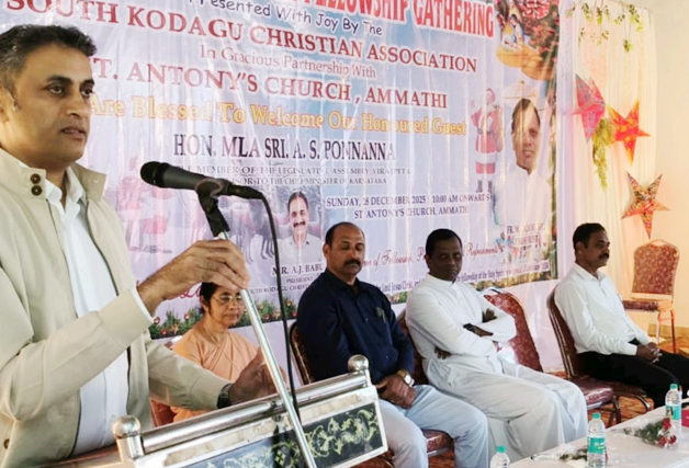 ಮಡಿಕೇರಿ ಡಿ.29 NEWSDESK : ಸರ್ವ ಧರ್ಮದಲ್ಲು ಸಮಾನತೆ ಮುಖ್ಯ ಆಗಿದ್ದಲ್ಲಿ ಮಾತ್ರ ಸದೃಢ ಸಮಾಜ ನಿರ್ಮಾಣ ಮಾಡಲು ಸಾಧ್ಯ ಎಂದು ಮುಖ್ಯಮಂತ್ರಿಗಳ ಕಾನೂನು ಸಲಹೆಗಾರರು ಹಾಗೂ ವಿರಾಜಪೇಟೆ ವಿಧಾನಸಭಾ ಕ್ಷೇತ್ರದ ಶಾಸಕ ಎ.ಎಸ್.ಪೊನ್ನಣ್ಣ ಅವರು ಹೇಳಿದರು. ಅಮ್ಮತ್ತಿಯ ಸಂತ ಅಂತೋಣಿ ದೇವಾಲಯದ ಸಭಾಂಗಣದಲ್ಲಿ ನಡೆದ ದಕ್ಷಿಣ ಕೊಡಗು ಕ್ರಿಶ್ಚಿಯನ್ ಅಸೋಸಿಯೇಷನ್ ಆಯೋಜಿಸಿದ ಕ್ರಿಸ್ಮಸ್ ಹಾಗೂ ಹೊಸ ವರ್ಷದ ಸಮಾರಂಭದಲ್ಲಿ ಮುಖ್ಯ ಅತಿಥಿಯಾಗಿ ಆಗಮಿಸಿ ಕೇಕ್ ಕತ್ತರಿಸಿ ಕಾರ್ಯಕ್ರಮ ಉದ್ಘಾಟಿಸಿ ಅವರು ಮಾತನಾಡಿದರು. ಜಾತಿ ಧರ್ಮ ಗಳಲ್ಲಿ ಸಮಾನತೆ ಕಾಣುವಂತೆ ಮುಖ್ಯಮಂತ್ರಿ ಸಿದ್ಧರಾಮಯ್ಯ ಅವರ ಸರಕಾರ ಮಾಡುತ್ತಿದ್ದು, ಜನತೆಗೆ ನೀಡಿದ ಭರವಸೆಯನ್ನು ಈಡೇರಿಸುವ ಕೆಲಸ ಮಾಡುತ್ತಿದ್ದೇವೆ ಎಂದು ತಿಳಿಸಿದರು. ಅಮ್ಮತ್ತಿಯ ಸಂತ ಅಂತೋಣಿ ದೇವಾಲಯದ ಧರ್ಮ ಗುರುಗಳಾದ ಫಾಧರ್ ಮಧುಲೈ ಮುತ್ತು ಪ್ರಾಸ್ತಾವಿಕವಾಗಿ ಮಾತನಾಡಿದ್ದರು. ದಕ್ಷಿಣ ಕೊಡಗು ಕ್ರಿಶ್ಚಿಯನ್ ಅಸೋಸಿಯೇಷನ್ ನ ಅಧ್ಯಕ್ಷ ಎ.ಜೆ.ಬಾಬು ಅಧ್ಯಕ್ಷರ ನುಡಿಗಳನ್ನು ತಿಳಿಸಿದರು. ಈ ಸಂದರ್ಭ ವೇದಿಕೆಯಲ್ಲಿ ಸಿಸ್ಟರ್ ಎಲಿಜಬೆತ್, ಸಮಾಜ ಸೇವಕರಾದ ಜಾರ್ಜ್, ಸಂಘದ ಸಹ ಕಾರ್ಯದರ್ಶಿಯಾದ ಅಂತೋಣಿ ಜೊಸೆಫ್, ಹ್ಯಾಂಡೊ ಸಿ.ಜೆ.ಖಜಾಂಚಿ ಜಾರ್ಜ್ ಎಂ, ಸಂಚಾಲಕರಾದ ಅಂಟೋನಿ ರೋಬಿನ್ ಸೇರಿದಂತೆ ಕ್ರೈಸ್ತ ಸಮುದಾಯದ ಬಾಂಧವರು ಹಾಜರಿದ್ದರು.