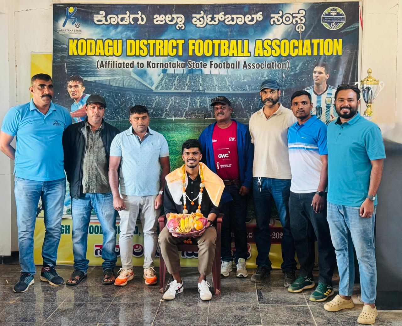 ಸುಂಟಿಕೊಪ್ಪ ಡಿ.29 NEWS DESK : ಕೊಡಗು ಜಿಲ್ಲೆಯಿಂದ ಪ್ರಥಮ ಬಾರಿಗೆ ಫುಟ್ಬಾಲ್ ತೀರ್ಪುಗಾರರಾಗಿ ಆಯ್ಕೆಯಾದ ಕೊಡಗಿನ ಧೀರಾಜ್ ರೈ ಶ್ರೀನಿವಾಸ್ ಅವರನ್ನು ಅಮ್ಮತ್ತಿಯಲ್ಲಿರುವ ಜಿಲ್ಲಾ ಫುಟ್ಬಾಲ್ ಅಸೋಸಿಯೇಷನ್ ವತಿಯಿಂದ ಸನ್ಮಾನಿಸಿ ಗೌರವಿಸಲಾಯಿತು. ಅಮ್ಮತ್ತಿಯ ಜಿಲ್ಲಾ ಫುಟ್ಬಾಲ್ ಅಸೋಸಿಯೇಷನ್ ಕಚೇರಿಯಲ್ಲಿ ನಡೆದ ಕಾರ್ಯಕ್ರಮದಲ್ಲಿ ಜಿಲ್ಲಾ ಫುಟ್ಬಾಲ್ ಅಸೋಸಿಯೇಷನ್ ಅಧ್ಯಕ್ಷ ಪಾಣತ್ತಲೆ ಜಗದೀಶ್ ಮಂದಪ್ಪ ಕಾರ್ಯದರ್ಶಿ ಪಿ.ಎ.ನಾಗೇಶ್ ಉಪಾಧ್ಯಕ್ಷರಾದ ಕ್ರಿಸ್ಟೋಫರ್ ಮಡಿಕೇರಿ, ಖಜಾಂಚಿ ದೀಪು ಮಾಚಯ್ಯ, ಸಮಿತಿ ಸದಸ್ಯರಾದ ವಿಜೇಶ್ ಆಮ್ಮತ್ತಿ ತೀರ್ಪುಗಾರರಾದ ದರ್ಶನ್ ಸುಕುಮಾರ್ ಮತ್ತು ಆಶ್ವಥ್ ಇದ್ದರು.
