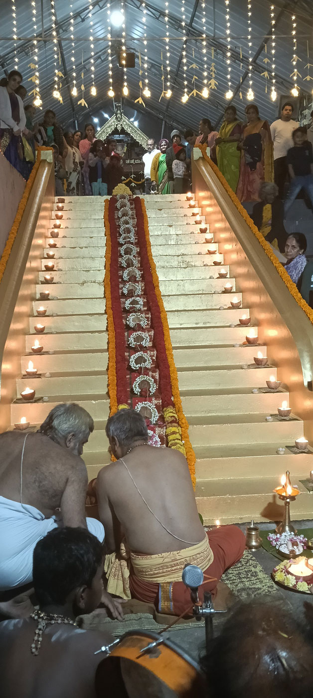 ಸೋಮವಾರಪೇಟೆ NEWS DESK ಡಿ.29 : ಸೋಮವಾರಪೇಟೆಯ ಶ್ರೀ ಮುತ್ತಪ್ಪಸ್ವಾಮಿ ಮತ್ತು ಅಯ್ಯಪ್ಪಸ್ವಾಮಿ ದೇವಾಲಯದಲ್ಲಿ ಶೃದ್ಧಾಭಕ್ತಿಯಿಂದ ಅಯ್ಯಪ್ಪ ವೃತಾಧಾರಿಗಳು ಹಾಗೂ ಭಕ್ತರ ಸಮ್ಮುಖದಲ್ಲಿ ಮಂಡಲ ಪೂಜೋತ್ಸವ ಸಂಪನ್ನಗೊಂಡಿತು. ಅರ್ಚಕ ಜಗದೀಶ ಉಡುಪ ಅವರ ಪೌರೋಹಿತ್ಯದಲ್ಲಿ ಗಣಪತಿಹೋಮದೊಂದಿಗೆ ಪೂಜೆಗಳು ಆರಂಭಗೊಂಡಿತು. ನಂತರ ದೇವಾಲಯ ಸಮಿತಿ ಹಾಗೂ ಕ್ಷೇತ್ರದ ಭಕ್ತರು ಕಳೆದ ಐದು ದಿನಗಳಿಂದ ವೃತ ಮಾಡಿ ತಂದಿದ್ದ ಪವಿತ್ರ ತುಪ್ಪವನ್ನು ಅಯ್ಯಪ್ಪಸ್ವಾಮಿಯ ಮೂರ್ತಿಗೆ ವೆಂಕಟೇಶ್ ಅಯ್ಯರ್ ಅಭಿಷೇಕವನ್ನು ನೆರವೇರಿಸಿದರು. ಅದಕ್ಕೂ ಮುನ್ನ ಅಯ್ಯಪ್ಪಸ್ವಾಮಿಯ ಆಭರಣಗಳಿಗೆ ಪೂಜೆ ಸಲ್ಲಿಸಿ ದೇವಾಲಯದ ಆವರಣದಲ್ಲಿ ಮೂರು ಸುತ್ತು ಪ್ರದಕ್ಷಿಣೆಯನ್ನು ದೇವಾಲಯ ಸಮಿತಿಯವರು ಶ್ರೀಮುತ್ತಪ್ಪಸ್ವಾಮಿ ಹಾಗೂ ಶ್ರೀಭುವನೇಶ್ವರಿ ದೇವಿಯವರ ಸನ್ನಿಧಿಯಲ್ಲಿ ಇರಿಸಿದ್ದ ಪವಿತ್ರ ತುಪ್ಪ ಹಾಗೂ ದೇವಾಲಯ ಸಮಿತಿಯ ಪದಾಧಿಕಾರಿಗಳು ಕಳೆದ ಐದು ದಿನಗಳಿಂದ ವೃತ ಮಾಡಿ ಶ್ರೀಭುವನೇಶ್ವರಿ ದೇವಿಯ ಸನ್ನಿಧಿಯಲ್ಲಿ ಇರಿಸಿದ್ದ ತುಪ್ಪದೊಂದಿಗೆ ಪ್ರದಕ್ಷಿಣೆ ನಡೆಸಿ ಮೊದಲಿಗೆ ಅಭಿಷೇಕವನ್ನು ಮಾಡಲಾಯಿತು. ನಂತರ ಭಕ್ತರು ತಂದಿದ್ದ ತುಪ್ಪವನ್ನು ಅಭಿಷೇಕ ಮಾಡುವ ಮೂಲಕ ಪೂಜೆ ಸಲ್ಲಿಸಲಾಯಿತು. ನಂತರ ಉಚ್ಛ ಪೂಜೆಯಲ್ಲಿ ಅಯ್ಯಪ್ಪಸ್ವಾಮಿಯ ಮೂರ್ತಿಯನ್ನು ವಿಶೇಷವಾದ ಆಭರಣಗಳೊಂದಿಗೆ ಅಲಂಕರಿಸಿ ಪೂಜೆ ಸಲ್ಲಿಸಿದ್ದು ವಿಶೇಷವಾಗಿತ್ತು. ಸಂಜೆ ಅಯ್ಯಪ್ಪ ವೃತಾಧಾರಿಗಳು ಮತ್ತು ಭಕ್ತರ ಭಜನೆಯೊಂದಿಗೆ ಪಡಿಪೂಜೆಯನ್ನು ವಿಶೇಷವಾಗಿ ಮಾಡಲಾಯಿತು. ನಂತರ ಅಯ್ಯಪ್ಪಸ್ವಾಮಿಗೆ ಭಕ್ತರ ಭಜನೆಯೊಂದಿಗೆ ಪುಷ್ಪಾಭಿಷೇಕ ನಡೆಸಲಾಯಿತು. ಮಹಾಮಂಗಳಾರತಿಯ ನಂತರ ಅನ್ನದಾನವನ್ನು ಏರ್ಪಡಿಸಲಾಗಿತ್ತು. ಈ ಸಂದರ್ಭ ಪೂಜಾ ಕೈಂಕರ್ಯದಲ್ಲಿ ಅರ್ಚಕರಾದ ವೆಂಕಟೇಶ್ ಹೊಳ್ಳ, ವಾದಿರಾಜ್, ಹರಿಭಟ್, ಸಹಾಯಕರಾಗಿ ಬಜೆಗುಂಡಿ ಮಣಿಸ್ವಾಮಿ ಸಹಕಾರ ನೀಡಿದರು. ದೇವಾಲಯ ಸಮಿತಿ ಅಧ್ಯಕ್ಷ ವಿನೋದ್ ಕುಮಾರ್, ಪ್ರಧಾನ ಕಾರ್ಯದರ್ಶಿ ಪ್ರಸನ್ನ ನಾಯರ್, ಉಪಾಧ್ಯಕ್ಷ ರಾಜೇಂದ್ರನ್, ಖಜಾಂಚಿ ಎನ್.ಜಿ.ಮೋಹನ್, ಸಹ ಕಾರ್ಯದರ್ಶಿ ಕೆ.ಸಿ.ದಿನೇಶ್ ಮತ್ತು ಸದಸ್ಯರುಗಳು, ಮುತ್ತಪ್ಪಸ್ವಾಮಿ ದೇವಾಲಯದ ಅರ್ಚಕ ಸುಧೀಶ್ ಇದ್ದರು.