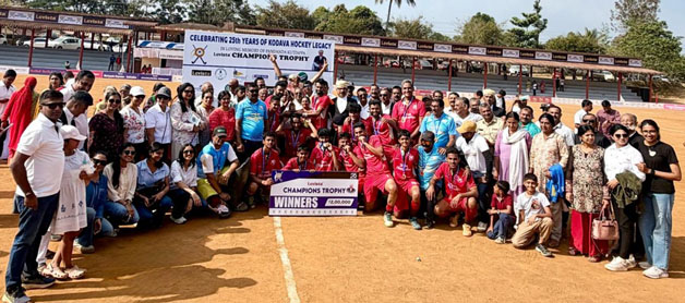 ಮಡಿಕೇರಿ NEWS DESK ಡಿ.30 : ಕೊಡವ ಕೌಟುಂಬಿಕ ಹಾಕಿ ಉತ್ಸವ ಬೆಳ್ಳಿ ಮಹೋತ್ಸವವನ್ನು ಆಚರಿಸಿಕೊಂಡ ಹಿನ್ನೆಲೆಯಲ್ಲಿ ಕೊಡವ ಹಾಕಿ ಅಕಾಡೆಮಿ ವತಿಯಿಂದ ನಡೆದ ‘ಲೆವಿಸ್ಟಾ ಕೊಡವ ಹಾಕಿ ಚಾಂಪಿಯನ್ಸ್ ಟ್ರೋಫಿ ಪಂದ್ಯಾವಳಿ’ಯ ಅಂತಿಮ ಪಂದ್ಯದಲ್ಲಿ ಚೆಪ್ಪುಡಿರ ತಂಡ ಚಾಂಪಿಯನ್ ಆಗಿ ಹೊರ ಹೊಮ್ಮಿದ್ದು, ಟ್ರೋಫಿಯನ್ನು ಗೆದ್ದು ಬೀಗಿದೆ, ಕುಲ್ಲೇಟಿರ ತಂಡ ಸೋಲೊಪ್ಪಿಕೊಂಡಿದೆ. ಮೂರ್ನಾಡಿನ ಬಾಚೆಟ್ಟೀರ ಲಾಲು ಮುದ್ದಯ್ಯ ಕ್ರೀಡಾಂಗಣದಲ್ಲಿ ಚೆಪ್ಪುಡಿರ ಮತ್ತು ಕುಲ್ಲೇಟಿರ ನಡುವೆ ನಡೆದ ಅಂತಿಮ ಪಂದ್ಯದಲ್ಲಿ 1-0 ಗೋಲಿನ ಅಂತರದಲ್ಲಿ ಚೆಪ್ಪುಡಿರ ತಂಡ ಗೆಲುವು ಸಾಧಿಸಿತು. ಚೆಪ್ಪುಡಿರ ಸೋಮಣ್ಣ ಒಂದು ಗೋಲು ದಾಖಲಿಸಿದರು. ವಿಜೇತ ಚೆಪ್ಪುಡಿರ ತಂಡಕ್ಕೆ 2 ಲಕ್ಷ ರೂ., ದ್ವಿತೀಯ ಸ್ಥಾನ ಪಡೆದ ಕುಲ್ಲೇಟಿರ ತಂಡಕ್ಕೆ 1 ಲಕ್ಷ ರೂ., ಸೆಮಿಫೈನಲ್ಗೆ ಅರ್ಹತೆ ಪಡೆದ ಮಂಡೇಪಂಡ ಮತ್ತು ಕುಪ್ಪಂಡ ತಂಡಕ್ಕೆ ತಲಾ 50 ಸಾವಿರ ರೂ. ಹಾಗೂ ಉಳಿದ 8 ತಂಡಗಳಿಗೆ ತಲಾ 25 ಸಾವಿರ ರೂ. ಬಹುಮಾನ ಮತ್ತು ಸ್ಮರಣಿಕೆಯನ್ನು ನೀಡಲಾಯಿತು. ಬೆಸ್ಟ್ ಗೋಲ್ ಕೀಪರ್ ಕುಲ್ಲೇಟಿರ ವಚನ್ ಕಾಳಪ್ಪ, ಬೆಸ್ಟ್ ಫಾರ್ವರ್ಡ್ ಚೆಪ್ಪುಡಿರ ಚೇತನ್ ಚಿಣ್ಣಪ್ಪ, ಬೆಸ್ಟ್ ಡಿಫೆಂಡರ್ ಮಂಡೇಪಂಡ ಭುವನ್ ನಾಣಯ್ಯ, ಬೆಸ್ಟ್ ಮಿಡ್ ಫೀಲ್ಡರ್ ಕುಪ್ಪಂಡ ಸೋಮಯ್ಯ, ಬೆಸ್ಟ್ ಅಪ್ ಕಮಿಂಗ್ ಪ್ಲೇಯರ್ ಚೆಪ್ಪುಡಿರ ಲೆನನ್ ಮಾದಪ್ಪ ಹಾಗೂ ಬೆಸ್ಟ್ ಪ್ಲೇಯರ್ ಆಫ್ ದಿ ಟೂರ್ನಮೆಂಟ್ ಚೆಪ್ಪುಡಿರ ಮಂದಣ್ಣ ಪ್ರಶಸ್ತಿ ಪಡೆದರು. ಐದು ದಿನಗಳ ಕಾಲ ನಡೆದ ಪಂದ್ಯಾವಳಿಯಲ್ಲಿ ಕಳೆದ 25 ವರ್ಷಗಳಲ್ಲಿ ನಡೆದ ಕೌಟುಂಬಿಕ ಕೊಡವ ಹಾಕಿ ಹಬ್ಬದ ಪ್ರಥಮ ಹಾಗೂ ದ್ವಿತೀಯ ಸ್ಥಾನ ಪಡೆದ 12 ತಂಡಗಳು ಪ್ರಶಸ್ತಿಗಾಗಿ ಪೈಪೋಟಿ ನಡೆಸಿದವು.