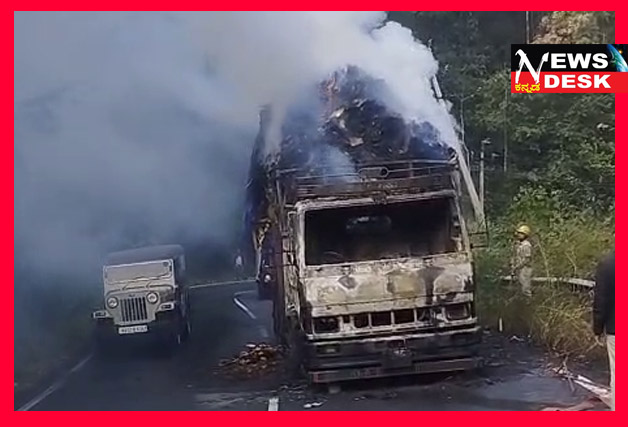ಮಡಿಕೇರಿ NEWS DESK ಜ.9 : ಮೈಸೂರಿನಿಂದ-ಮಂಗಳೂರು ಕಡೆಗೆ ಫ್ಲೈ ವುಡ್ ಶೀಟ್ಗಳನ್ನು ಸಾಗಿಸುತ್ತಿದ್ದ ಲಾರಿಯೊಂದು ಬೆಂಕಿ ಅವಘಡದಿಂದ ಸಂಪೂರ್ಣ ಸುಟ್ಟು ಕರಕಲಾದ ಘಟನೆ ಮಡಿಕೇರಿ ಗ್ರಾಮಾಂತರ ಪೊಲೀಸ್ ಠಾಣೆ ವ್ಯಾಪ್ತಿಯ ದೇವರಕೊಲ್ಲಿ ಬಳಿ ನಡೆದಿದೆ. ಫ್ಲೈ ವುಡ್ ತುಂಬಿದ್ದ ಲಾರಿ ಮೈಸೂರಿನಿಂದ ಮಡಿಕೇರಿ-ಮಾಣಿ ರಾಷ್ಟ್ರೀಯ ಹೆದ್ದಾರಿ 275ರ ದೇವರಕೊಲ್ಲಿ ಬಳಿ ಬೆಳಗಿನ ಜಾವ ಆಗಮಿಸಿದೆ. ಈ ವೇಳೆ ಇಂಜಿನ್ ಭಾಗದಿಂದ ಹೊಗೆ ಕಂಡು ಬಂದಿದ್ದು, ಚಾಲಕ ಕೆಳಕ್ಕಿಳಿದು ಪರಿಶೀಲನೆ ನಡೆಸುತ್ತಿದ್ದ ಸಂದರ್ಭ ಬೆಂಕಿ ಕಾಣಿಸಿಕೊಂಡು ಸಂಪೂರ್ಣ ಲಾರಿಯನ್ನು ವ್ಯಾಪಿಸಿದೆ.