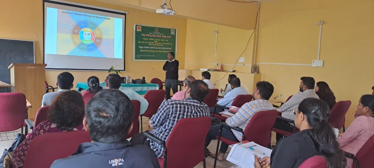 ಮಡಿಕೇರಿ ಜ.14 NEWS DESK : ಕೊಡಗು ಜಿಲ್ಲಾ ಆರೋಗ್ಯ ಮತ್ತು ಕುಟುಂಬ ಕಲ್ಯಾಣ ಇಲಾಖೆ ವತಿಯಿಂದ ರಾಷ್ಟ್ರೀಯ ಹವಾಮಾನ ಬದಲಾವಣೆ ಮತ್ತು ಮಾನವ ಆರೋಗ್ಯ ಕಾರ್ಯಕ್ರಮದಡಿಯಲ್ಲಿ ಕೊಡಗು ಜಿಲ್ಲೆಯ ವೈದ್ಯಾಧಿಕಾರಿಗಳಿಗೆ ತರಬೇತಿ ನೀಡಲಾಯಿತು. ಜಿಲ್ಲಾ ಅರೋಗ್ಯ ಮತ್ತು ಕುಟುಂಬ ಕಲ್ಯಾಣ ಅಧಿಕಾರಿ ಡಾ.ಸತೀಶ್ ಕುಮಾರ್ ಕಾರ್ಯಕ್ರಮವನ್ನು ಉದ್ಘಾಟಿಸಿದರು. ಆರೋಗ್ಯ ಇಲಾಖೆಯ ಜಿಲ್ಲಾ ನಿಗ್ರಹದಳ ಅಧಿಕಾರಿ ಮತ್ತು ಕಾರ್ಯಕ್ರಮ ಅನುಷ್ಠಾನ ಅಧಿಕಾರಿಗಳಾದ ಡಾ.ಆನಂದ್, ಕೊಡಗು ವೈದ್ಯಕೀಯ ವಿಜ್ಞಾನಗಳ ಸಂಸ್ಥೆ ಹಾಗೂ ಬೋದಕ ಆಸ್ಪತ್ರೆ ಯ ಸಹಾಯಕ ಪ್ರಾಧ್ಯಾಪಕರಾದ ಡಾ. ಮಹೇಶ್ ಹವಾಮಾನ ಬದಲಾವಣೆ ಉಷ್ಣ ಅಲೆಗಳು ಮತ್ತು ಎಚ್ಚರಿಕೆಗಳು, ಉಷ್ಣ ಒತ್ತಡದ ವರ್ಗೀಕರಣ ಕ್ಲಿನಿಕಲ್ ಲಕ್ಷಣಗಳು ಮತ್ತು ಚಿಕಿತ್ಸೆಗಳು, ಶಾಖದ ಬದಲಿಗೆ ಲಕ್ಷಣಗಳು ಮತ್ತು ಕಾರಣಗಳು, ಟ್ರೀಟ್ಮೆಂಟ್ ಪ್ರೋಟೋಕಾಲ್, ಹೀಟ್ ಸ್ಟ್ರೋಕ್ , ದುರ್ಬಲ ಗುಂಪು ( ಗರ್ಭಿಣಿ ಬಾಣಂತಿ ಮಕ್ಕಳು ವಯೋ ವೃದ್ಧರು ), ತುರ್ತು ಪರಿಸ್ಥಿತಿ ಮತ್ತು ಅನಿರೀಕ್ಷಿತ ಘಟನೆಗಳ ತುರ್ತು ಸಿದ್ಧತೆ, ಬೇಸಿಗೆ ಪೂರ್ವ, ಬೇಸಿಗೆ ಸಮಯ, ಬೇಸಿಗೆ ನಂತರ ಮಳೆಯ ಪೂರ್ವ, ಮಳೆ ಸಮಯ, ಮಳೆ ನಂತರದ ಆರೋಗ್ಯ ಸಮಸ್ಯೆ ಗಳ ನಿರ್ವಹಣೆ ಬಗ್ಗೆ ವೈದ್ಯಾಧಿಕಾರಿಗಳಿಗೆ ತರಬೇತಿ ನೀಡಿದರು. ಕಾರ್ಯಕ್ರಮದಲ್ಲಿ ಜಿಲ್ಲಾ ಶಸ್ತ್ರ ಚಿಕಿತ್ಸಕರಾದ ಡಾ.ನಂಜುಂಡಯ್ಯ ಜಿಲ್ಲಾ ಕ್ಷಯ ರೋಗ ನಿಯಂತ್ರಣ ಅಧಿಕಾರಿ ಡಾ.ಸನತ್ ಕುಮಾರ್ , ಜಿಲ್ಲಾ ತರಬೇತಿ ಕೇಂದ್ರ ಪ್ರಾಂಶುಪಾಲರಾದ ಡಾ.ಅಬ್ದುಲ್ ಅಜೀಜ್, ಜಿಲ್ಲಾ ಅರೋಗ್ಯ ಶಿಕ್ಷಣಾಧಿಕಾರಿ ಶಾಂತಿ, ರೋಜಾ ಹಾಗೂ ಕಿಶೋರ್ ಪಾಲ್ಗೊಂಡಿದ್ದರು.