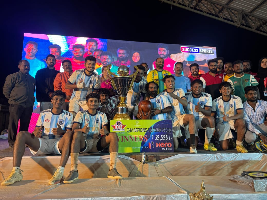 ಮಡಿಕೇರಿ ಜ.15 NEWS DESK : ಮಂಜಿನ ನಗರಿ ಮಡಿಕೇರಿಯ ಗಾಂಧಿ ಮೈದಾನವು ಕಳೆದ ಎರಡು ದಿನಗಳ ಕಾಲ ಕ್ರೀಡೆ, ತಂತ್ರಜ್ಞಾನ ಹಾಗೂ ಸ್ನೇಹಸಂಬಂಧಗಳ ಸಂಗಮಕ್ಕೆ ಸಾಕ್ಷಿಯಾಯಿತು. ಶ್ರೀ ರಾಜೇಶ್ವರಿ ವಿದ್ಯಾಲಯದ ಆಶ್ರಯದಲ್ಲಿ ಆಯೋಜಿಸಲಾದ ಎಸ್ಆರ್ವಿ ಫುಟ್ಬಾಲ್ ಚಾಂಪಿಯನ್ ಲೀಗ್ ಸೀಸನ್–3, ಮೋಟೋ ಎಕ್ಸ್ಪೋ ಹಾಗೂ ಹಳೆ ವಿದ್ಯಾರ್ಥಿಗಳ ಸಮಾಗಮ ಕಾರ್ಯಕ್ರಮಗಳು ಅಪಾರ ಜನಸಂದಣಿ, ಉತ್ಸಾಹ ಹಾಗೂ ಸಂಭ್ರಮದ ವಾತಾವರಣದಲ್ಲಿ ಯಶಸ್ವಿಯಾಗಿ ನಡೆಯಿತು. :: ಫುಟ್ಬಾಲ್ ಲೀಗ್ಗೆ ತೆರೆ :: ಹೊನಲು ಬೆಳಕಿನ ವ್ಯವಸ್ಥೆಯೊಂದಿಗೆ ನಡೆದ ಎಸ್ಆರ್ವಿ ಫುಟ್ಬಾಲ್ ಚಾಂಪಿಯನ್ ಲೀಗ್ ಸೀಸನ್–3ರ ಫೈನಲ್ ಪಂದ್ಯದಲ್ಲಿ ಟೀಮ್ ಒನ್ ಟಚ್ ತಂಡವು ಟೀಮ್ ಅಶ್ ರನ್ನರ್ಸ್ ವಿರುದ್ಧ 1–0 ಗೋಲುಗಳ ಅಂತರದಲ್ಲಿ ಜಯ ಸಾಧಿಸಿ ಚಾಂಪಿಯನ್ ಪಟ್ಟ ಅಲಂಕರಿಸಿತು. ಟೀಮ್ ಅಶ್ ರನ್ನರ್ಸ್ ರನ್ನರ್ಸ್-ಅಪ್ ಸ್ಥಾನ ಪಡೆದುಕೊಂಡಿತು. ಮೂರನೇ ಸ್ಥಾನವನ್ನು ಸ್ಟ್ರೈಕರ್ಸ್ ಸ್ಕ್ವಾಡ್, ನಾಲ್ಕನೇ ಸ್ಥಾನವನ್ನು ಆರ್ಆರ್ಎಫ್ಸಿ ತಂಡ ಪಡೆದುಕೊಂಡವು. ಒಟ್ಟು 12 ತಂಡಗಳು ಟ್ರೋಫಿಗಾಗಿ ಸೆಣಸಾಡಿದ ಈ ಲೀಗ್ನಲ್ಲಿ ನೇರ ಪ್ರಸಾರ, ಶಿಸ್ತಿನ ಸಂಘಟನೆ ಹಾಗೂ ಕ್ರೀಡಾಸ್ಫೂರ್ತಿ ಕ್ರೀಡಾಭಿಮಾನಿಗಳ ಮೆಚ್ಚುಗೆಗೆ ಪಾತ್ರವಾಯಿತು. :: ಕ್ವಾಲಿಫೈಯರ್ ಪಂದ್ಯಗಳ ರೋಚಕತೆ :: ಮೊದಲ ಕ್ವಾಲಿಫೈಯರ್ನಲ್ಲಿ ಟೀಮ್ ಅಶ್ ರನ್ನರ್ಸ್ 1–0 ಗೋಲುಗಳ ಜಯದೊಂದಿಗೆ ನೇರವಾಗಿ ಫೈನಲ್ ಪ್ರವೇಶಿಸಿತು. ಎಲಿಮಿನೇಟರ್ ಪಂದ್ಯದಲ್ಲಿ ಸ್ಟ್ರೈಕರ್ಸ್ ಸ್ಕ್ವಾಡ್ ಪೆನಾಲ್ಟಿ ಶೂಟ್ಔಟ್ನಲ್ಲಿ ಆರ್ಆರ್ಎಫ್ಸಿ ತಂಡವನ್ನು 3–2 ಅಂತರದಲ್ಲಿ ಮಣಿಸಿ ಕ್ವಾಲಿಫೈಯರ್ಗೆ ಲಗ್ಗೆ ಇಟ್ಟಿತು. ದ್ವಿತೀಯ ಕ್ವಾಲಿಫೈಯರ್ನಲ್ಲಿ ಟೀಮ್ ಒನ್ ಟಚ್ ಹಾಗೂ ಸ್ಟ್ರೈಕರ್ಸ್ ಸ್ಕ್ವಾಡ್ ನಡುವಿನ ಪಂದ್ಯ 1–1 ಸಮಬಲದಲ್ಲಿ ಅಂತ್ಯಗೊಂಡು, ಪೆನಾಲ್ಟಿ ಶೂಟ್ಔಟ್ನಲ್ಲಿ ಟೀಮ್ ಒನ್ ಟಚ್ 5–4 ಅಂತರದಲ್ಲಿ ಜಯ ಸಾಧಿಸಿ ಫೈನಲ್ ಪ್ರವೇಶಿಸಿತು. :: ವೈಯಕ್ತಿಕ ಪ್ರಶಸ್ತಿಗಳು :: ಹೈ ಸ್ಕೋರರ್ – ರೌಫ್ (ಟೀಮ್ ಅಶ್), ಬೆಸ್ಟ್ ಡಿಫೆಂಡರ್ – ಅಭಯ್ (ಟೀಮ್ ಅಶ್), ಉತ್ತಮ ಗೋಲ್ ಕೀಪರ್ – ಅಶ್ರಫ್ (ಟೀಮ್ ಒನ್ ಟಚ್), ಉದಯೋನ್ಮುಖ ಆಟಗಾರ – ಸೂಫಿಯನ್ (ಆರ್ಆರ್ಎಫ್ಸಿ), ಸರಣಿ ಪುರುಷೋತ್ತಮ – ಶಮನ್ (ಟೀಮ್ ಒನ್ ಟಚ್), ಮೋಟೋ ಎಕ್ಸ್ಪೋಗೆ ಜನಾಕರ್ಷಣೆ. ಫುಟ್ಬಾಲ್ ಪಂದ್ಯಾವಳಿಯೊಂದಿಗೆ ಆಯೋಜಿಸಲಾದ ಮೋಟೋ ಎಕ್ಸ್ಪೋ ಕಾರ್ಯಕ್ರಮವು ಯುವಜನತೆಯಲ್ಲಿ ವಿಶೇಷ ಆಸಕ್ತಿ ಮೂಡಿಸಿತು. ವಿವಿಧ ಹೊಸ ಮಾದರಿಯ ಬೈಕ್ಗಳು, ತಂತ್ರಜ್ಞಾನಾಧಾರಿತ ವಾಹನಗಳು ಹಾಗೂ ಆಧುನಿಕ ಸುರಕ್ಷತಾ ವೈಶಿಷ್ಟ್ಯಗಳ ಪ್ರದರ್ಶನಕ್ಕೆ ಸಾರ್ವಜನಿಕರಿಂದ ಭಾರೀ ಸ್ಪಂದನೆ ವ್ಯಕ್ತವಾಯಿತು. ಆಟೋಮೊಬೈಲ್ ಕ್ಷೇತ್ರದ ಬೆಳವಣಿಗೆ, ಇಂಧನ ದಕ್ಷತೆ ಹಾಗೂ ಭವಿಷ್ಯದ ವಾಹನ ತಂತ್ರಜ್ಞಾನ ಕುರಿತು ಮಾಹಿತಿ ನೀಡಲಾಯಿತು. :: ಹಳೆ ವಿದ್ಯಾರ್ಥಿಗಳ ಸಮಾಗಮ – ಸ್ಮರಣೆಯ ಕ್ಷಣಗಳು ::
