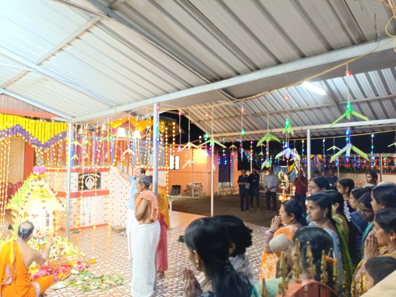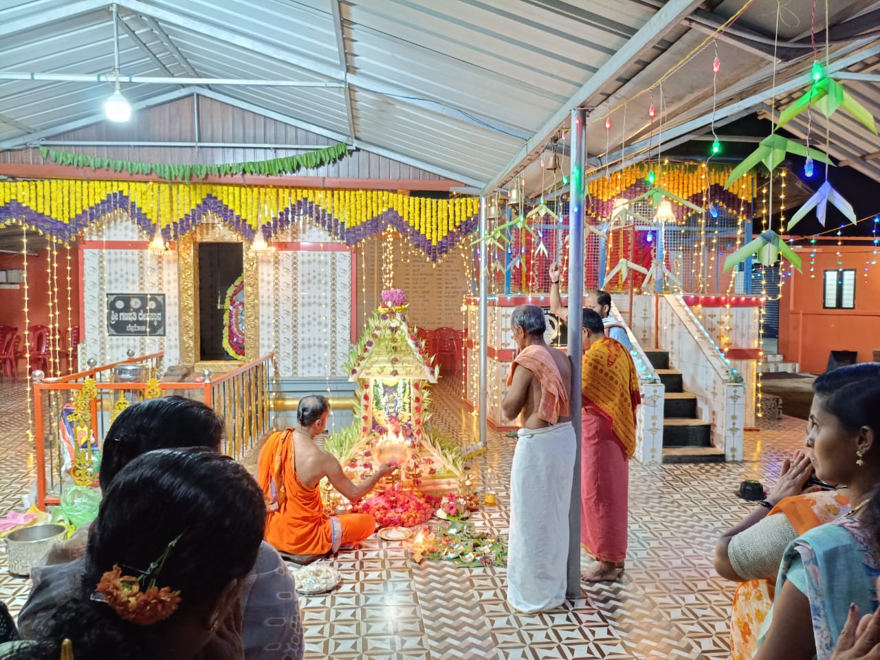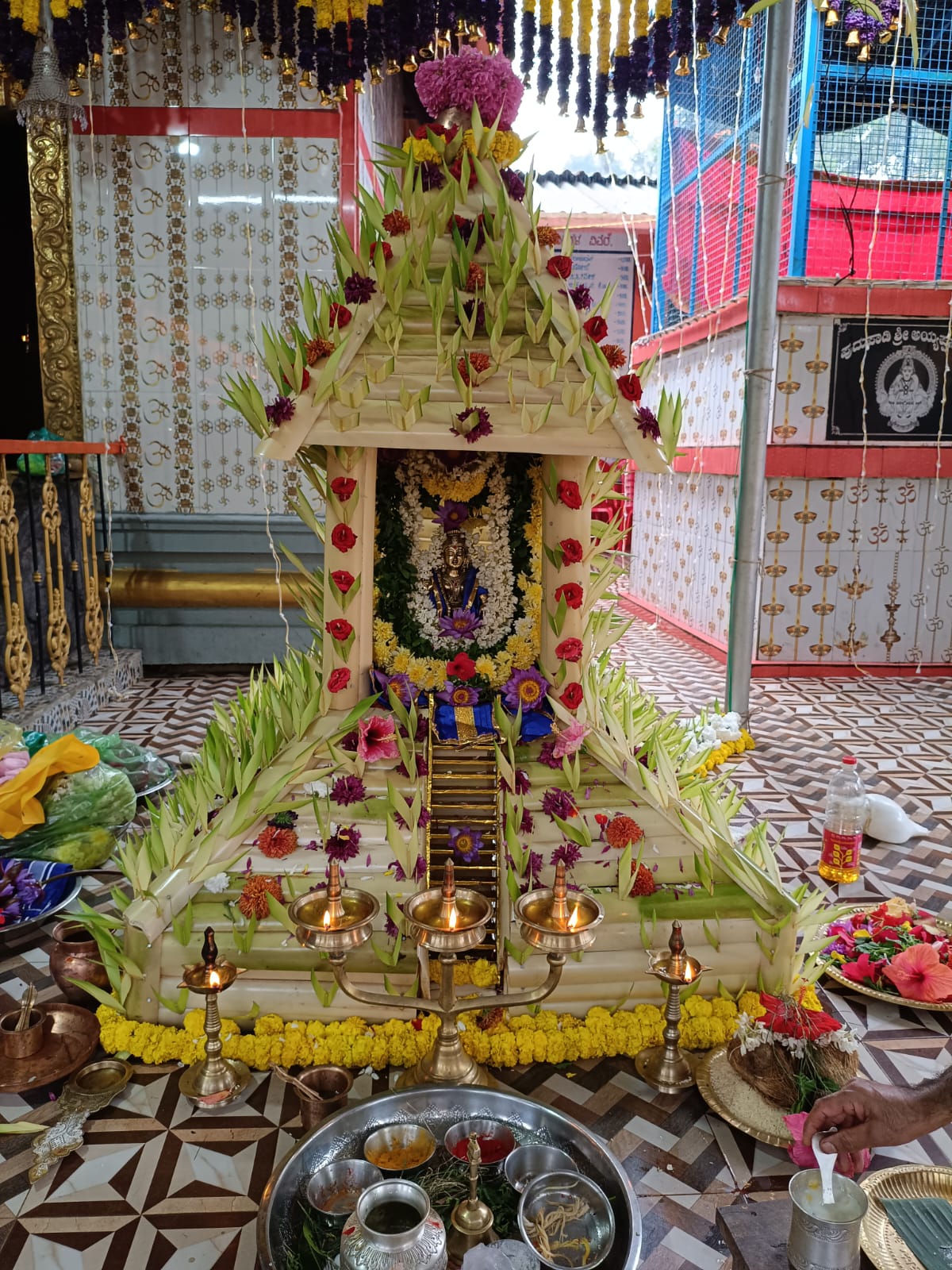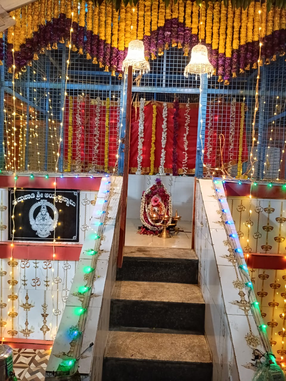 ವಿರಾಜಪೇಟೆ ಜ.15 NEWS DESK : ಬೇಟೋಳಿ ರಾಮನಗರದಲ್ಲಿರುವ ಪುದುಪಾಡಿ ಶ್ರೀ ಅಯ್ಯಪ್ಪ ಸ್ವಾಮಿ ದೇವಾಲಯದಲ್ಲಿ ಶ್ರೀ ಅಯ್ಯಪ್ಪ ಮಹೋತ್ಸವ ಹಾಗೂ ಮಕರ ಜ್ಯೋತಿ ಪೂಜಾ ಪೂಜೆ ಶ್ರದ್ಧಾಭಕ್ತಿಯಿಂದ ಜರುಗಿತು. ದಕ್ಷಿಣ ಕನ್ನಡ ಜಿಲ್ಲೆಯ ಪುತ್ತೂರಿನ ಅರ್ಚಕರಾದ ಪ್ರವೀಣ್ ಭಟ್ ನೇತೃತ್ವದಲ್ಲಿ ವಿವಿಧ ಧಾರ್ಮಿಕ ಪೂಜಾ ಕೈಂಕರ್ಯಗಳು ಜರುಗಿತು. ಶ್ರೀ ಅಯ್ಯಪ್ಪ ಉತ್ಸವದ ಪ್ರಯುಕ್ತ ದೇವಾಲಯದಲ್ಲಿ ದೇವತಾ ಪ್ರಾರ್ಥನೆ, ಗಣಪತಿ ಹೋಮ ನೆರವೇರಿತು. ಶ್ರೀ ಅಯ್ಯಪ್ಪ ದೇವಸ್ಥಾನದ ಒಳ ಆವರಣದಲ್ಲಿರುವ ಶ್ರೀ ಮಹಾಗಣಪತಿ, ಶ್ರೀ ನಾಗ, ಶ್ರೀ ವನದುರ್ಗೆ ದೇವರುಗಳ ಗುಡಿಯಲ್ಲಿ ಪೂಜೆಯನ್ನು ಸಲ್ಲಿಸಲಾಯಿತು. ನಂತರ ಅರ್ಚಕರು ಶ್ರೀ ಅಯ್ಯಪ್ಪ ಸ್ವಾಮಿಗೆ ಹೂವಿನ ಅಲಂಕಾರ ಪೂಜೆ ಸಲ್ಲಿಸಿದರು. ದೇವಸ್ಥಾನದ ಒಳ ಆವರಣದಲ್ಲಿ ನಿರ್ಮಿಸಲಾಗಿದ್ದ ಹದಿನೆಂಟು ಮೆಟ್ಟಿಲುಗಳುಳ್ಳ ಮಂಟಪದಲ್ಲಿ ಶ್ರೀ ಅಯ್ಯಪ್ಪ ಸ್ವಾಮಿಯ ಮೂರ್ತಿಯನ್ನು ಪ್ರತಿಷ್ಠಾಪಿಸಿ ವಿಶೇಷ ಪೂಜೆಯನ್ನು ಸಲ್ಲಿಸಲಾಯಿತು. ಅರ್ಚಕರು ಹಾಲಿನ ಅಭಿಷೇಕ, ತುಪ್ಪದ ಅಭಿಷೇಕ, ಸೀಯಾಳದ ಅಭಿಷೇಕ ಹಾಗೂ ಪಂಚಾಮೃತ ಅಭಿಷೇಕ, ಮಹಾ ಮಂಗಳಾರತಿ ಹಾಗೂ ಪ್ರಸಾದ ವಿತರಣೆ ನಡೆಯಿತು. ಸಂಜೆ ಶಬರಿಮಲೆಯಲ್ಲಿ ಮಕರ ಜ್ಯೋತಿಯ ದರ್ಶನ ಬಳಿಕ ಪುದುಪಾಡಿ ಶ್ರೀ ಅಯ್ಯಪ್ಪ ದೇವಸ್ಥಾನದಲ್ಲಿ ಮಕರ ಜ್ಯೋತಿ ಪೂಜೆಯು ಶಾಸ್ತ್ರೋಕ್ತವಾಗಿ ಜರುಗಿತು. ಈ ಸಂದರ್ಭ ಶ್ರೀ ಅಯ್ಯಪ್ಪ ಮೂರ್ತಿಯ ಮಂಟಪದ ಎದುರು ಪಡಿ ಪೂಜೆ ನೆರವೇರಿತು. ಅರ್ಚಕರು ಅಯ್ಯಪ್ಪ ಸ್ವಾಮಿಗೆ ಸಂಕಲ್ಪವನ್ನು ಸಲ್ಲಿಸಿ ವಿಶೇಷ ಪೂಜೆಯನ್ನು ಸಲ್ಲಿಸಿದರು. ಮಹಿಳಾ ಭಜನಾ ಮಂಡಳಿಯ ವತಿಯಿಂದ ಭಜನಾವಳಿ, ಸ್ಥಳೀಯ ಶಾಲಾ ಮಕ್ಕಳಿಂದ ಕುಣಿತ ಭಜನೆ ನಡೆಯಿತು. ಶ್ರೀ ಅಯ್ಯಪ್ಪ ಮಹೋತ್ಸವದ ಪ್ರಯುಕ್ತ ಮಧ್ಯಾಹ್ನ ಹಾಗೂ ರಾತ್ರಿ ಭಕ್ತಾದಿಗಳಿಗೆ ಅನ್ನದಾನ ನೆರವೇರಿತು. ಸ್ಥಳೀಯ ಚಿತ್ರಕಲಾ ಕಲಾವಿದರಾದ ಸುನಾದ್ ಭಾರದ್ವಾಜ್ ಶ್ರೀ ಅಯ್ಯಪ್ಪ ಸಭಾಭವನಕ್ಕೆ ಕ್ಯಾನ್ವಾಸ್ ಪೇಂಟಿಂಗ್ ನಲ್ಲಿ ರಚಿಸಿದ ಗಣಪತಿ ಹಾಗೂ ಅಯ್ಯಪ್ಪ ಸ್ವಾಮಿ ದೇವರುಗಳ ಚಿತ್ರ ಕಲಾಕೃತಿಗಳನ್ನು ದೇವಸ್ಥಾನದ ಆಡಳಿತ ಮಂಡಳಿಯವರಿಗೆ ಹಸ್ತಾಂತರಿಸಿದರು. :: ಮಹಾಗಣಪತಿ ದೇವರಿಗೆ ಬೆಳ್ಳಿಯ ಮುಖ ಕವಚದ ಸಮರ್ಪಣೆ :: ಶ್ರೀ ಅಯ್ಯಪ್ಪ ಮಹೋತ್ಸವದ ಸಂದರ್ಭದಲ್ಲಿ ತಮ್ಮ ಮನದ ಇಷ್ಟಾರ್ಥಗಳು ಈಡೇರಿದ ಫಲವಾಗಿ ದಾನಿಗಳು ಹಾಗೂ ದೇವಸ್ಥಾನದ ಆಡಳಿತ ಮಂಡಳಿಯ ಉಪಾಧ್ಯಕ್ಷರಾದ ಬಿ.ಜಿ.ನಂದ ಬೋರ್ಕರ್, ಗೀತಾ ಬೋರ್ಕರ್ ದಂಪತಿಗಳು ಹಾಗೂ ಬೆಂಗಳೂರಿನ ದಾನಿಗಳಾದ ಪದ್ಮನಾಭ ಮಡ್ಕೇಕರ್, ಜಯ ದಂಪತಿಗಳು ದೇವಸ್ಥಾನದ ಒಳ ಆವರಣದಲ್ಲಿರುವ ಶ್ರೀ ಮಹಾಗಣಪತಿ ದೇವರಿಗೆ ಬೆಳ್ಳಿಯ ಮುಖ ಕವಚ ಹಾಗೂ ಶ್ರೀ ನಾಗದೇವರಿಗೆ ಹಿತ್ತಾಳೆಯ ಮುಖ ಕವಚವನ್ನು ಅರ್ಪಿಸಿದರು. ಈ ಸಂದರ್ಭದಲ್ಲಿ ದೇವಸ್ಥಾನದ ಆಡಳಿತ ಮಂಡಳಿಯ ಅಧ್ಯಕ್ಷ ಸಂತೋಷ್, ಉಪಾಧ್ಯಕ್ಷರುಗಳಾದ ನಂದ ಬೋರ್ಕರ್, ಶೈಲೇಶ್ ಕಾಮತ್, ಕಾರ್ಯದರ್ಶಿ ಶಾಂತಿಭೂಷಣ್, ಸದಸ್ಯರುಗಳಾದ ರಾಮಶರ್ಮ, ವಾಸುದೇವ ಬಿ.ಆರ್., ಶ್ರೀಕಾಂತ್ ರಾವ್, ವೀಣಾ, ತೀರ್ಥರಾಮ್, ಸುಮನ ಬಿ.ಪಿ., ದಿನೇಶ್, ಸೀತಮ್ಮ ಹಾಗೂ ಭಕ್ತಾದಿಗಳು ಹಾಜರಿದ್ದರು.