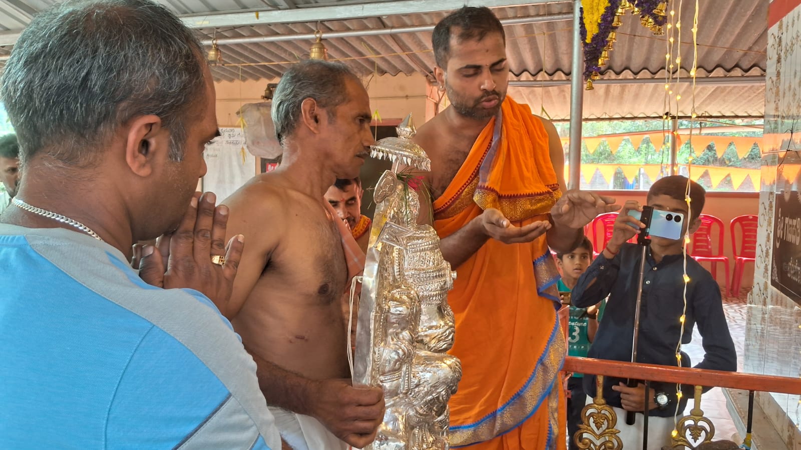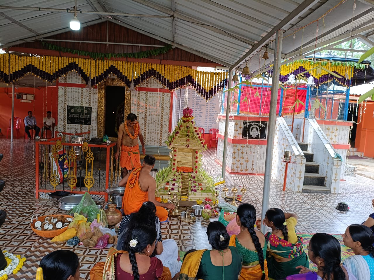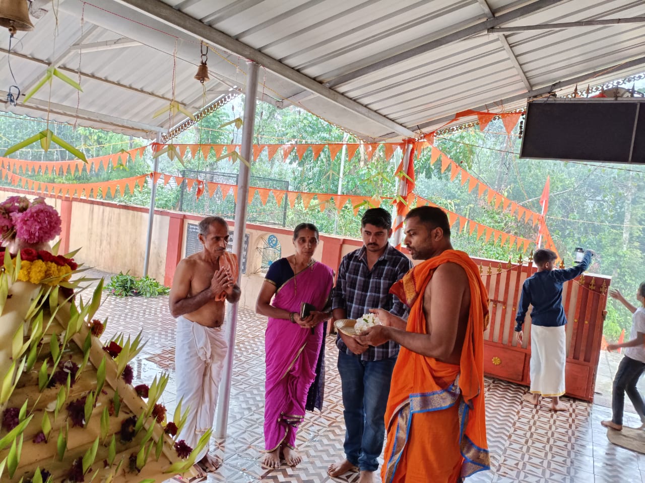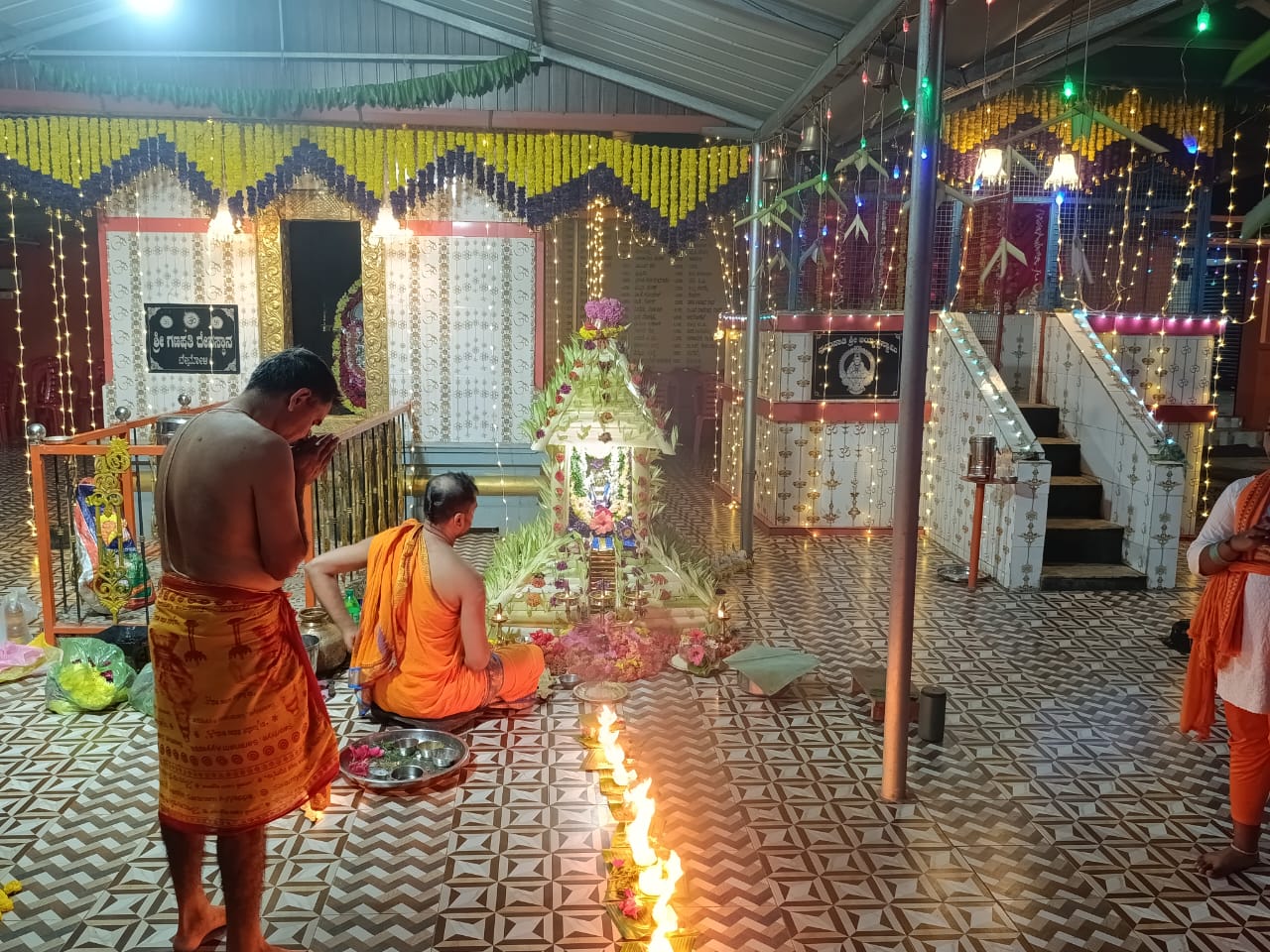 ವಿರಾಜಪೇಟೆ ಜ.15 NEWS DESK : ಬೇಟೋಳಿ ರಾಮನಗರದಲ್ಲಿರುವ ಪುದುಪಾಡಿ ಶ್ರೀ ಅಯ್ಯಪ್ಪ ಸ್ವಾಮಿ ದೇವಾಲಯದಲ್ಲಿ ಶ್ರೀ ಅಯ್ಯಪ್ಪ ಮಹೋತ್ಸವ ಹಾಗೂ ಮಕರ ಜ್ಯೋತಿ ಪೂಜಾ ಪೂಜೆ ಶ್ರದ್ಧಾಭಕ್ತಿಯಿಂದ ಜರುಗಿತು. ದಕ್ಷಿಣ ಕನ್ನಡ ಜಿಲ್ಲೆಯ ಪುತ್ತೂರಿನ ಅರ್ಚಕರಾದ ಪ್ರವೀಣ್ ಭಟ್ ನೇತೃತ್ವದಲ್ಲಿ ವಿವಿಧ ಧಾರ್ಮಿಕ ಪೂಜಾ ಕೈಂಕರ್ಯಗಳು ಜರುಗಿತು. ಶ್ರೀ ಅಯ್ಯಪ್ಪ ಉತ್ಸವದ ಪ್ರಯುಕ್ತ ದೇವಾಲಯದಲ್ಲಿ ದೇವತಾ ಪ್ರಾರ್ಥನೆ, ಗಣಪತಿ ಹೋಮ ನೆರವೇರಿತು. ಶ್ರೀ ಅಯ್ಯಪ್ಪ ದೇವಸ್ಥಾನದ ಒಳ ಆವರಣದಲ್ಲಿರುವ ಶ್ರೀ ಮಹಾಗಣಪತಿ, ಶ್ರೀ ನಾಗ, ಶ್ರೀ ವನದುರ್ಗೆ ದೇವರುಗಳ ಗುಡಿಯಲ್ಲಿ ಪೂಜೆಯನ್ನು ಸಲ್ಲಿಸಲಾಯಿತು. ನಂತರ ಅರ್ಚಕರು ಶ್ರೀ ಅಯ್ಯಪ್ಪ ಸ್ವಾಮಿಗೆ ಹೂವಿನ ಅಲಂಕಾರ ಪೂಜೆ ಸಲ್ಲಿಸಿದರು. ದೇವಸ್ಥಾನದ ಒಳ ಆವರಣದಲ್ಲಿ ನಿರ್ಮಿಸಲಾಗಿದ್ದ ಹದಿನೆಂಟು ಮೆಟ್ಟಿಲುಗಳುಳ್ಳ ಮಂಟಪದಲ್ಲಿ ಶ್ರೀ ಅಯ್ಯಪ್ಪ ಸ್ವಾಮಿಯ ಮೂರ್ತಿಯನ್ನು ಪ್ರತಿಷ್ಠಾಪಿಸಿ ವಿಶೇಷ ಪೂಜೆಯನ್ನು ಸಲ್ಲಿಸಲಾಯಿತು. ಅರ್ಚಕರು ಹಾಲಿನ ಅಭಿಷೇಕ, ತುಪ್ಪದ ಅಭಿಷೇಕ, ಸೀಯಾಳದ ಅಭಿಷೇಕ ಹಾಗೂ ಪಂಚಾಮೃತ ಅಭಿಷೇಕ, ಮಹಾ ಮಂಗಳಾರತಿ ಹಾಗೂ ಪ್ರಸಾದ ವಿತರಣೆ ನಡೆಯಿತು. ಸಂಜೆ ಶಬರಿಮಲೆಯಲ್ಲಿ ಮಕರ ಜ್ಯೋತಿಯ ದರ್ಶನ ಬಳಿಕ ಪುದುಪಾಡಿ ಶ್ರೀ ಅಯ್ಯಪ್ಪ ದೇವಸ್ಥಾನದಲ್ಲಿ ಮಕರ ಜ್ಯೋತಿ ಪೂಜೆಯು ಶಾಸ್ತ್ರೋಕ್ತವಾಗಿ ಜರುಗಿತು. ಈ ಸಂದರ್ಭ ಶ್ರೀ ಅಯ್ಯಪ್ಪ ಮೂರ್ತಿಯ ಮಂಟಪದ ಎದುರು ಪಡಿ ಪೂಜೆ ನೆರವೇರಿತು. ಅರ್ಚಕರು ಅಯ್ಯಪ್ಪ ಸ್ವಾಮಿಗೆ ಸಂಕಲ್ಪವನ್ನು ಸಲ್ಲಿಸಿ ವಿಶೇಷ ಪೂಜೆಯನ್ನು ಸಲ್ಲಿಸಿದರು. ಮಹಿಳಾ ಭಜನಾ ಮಂಡಳಿಯ ವತಿಯಿಂದ ಭಜನಾವಳಿ, ಸ್ಥಳೀಯ ಶಾಲಾ ಮಕ್ಕಳಿಂದ ಕುಣಿತ ಭಜನೆ ನಡೆಯಿತು. ಶ್ರೀ ಅಯ್ಯಪ್ಪ ಮಹೋತ್ಸವದ ಪ್ರಯುಕ್ತ ಮಧ್ಯಾಹ್ನ ಹಾಗೂ ರಾತ್ರಿ ಭಕ್ತಾದಿಗಳಿಗೆ ಅನ್ನದಾನ ನೆರವೇರಿತು. ಸ್ಥಳೀಯ ಚಿತ್ರಕಲಾ ಕಲಾವಿದರಾದ ಸುನಾದ್ ಭಾರದ್ವಾಜ್ ಶ್ರೀ ಅಯ್ಯಪ್ಪ ಸಭಾಭವನಕ್ಕೆ ಕ್ಯಾನ್ವಾಸ್ ಪೇಂಟಿಂಗ್ ನಲ್ಲಿ ರಚಿಸಿದ ಗಣಪತಿ ಹಾಗೂ ಅಯ್ಯಪ್ಪ ಸ್ವಾಮಿ ದೇವರುಗಳ ಚಿತ್ರ ಕಲಾಕೃತಿಗಳನ್ನು ದೇವಸ್ಥಾನದ ಆಡಳಿತ ಮಂಡಳಿಯವರಿಗೆ ಹಸ್ತಾಂತರಿಸಿದರು. :: ಮಹಾಗಣಪತಿ ದೇವರಿಗೆ ಬೆಳ್ಳಿಯ ಮುಖ ಕವಚದ ಸಮರ್ಪಣೆ :: ಶ್ರೀ ಅಯ್ಯಪ್ಪ ಮಹೋತ್ಸವದ ಸಂದರ್ಭದಲ್ಲಿ ತಮ್ಮ ಮನದ ಇಷ್ಟಾರ್ಥಗಳು ಈಡೇರಿದ ಫಲವಾಗಿ ದಾನಿಗಳು ಹಾಗೂ ದೇವಸ್ಥಾನದ ಆಡಳಿತ ಮಂಡಳಿಯ ಉಪಾಧ್ಯಕ್ಷರಾದ ಬಿ.ಜಿ.ನಂದ ಬೋರ್ಕರ್, ಗೀತಾ ಬೋರ್ಕರ್ ದಂಪತಿಗಳು ಹಾಗೂ ಬೆಂಗಳೂರಿನ ದಾನಿಗಳಾದ ಪದ್ಮನಾಭ ಮಡ್ಕೇಕರ್, ಜಯ ದಂಪತಿಗಳು ದೇವಸ್ಥಾನದ ಒಳ ಆವರಣದಲ್ಲಿರುವ ಶ್ರೀ ಮಹಾಗಣಪತಿ ದೇವರಿಗೆ ಬೆಳ್ಳಿಯ ಮುಖ ಕವಚ ಹಾಗೂ ಶ್ರೀ ನಾಗದೇವರಿಗೆ ಹಿತ್ತಾಳೆಯ ಮುಖ ಕವಚವನ್ನು ಅರ್ಪಿಸಿದರು. ಈ ಸಂದರ್ಭದಲ್ಲಿ ದೇವಸ್ಥಾನದ ಆಡಳಿತ ಮಂಡಳಿಯ ಅಧ್ಯಕ್ಷ ಸಂತೋಷ್, ಉಪಾಧ್ಯಕ್ಷರುಗಳಾದ ನಂದ ಬೋರ್ಕರ್, ಶೈಲೇಶ್ ಕಾಮತ್, ಕಾರ್ಯದರ್ಶಿ ಶಾಂತಿಭೂಷಣ್, ಸದಸ್ಯರುಗಳಾದ ರಾಮಶರ್ಮ, ವಾಸುದೇವ ಬಿ.ಆರ್., ಶ್ರೀಕಾಂತ್ ರಾವ್, ವೀಣಾ, ತೀರ್ಥರಾಮ್, ಸುಮನ ಬಿ.ಪಿ., ದಿನೇಶ್, ಸೀತಮ್ಮ ಹಾಗೂ ಭಕ್ತಾದಿಗಳು ಹಾಜರಿದ್ದರು.